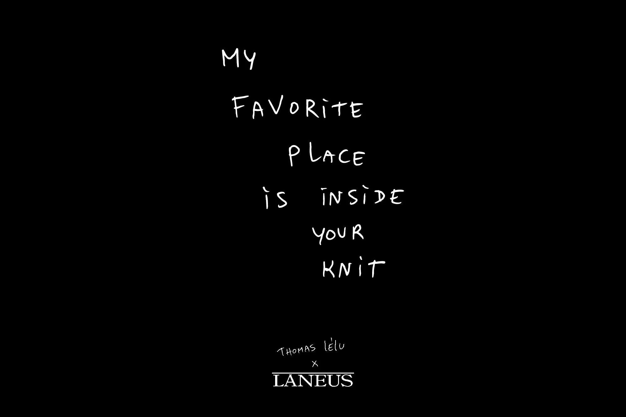 La collaborazione tra Laneus e Thomas Lélu nasce da una naturale affinità di valori e visione creativa. Definendosi “un artista dalla pratica nomade”, Lélu incarna lo stesso spirito libero e cosmopolita che caratterizza l’universo di Laneus. L’uso delle sue citazioni manoscritte crea un dialogo diretto con il pubblico, fondendo ironia e introspezione. La sua capacità di rendere il lavoro al tempo stesso accessibile e concettualmente ricco si allinea perfettamente con l’identità del brand, da sempre capace di unire artigianalità e innovazione con una visione contemporanea.
