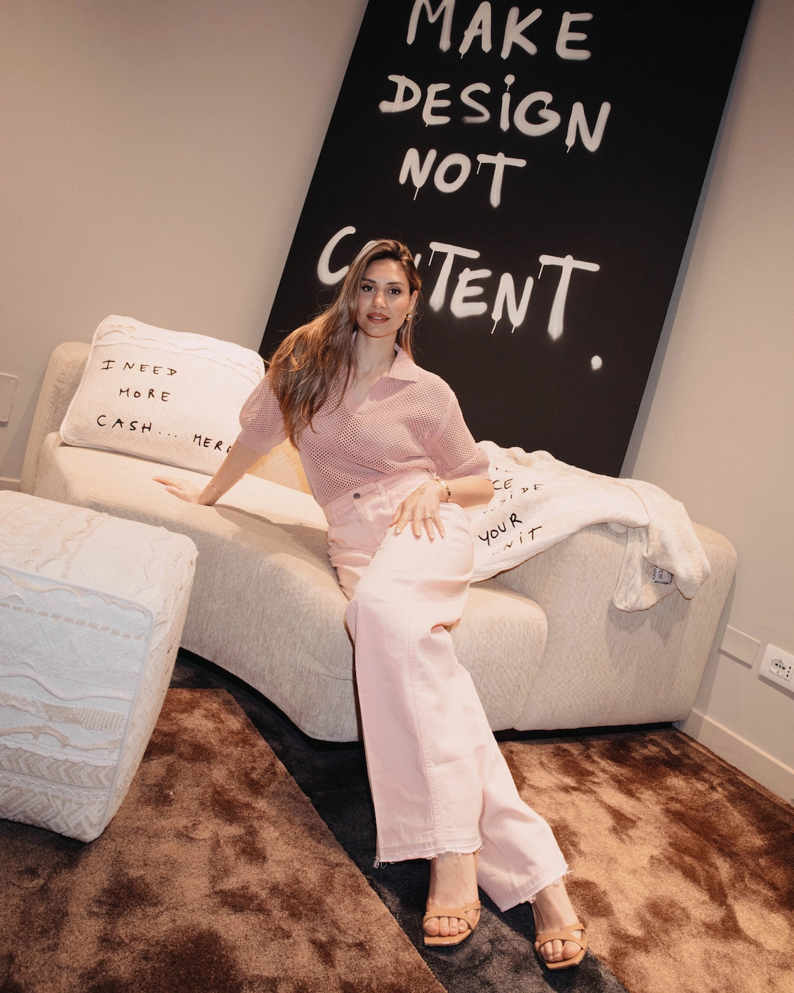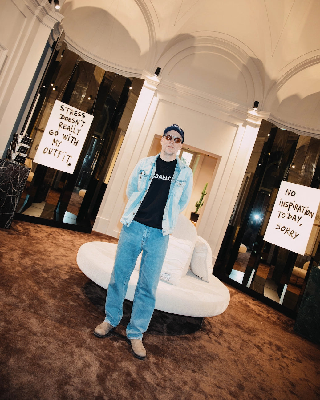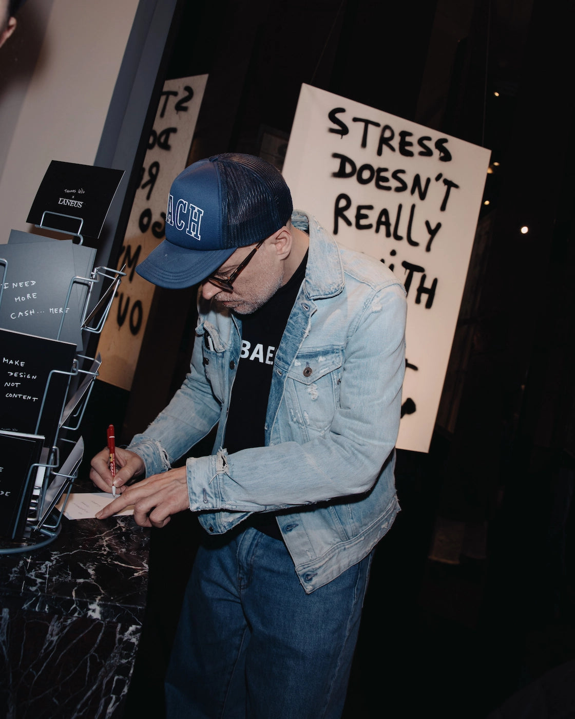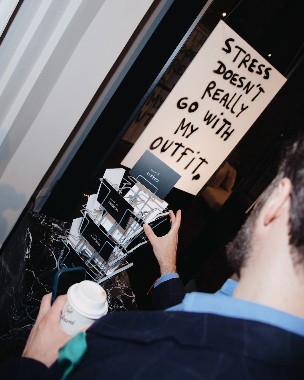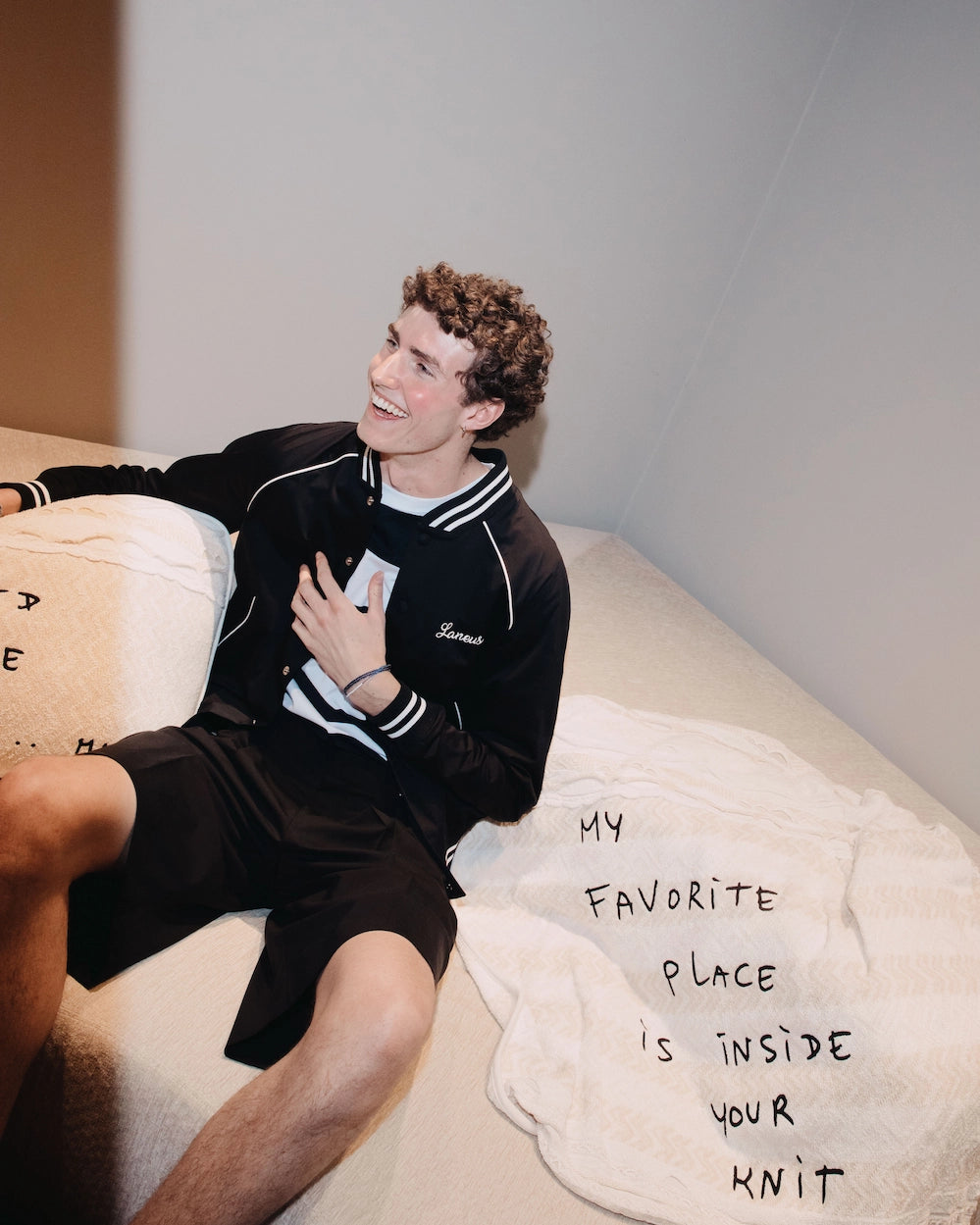 La collaborazione tra Laneus e Thomas Lélu nasce da una naturale affinità di valori e visione creativa. Definendosi “un artista dalla pratica nomade”, Lélu incarna lo stesso spirito libero e cosmopolita che caratterizza il mondo di Laneus. L’uso delle sue citazioni manoscritte crea un dialogo diretto con il pubblico, fondendo ironia e introspezione. La sua capacità di rendere il lavoro al tempo stesso accessibile e concettualmente ricco si allinea perfettamente con l’identità del brand, che da sempre unisce artigianalità e innovazione a una visione contemporanea.