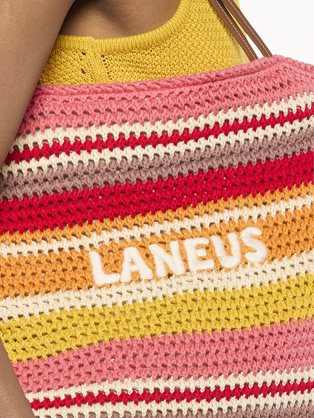 Shopping bag with iconic Laneus weave. Leather handles. Embroidered logo detail at the center. Cotton lining. Made in Italy.