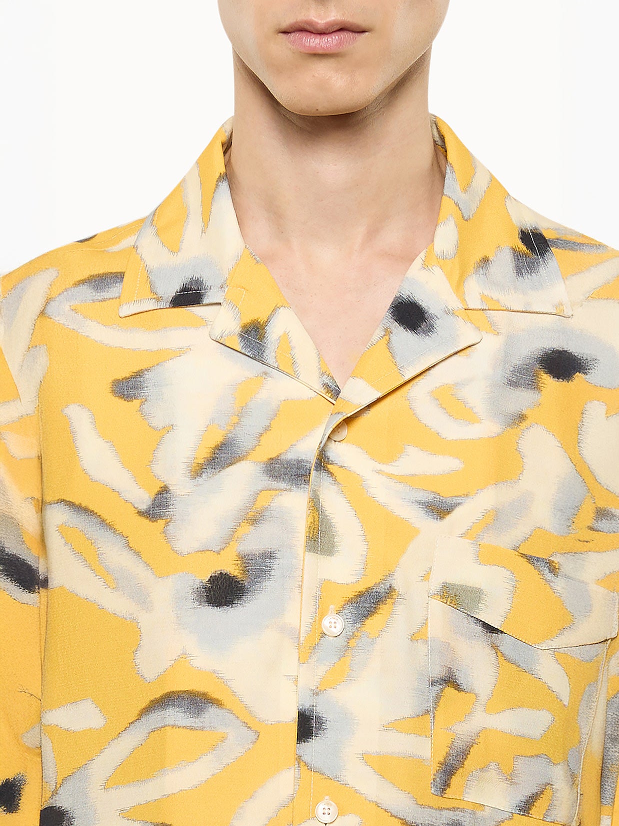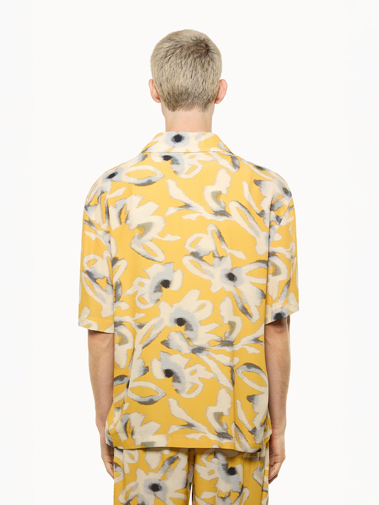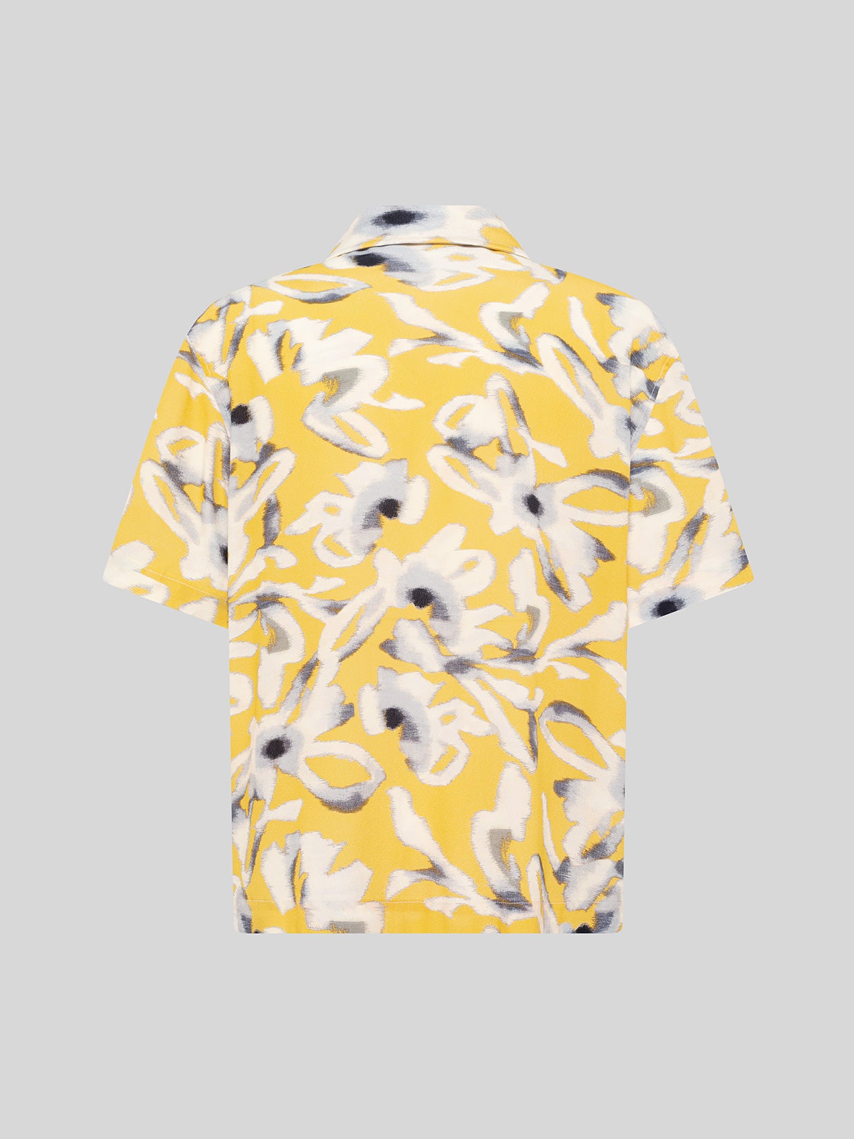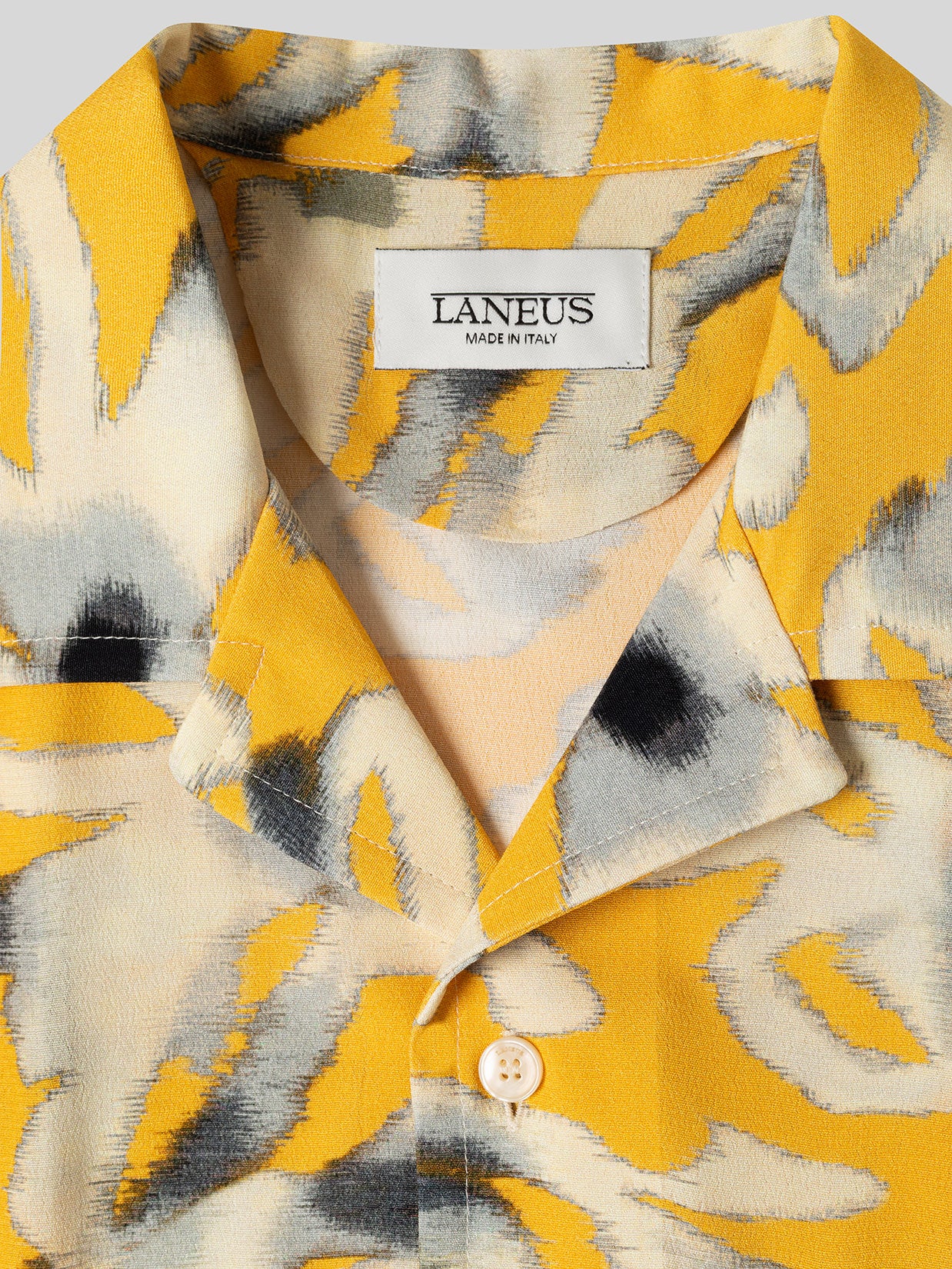 The Laneus bowling shirt features a boxy silhouette with a patch pocket on the front and an all-over floral motif. Made in Italy.
