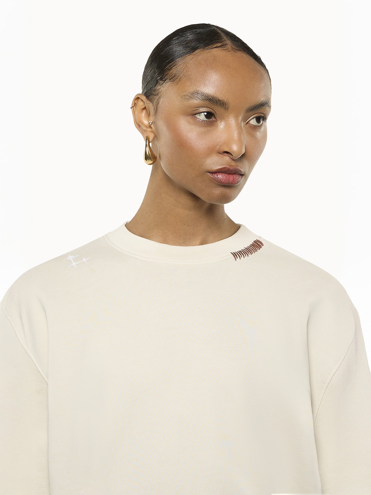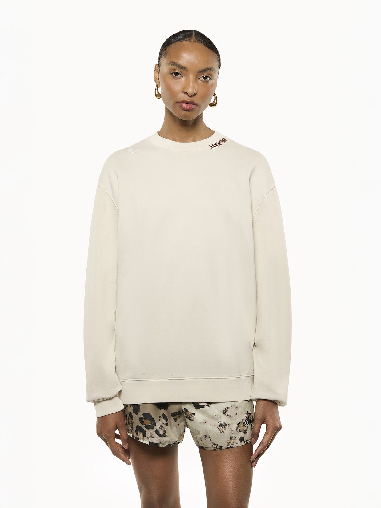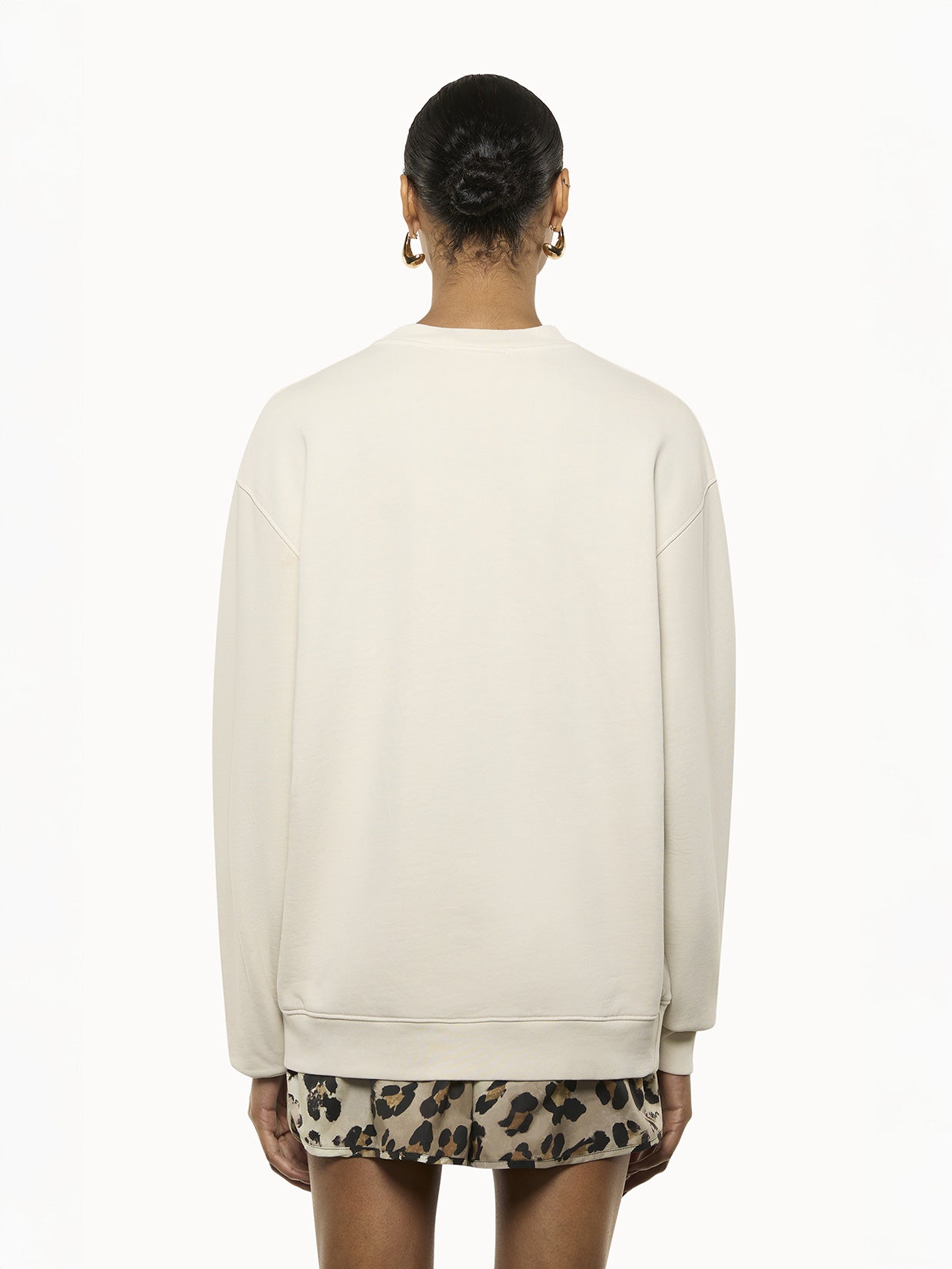 Crewneck cotton sweatshirt with contrasting stitching. Brushed interior and oversized fit. Made in Italy.