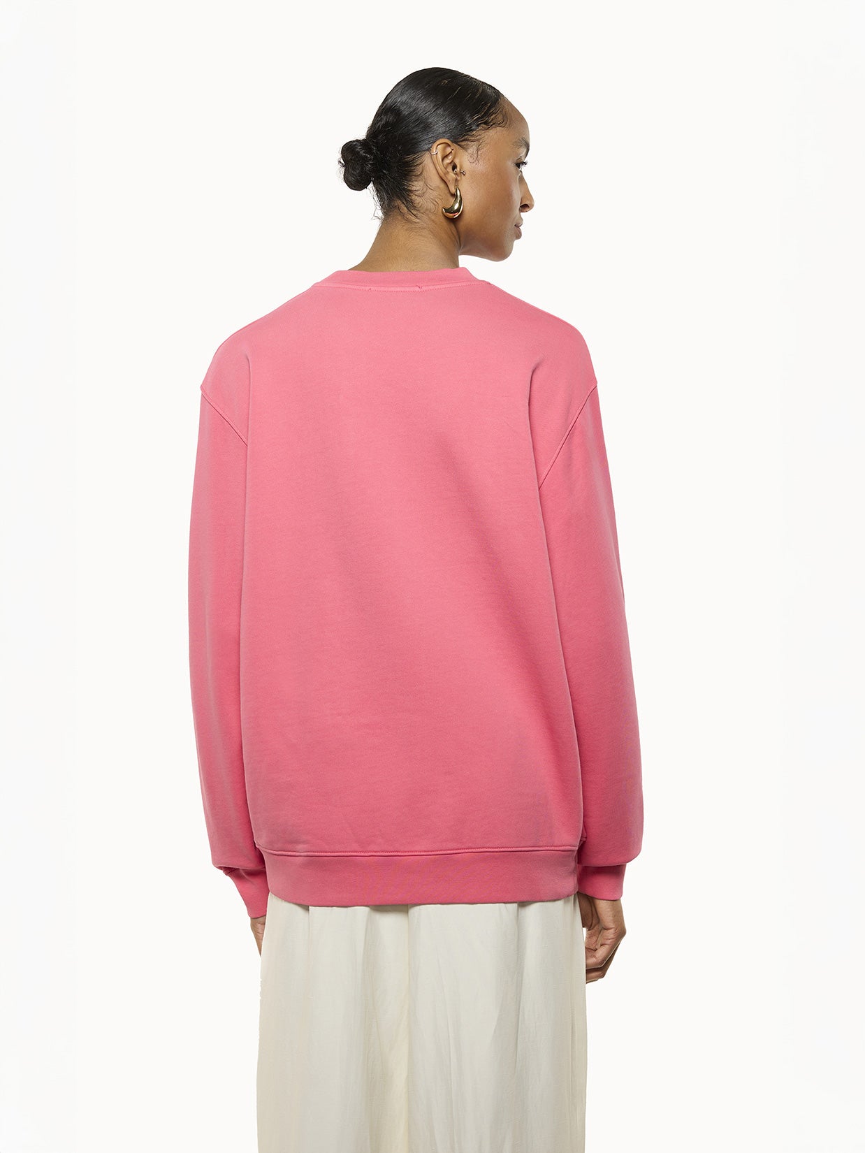 Crewneck cotton sweatshirt with contrasting stitching. Brushed interior and oversized fit. Made in Italy.
