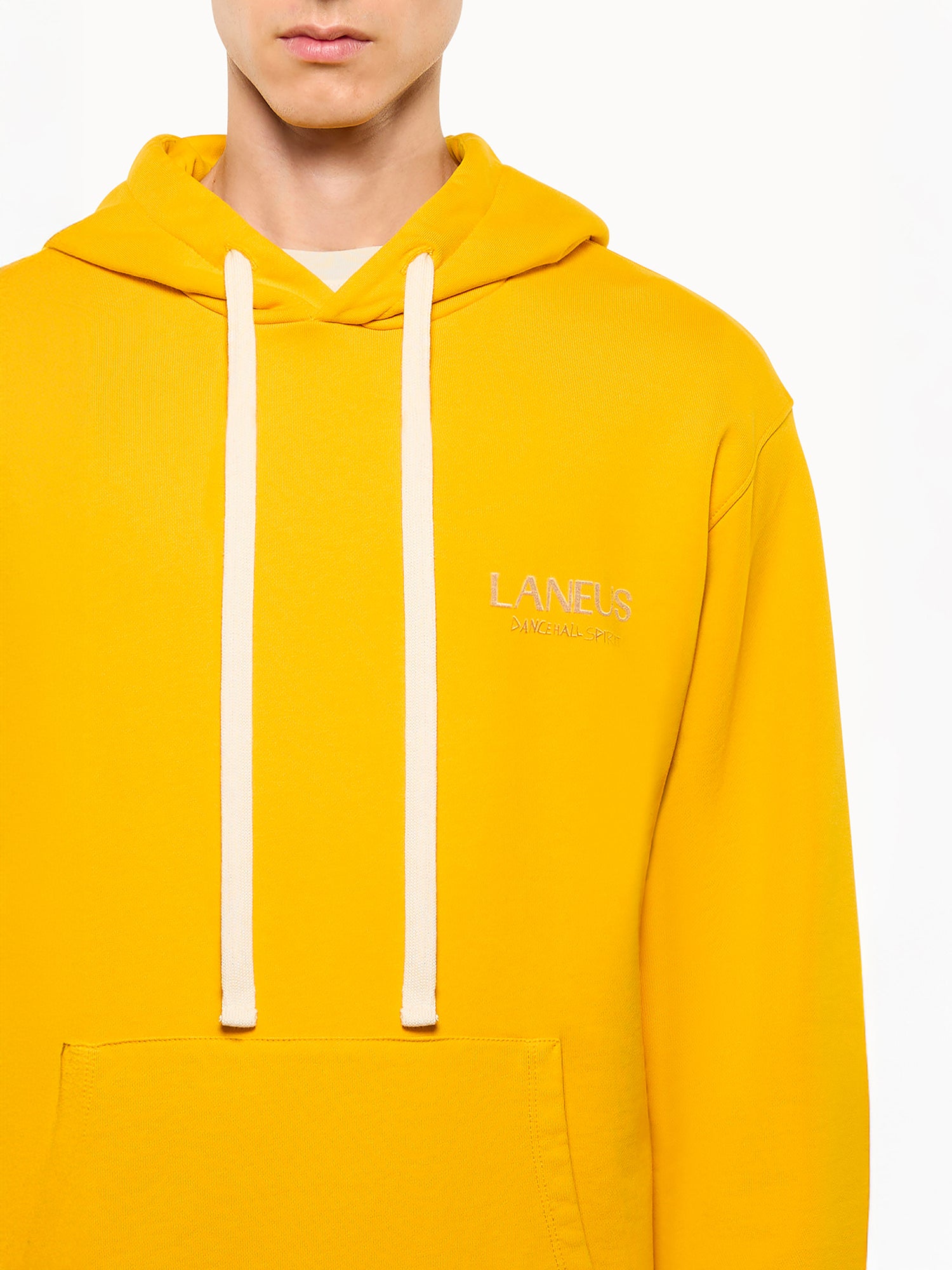 This Laneus sweatshirt offers an oversized fit with dropped sleeves. Made from pure cotton, it features a hood with adjustable drawstrings. It features a large print on the back. Made in Italy.