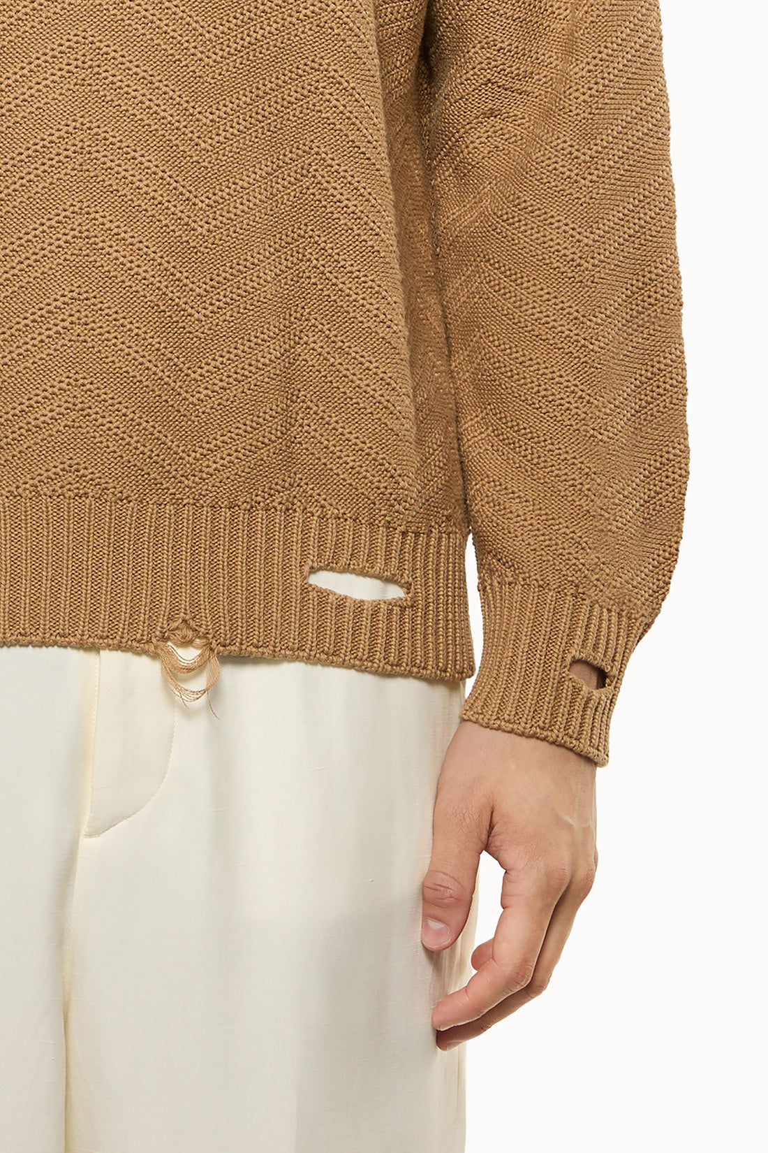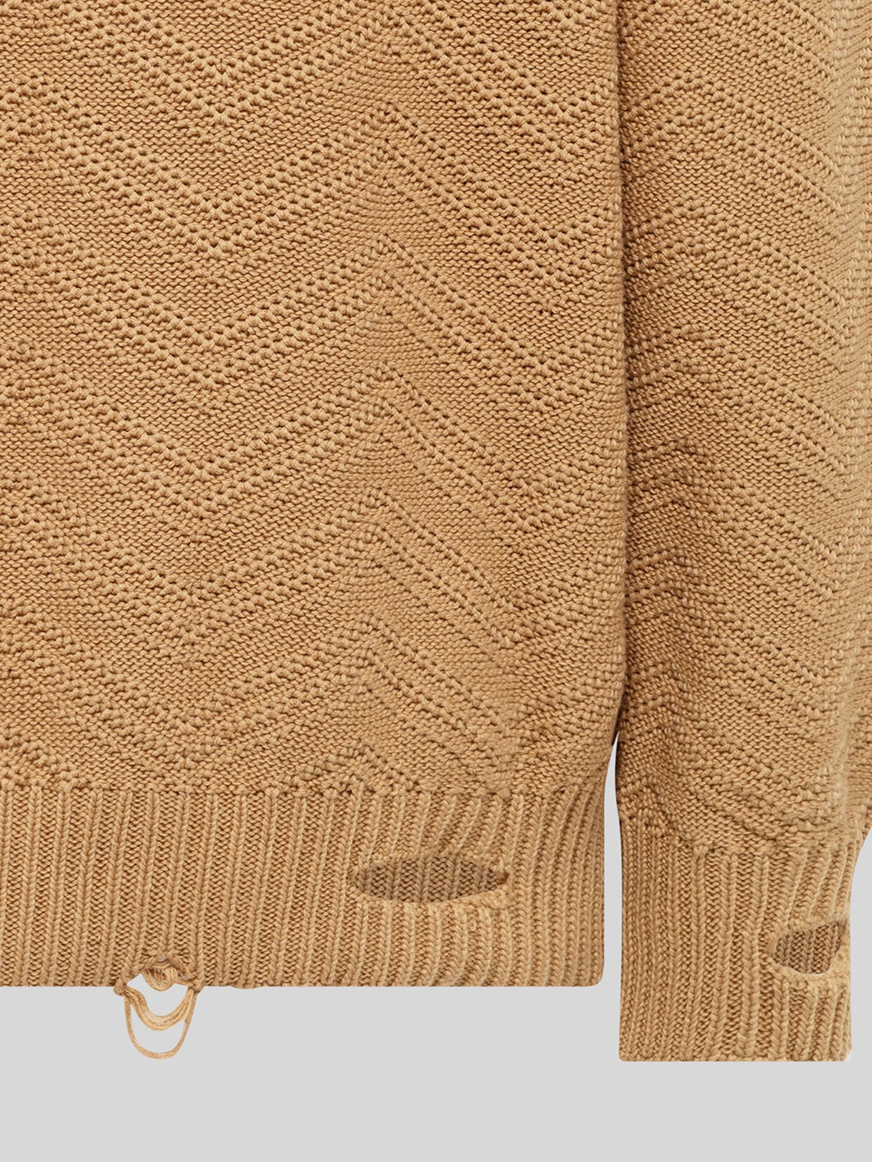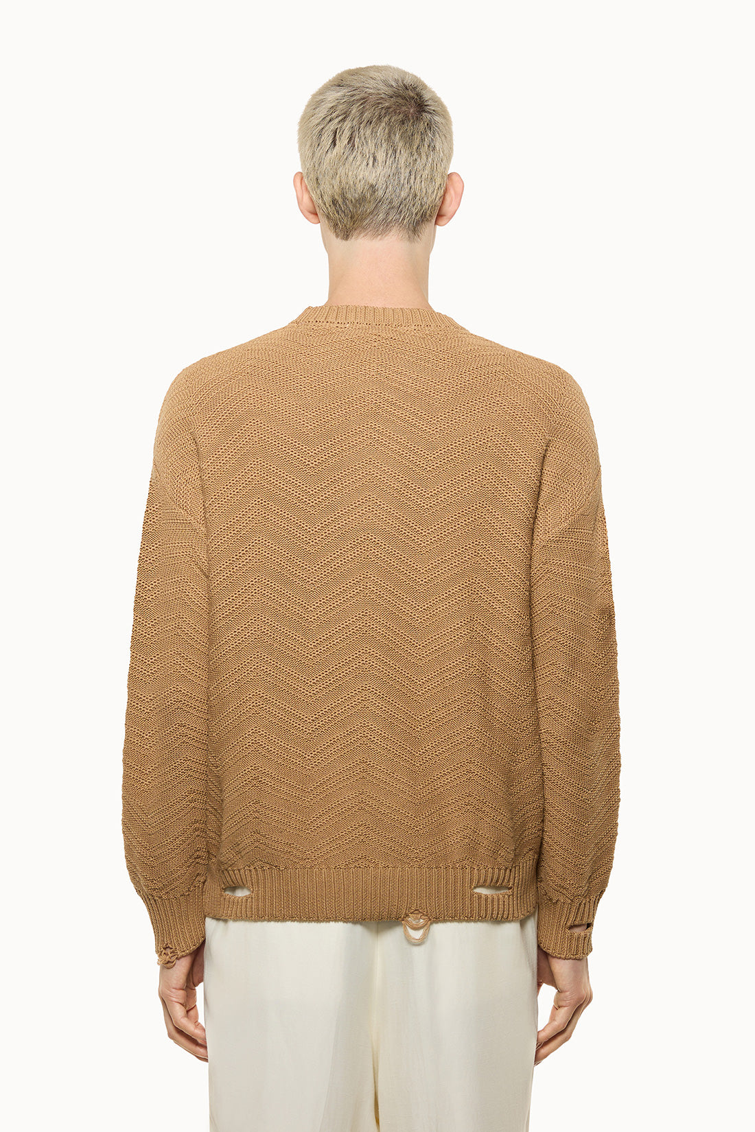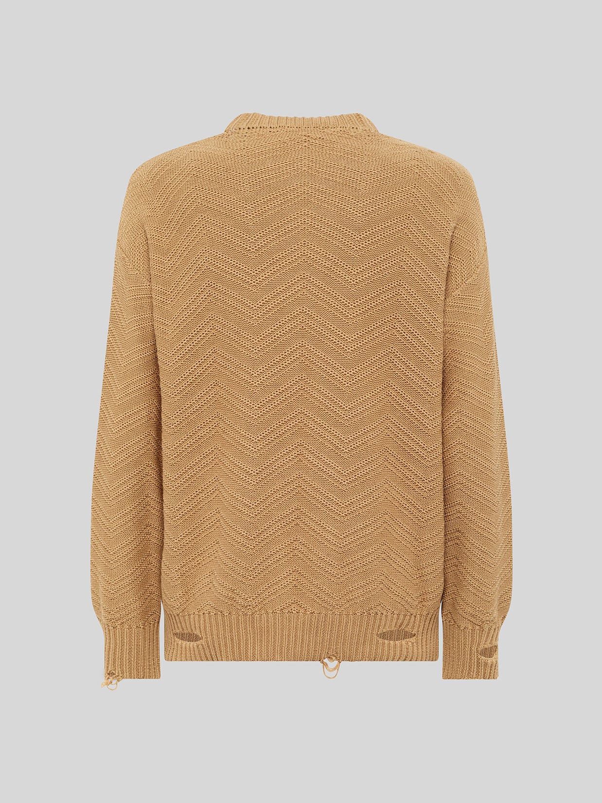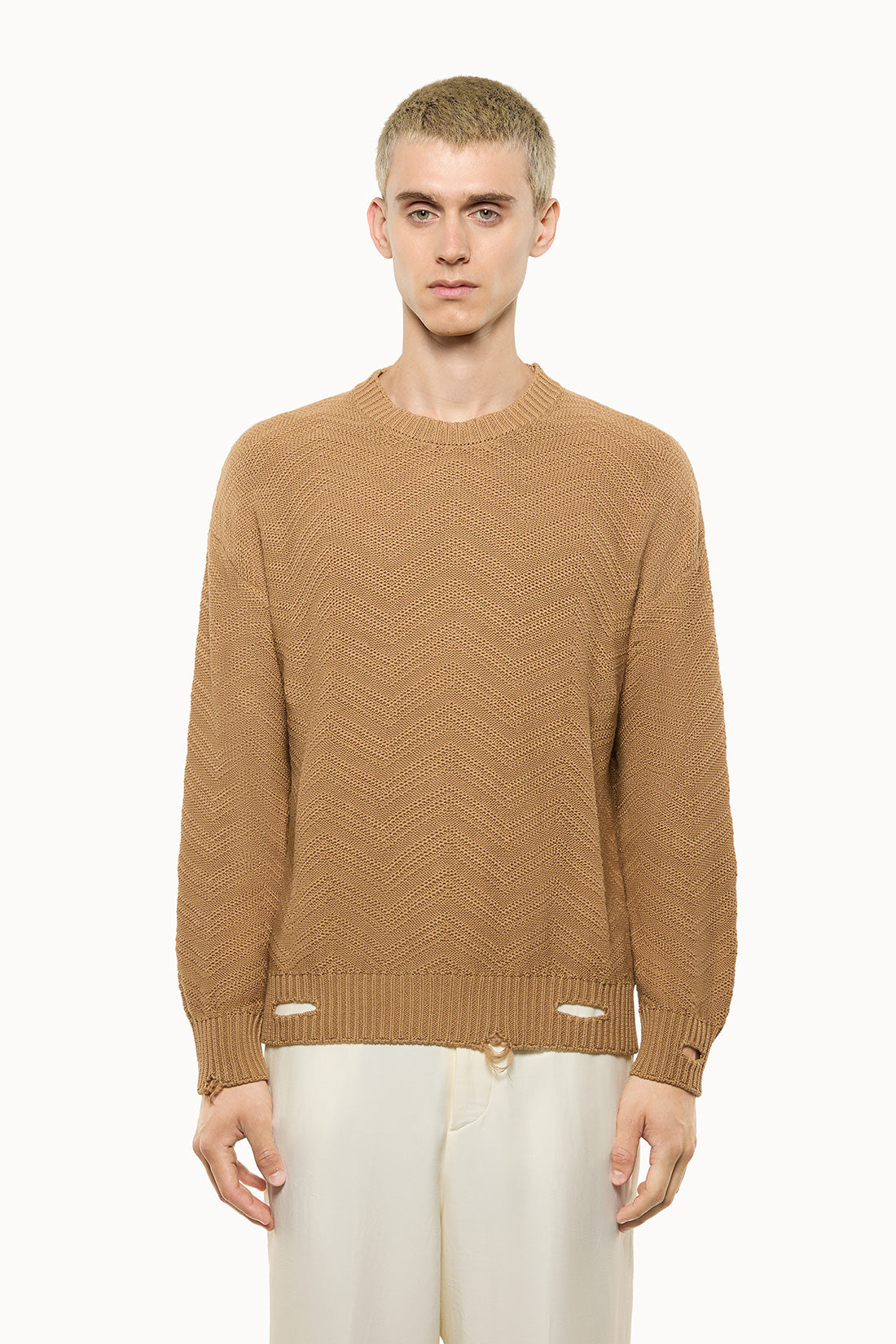 Crew neck sweater made of soft, solid-color cotton yarn with a woven knit. Regular fit, with slightly dropped shoulders and ribbed cuffs, hem, and collar. Made in Italy.
