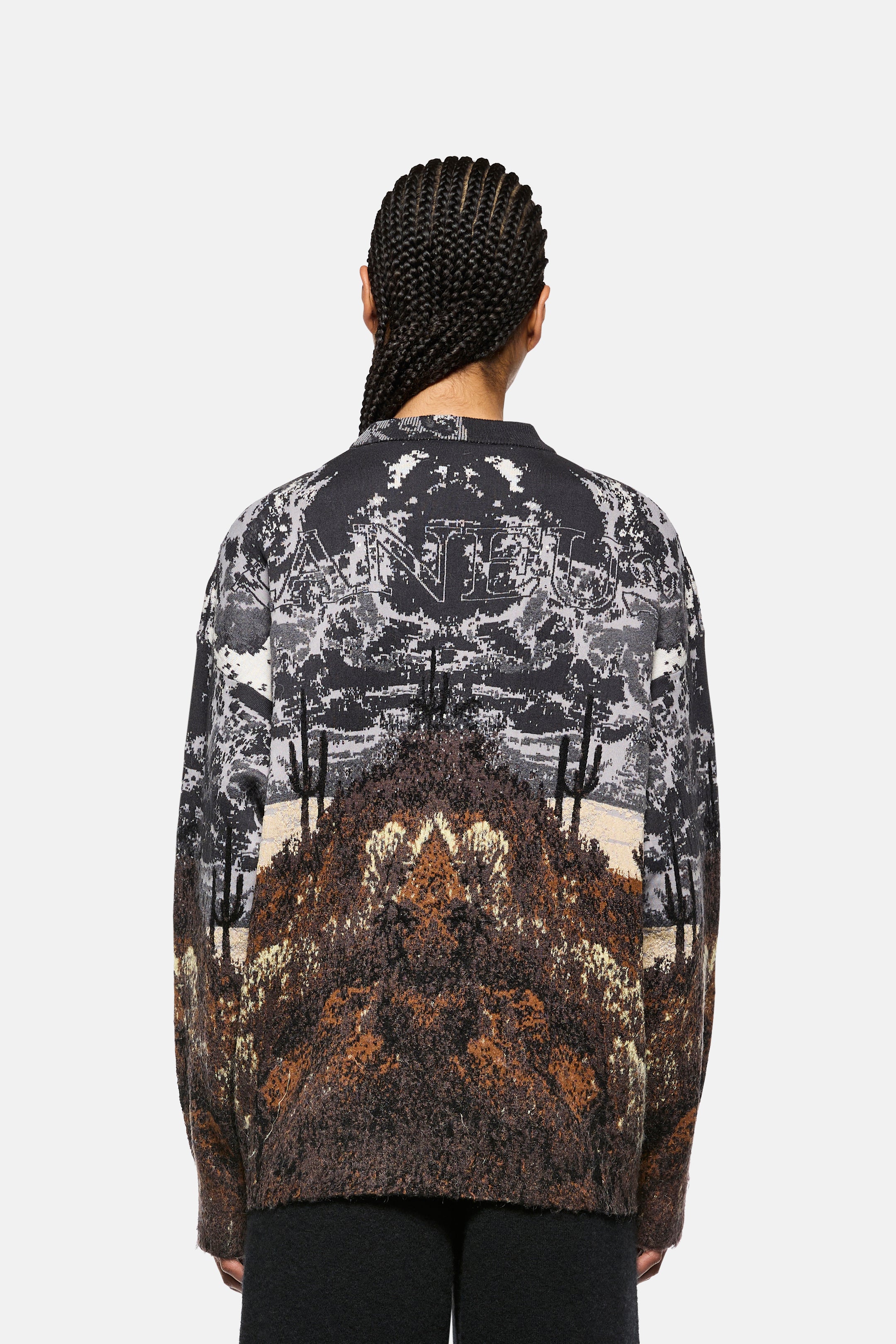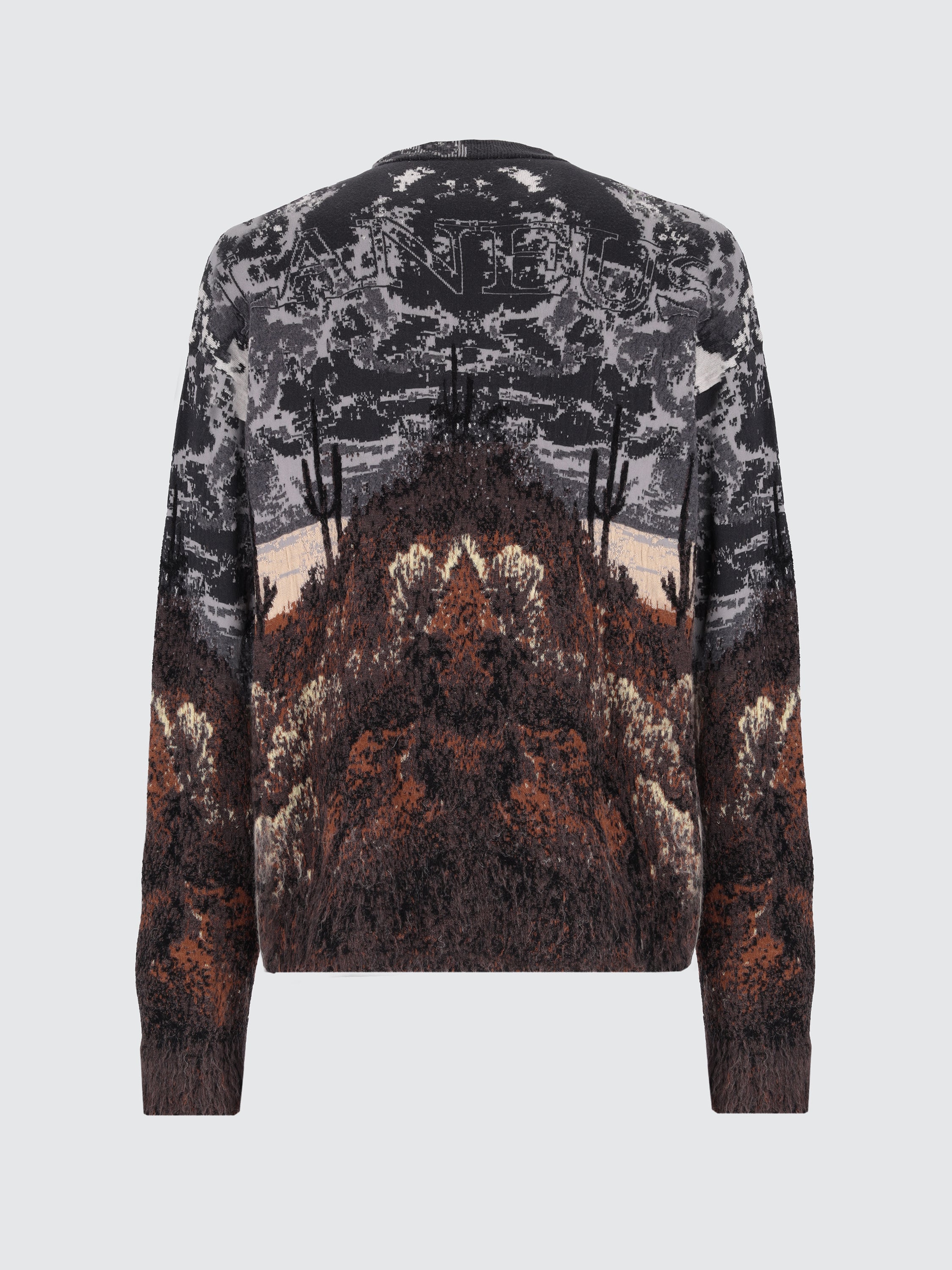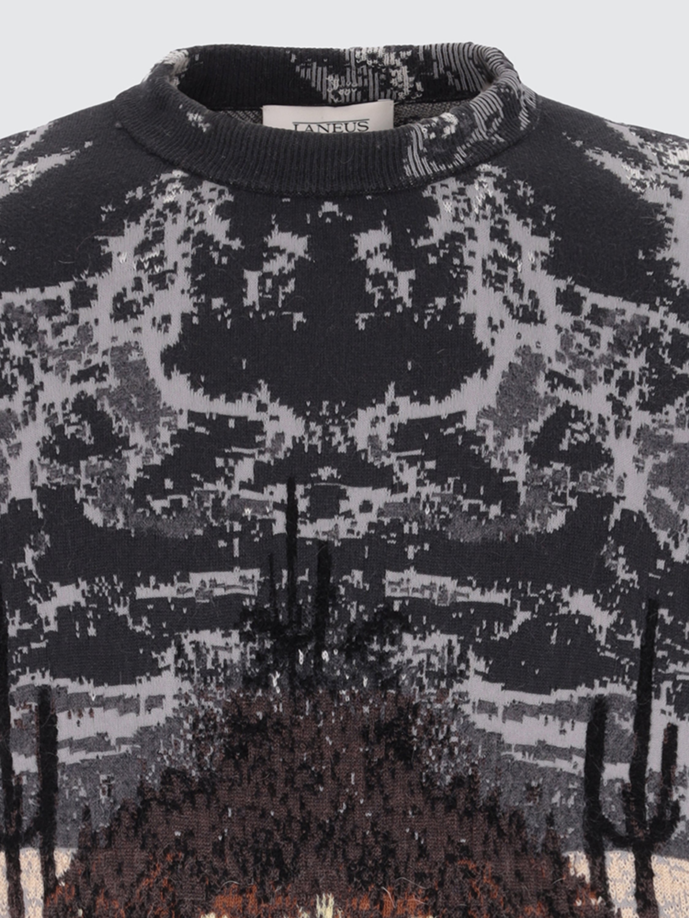 A rich landscape of texture and color comes to life in this crewneck sweater by Laneus. Crafted with a mix of smooth and fuzzy yarns, it features an 8-color jacquard design that blends graphic depth with visual impact. The presence of wool and mohair adds warmth and a soft hand feel, enhancing the richness of the pattern. Regular fit and a structured construction complete this standout piece. Made in Italy.