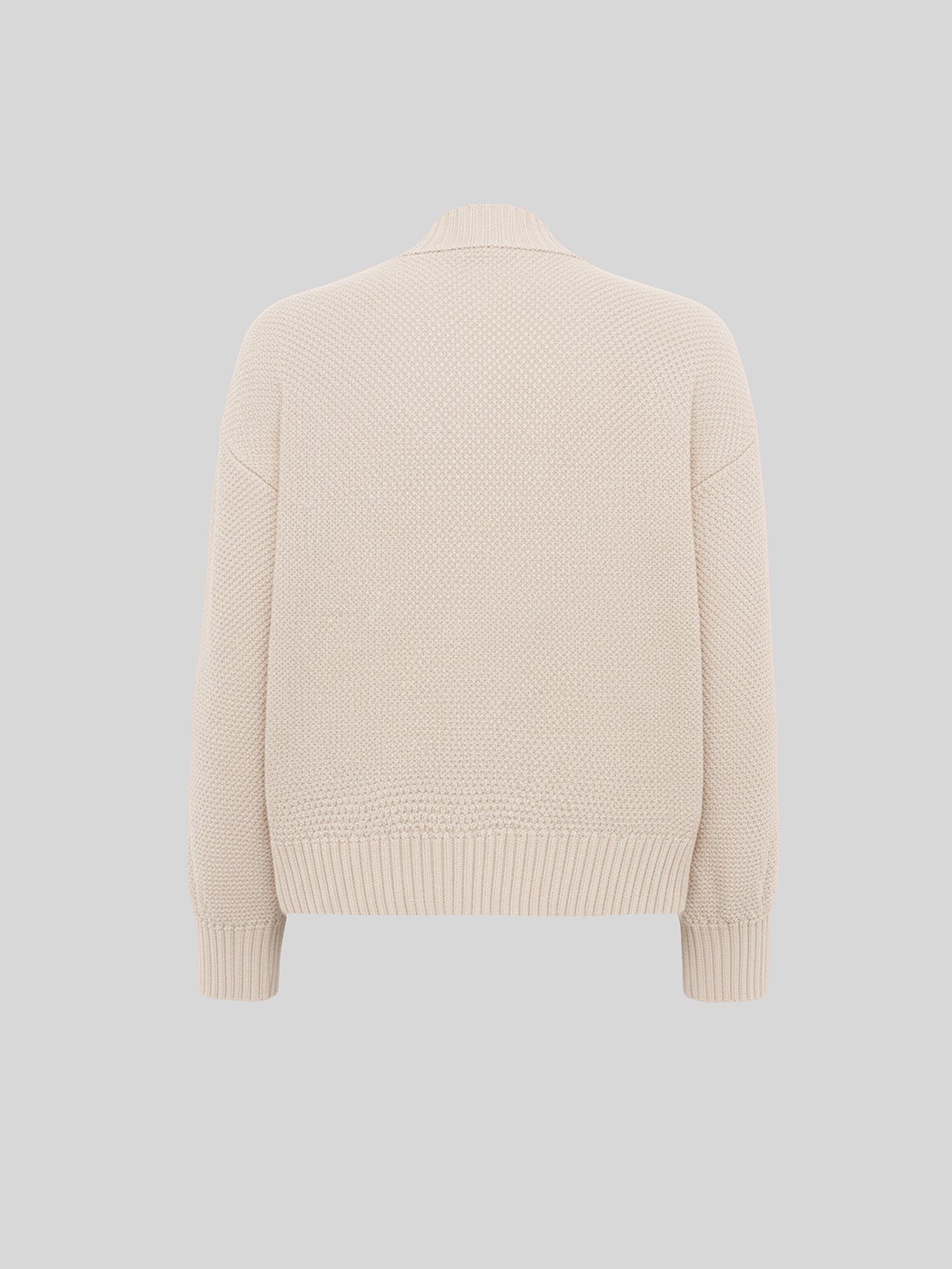 Knit cardigan with a boxy fit, made of cotton and featuring a woven design. The piece features a front button closure. Made in Italy.