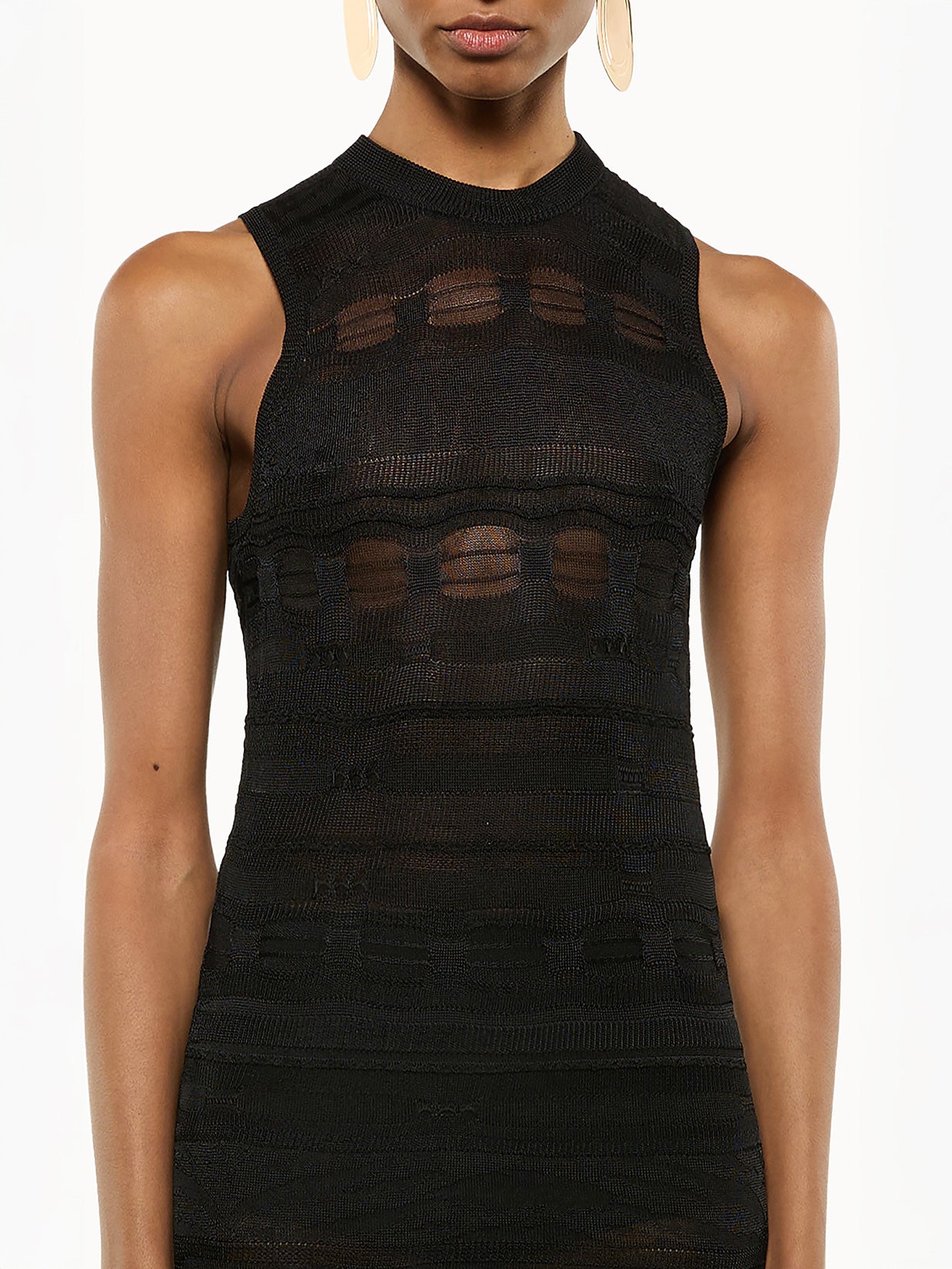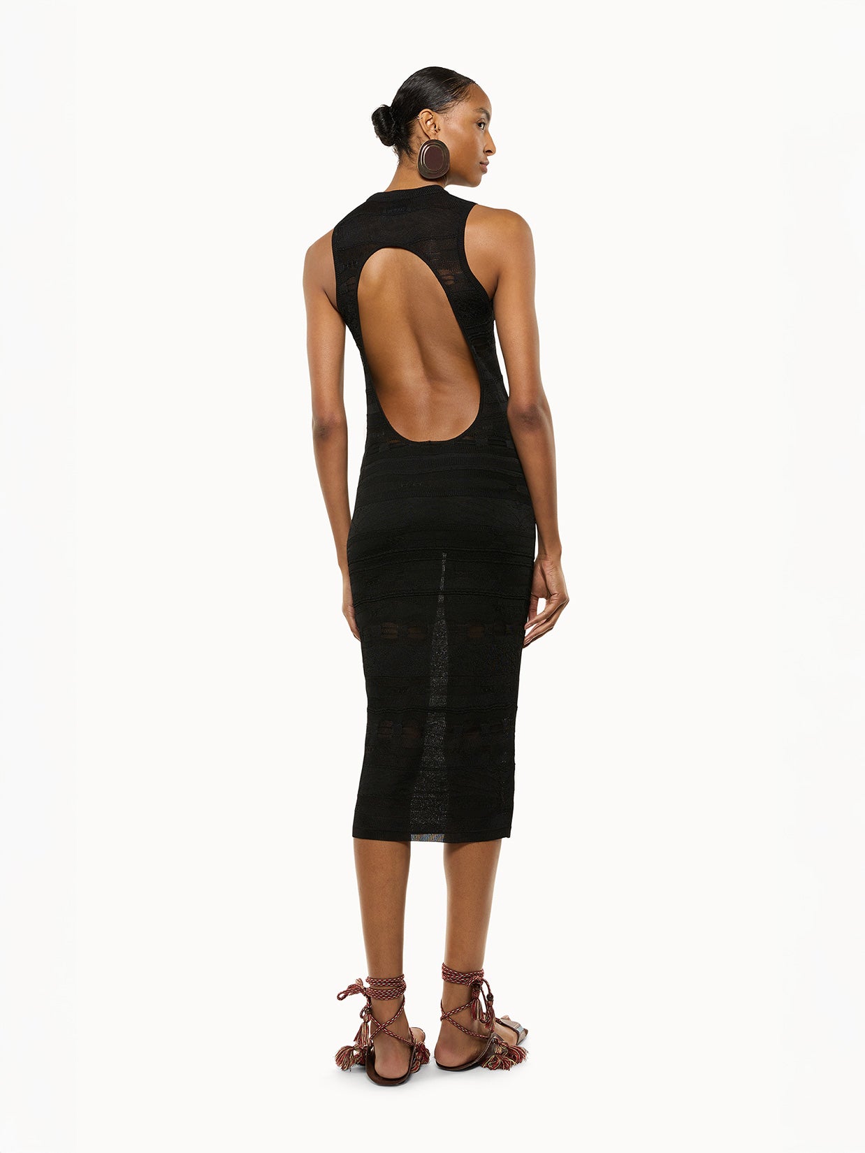 Minimal elegance and clean lines. This sleeveless knitted dress by Laneus is crafted from lightweight viscose and features a regular fit. The clean design is enhanced by a wide circular slit at the back, adding movement and sensuality to this strikingly simple garment. Made in Italy.