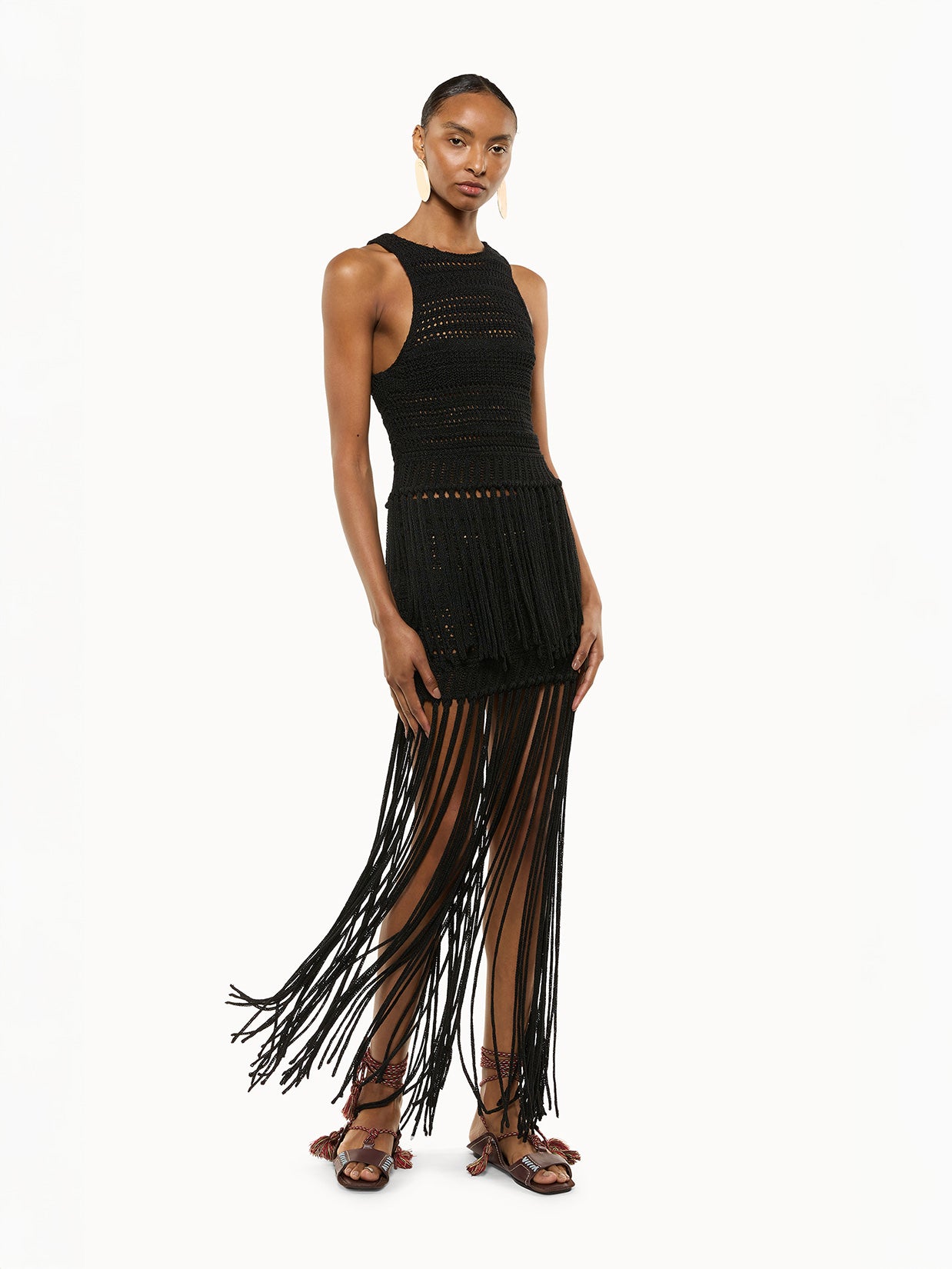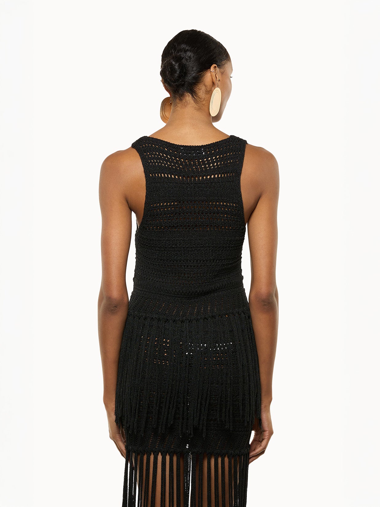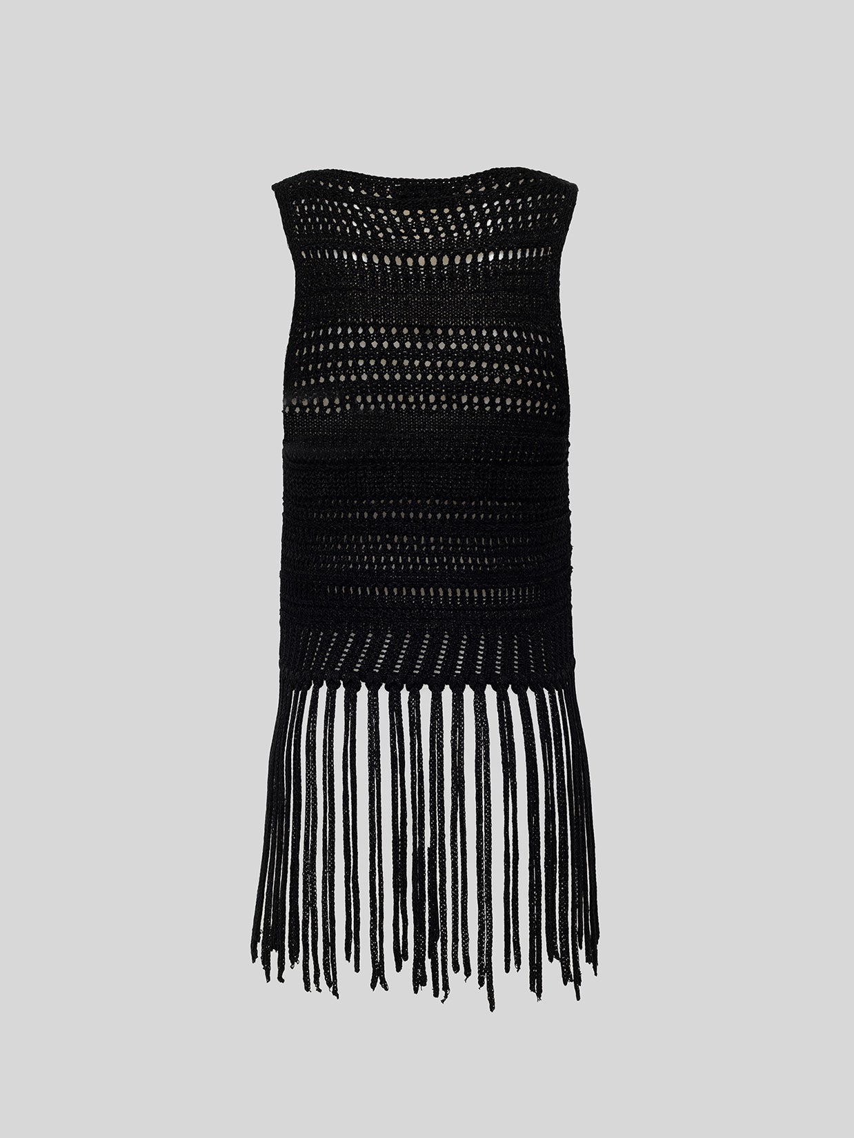 Minimal elegance and clean lines. This sleeveless knitted top by Laneus is made of a viscose blend. It features a regular fit and maxi fringes at the hem that add movement. Made in Italy.