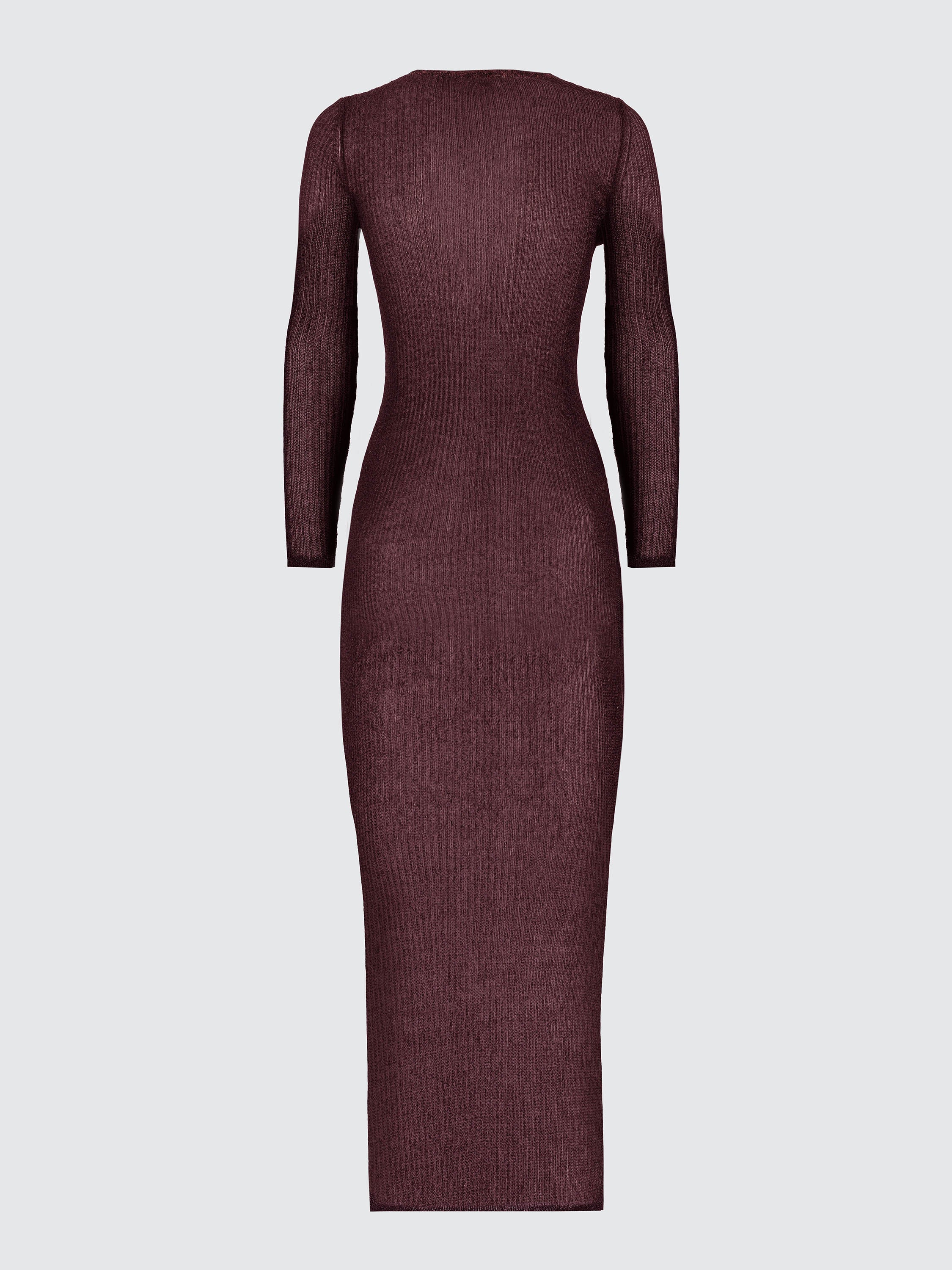 Abito lungo con scollo a V, semitrasparente. Realizzato in Viscosa e fili Lurex. La modella è alta 176 cm ed indossa una S.