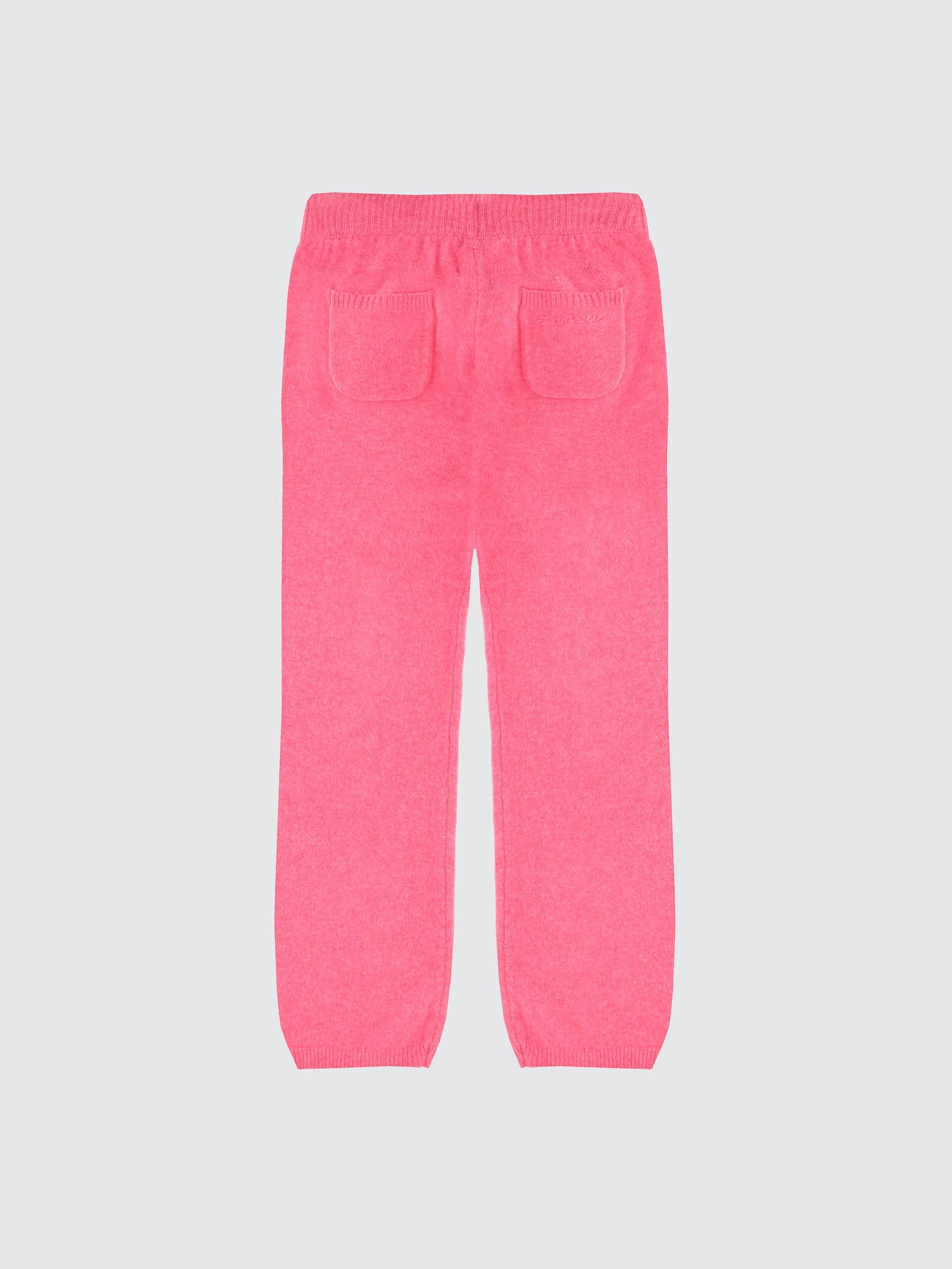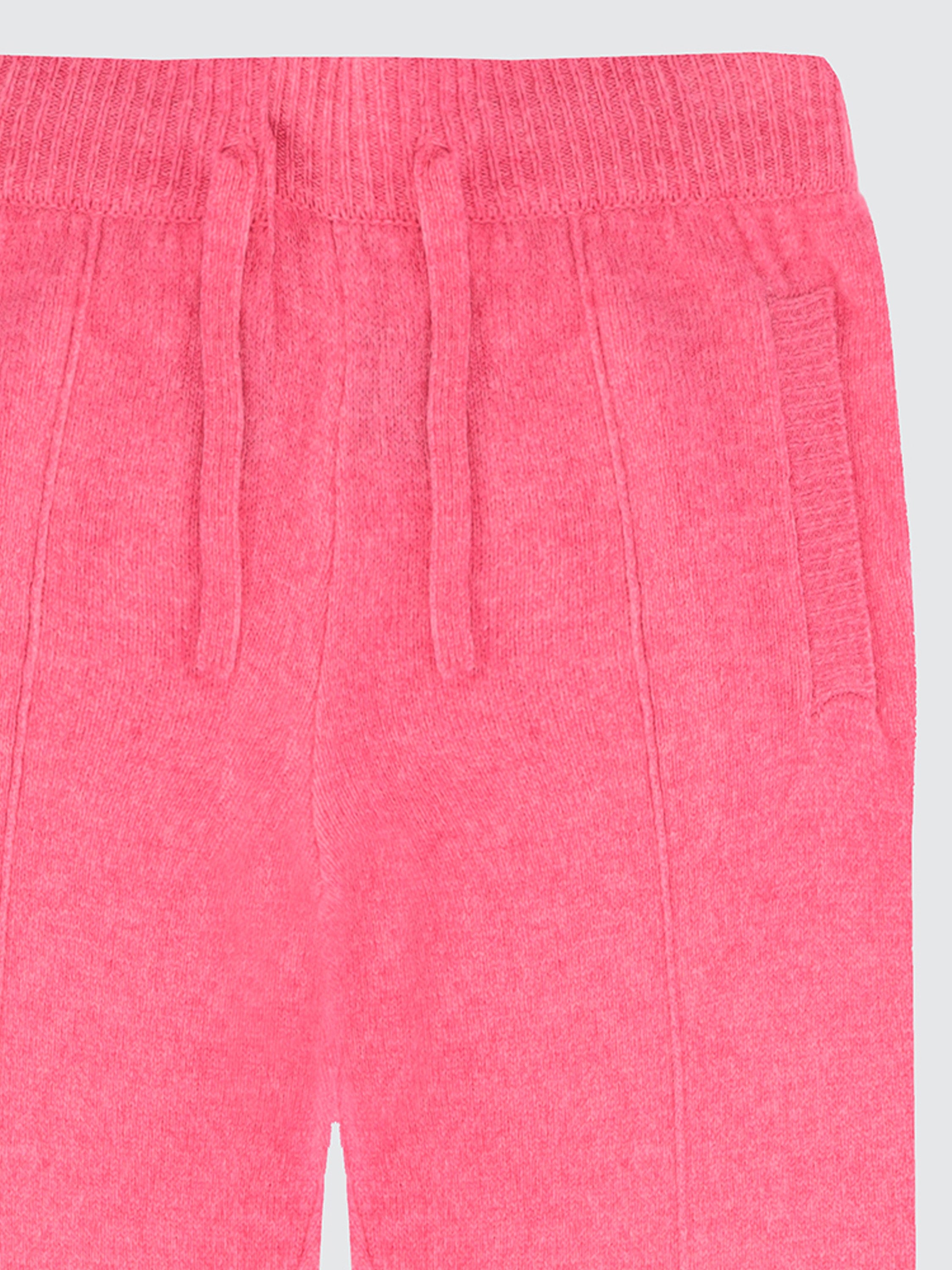 Knitted pants by Laneus, crafted from pure extrafine merino wool. The style features a straight leg, elasticated waistband with drawstring, and side seam pockets. A warm and cozy piece designed for the kids’ wardrobe.