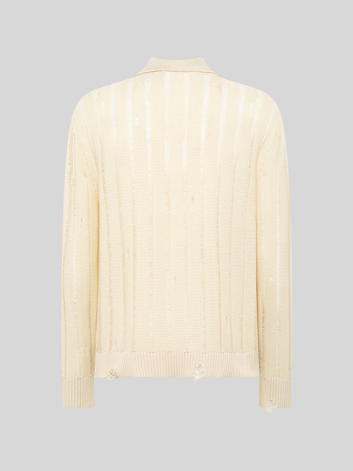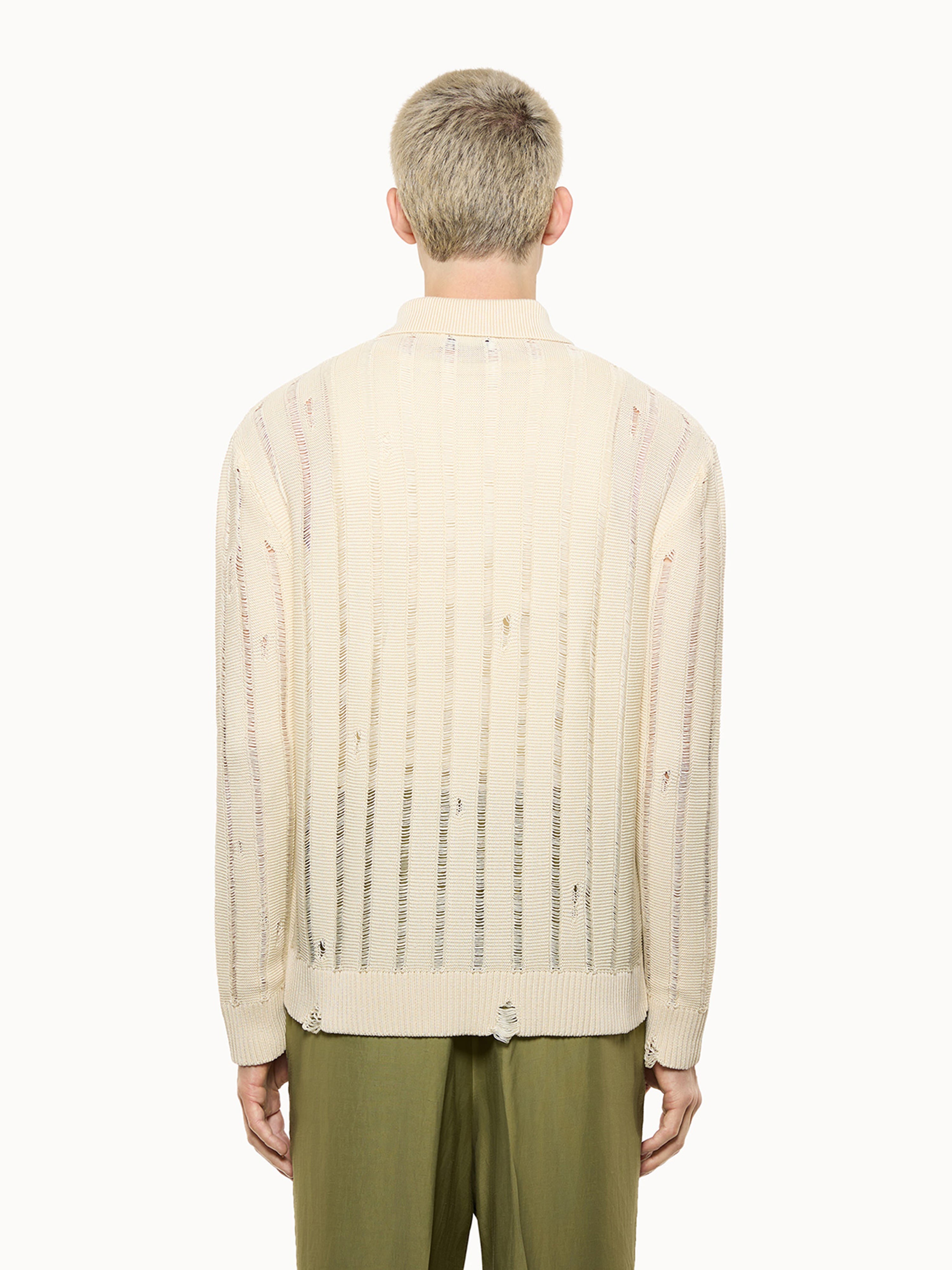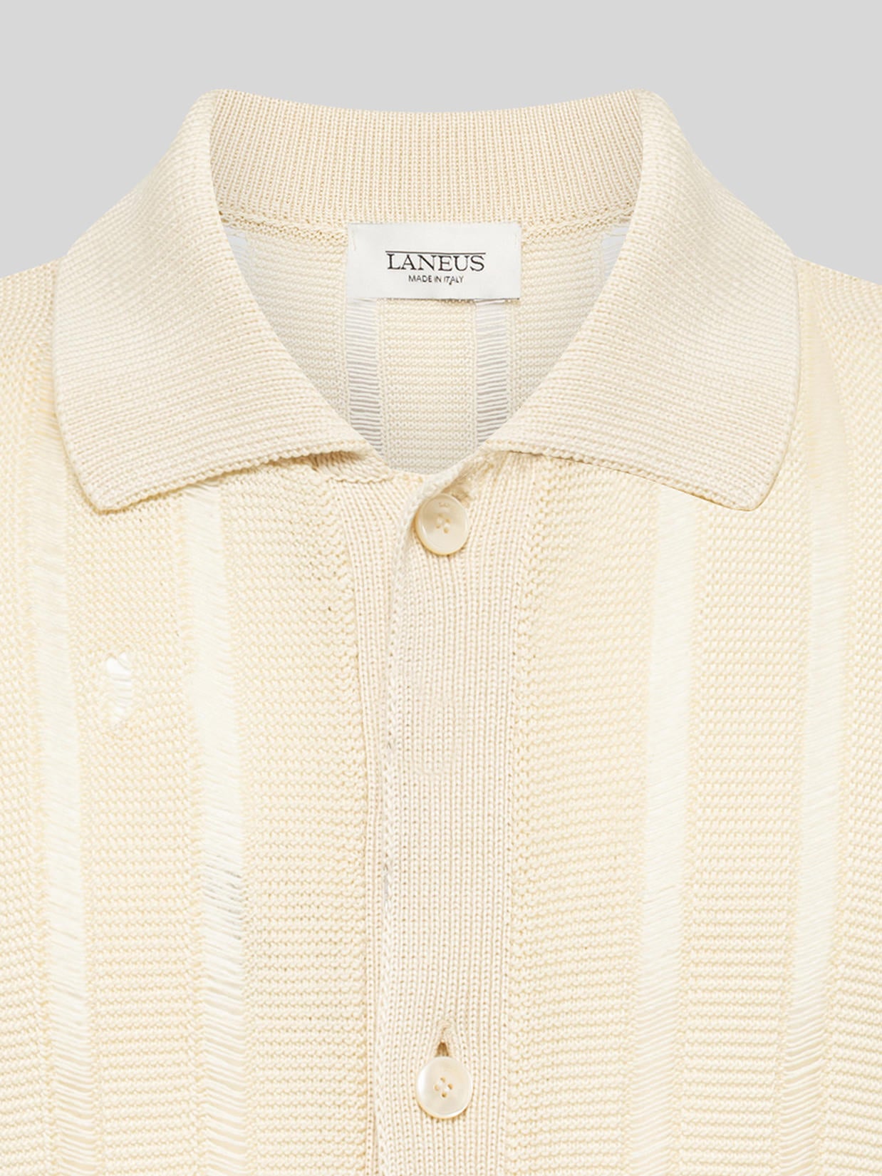 Knit polo shirt with vertical drop stitch. Featuring a classic collar and full-length button closure. The relaxed fit is ideal for everyday wear. Made in Italy.
