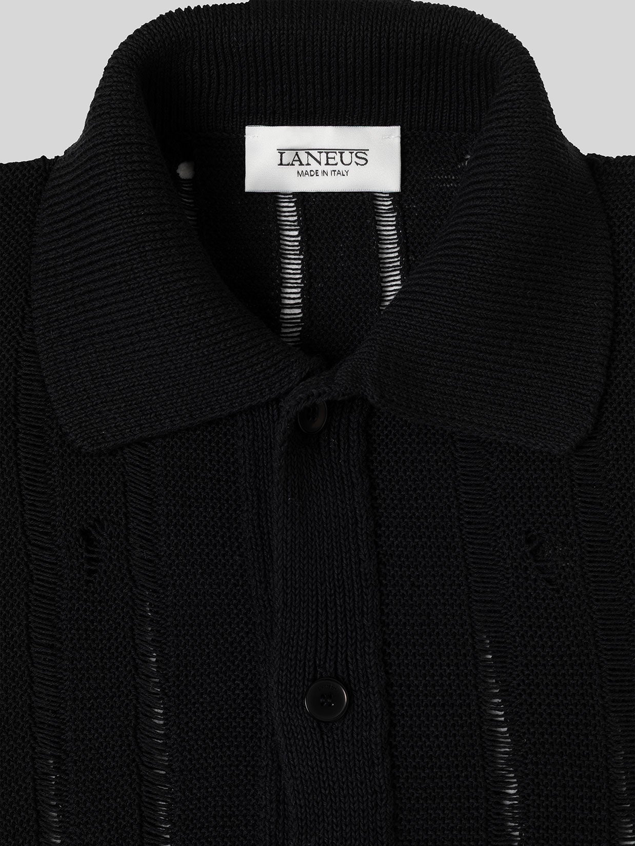 Knit polo shirt with vertical drop stitch. Featuring a classic collar and full-length button closure. The relaxed fit is ideal for everyday wear. Made in Italy.