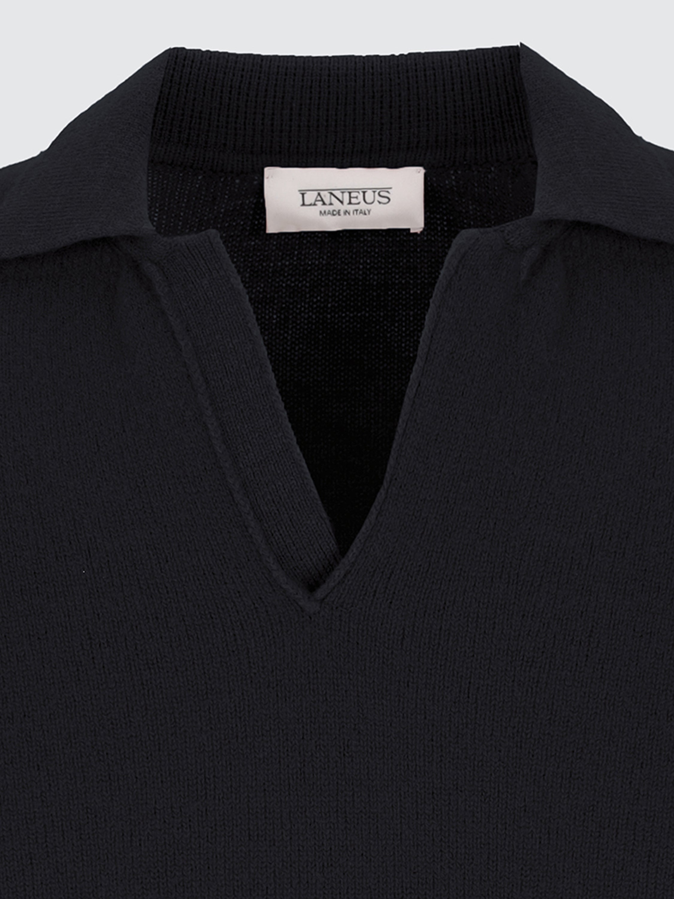 This knitted polo by Laneus is an essential piece with a refined style, made from Merino wool and cashmere, crafted in a smooth stockinette stitch for a soft and compact finish. Featuring long sleeves and a regular fit, it comes with an open collar without buttons, adding a relaxed yet elegant touch. Its clean and minimalist design makes it perfect for both casual and more sophisticated looks, while always reflecting the brand’s distinctive elegance. Made in Italy.