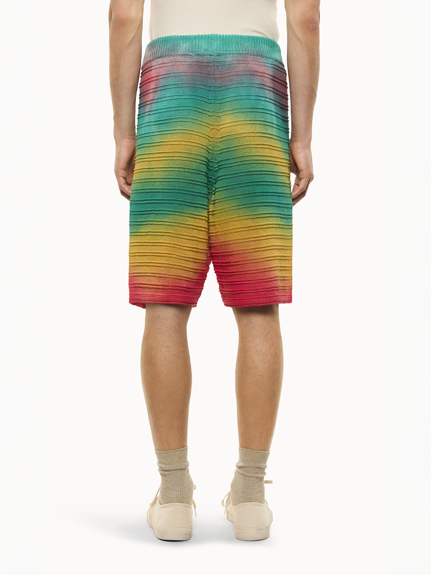 Regular-fit cotton knit shorts, crafted from multicolored cotton. The waist is adjustable with a drawstring. The design features a woven knit. The wide hem and side pockets complete the piece. Made in Italy.
