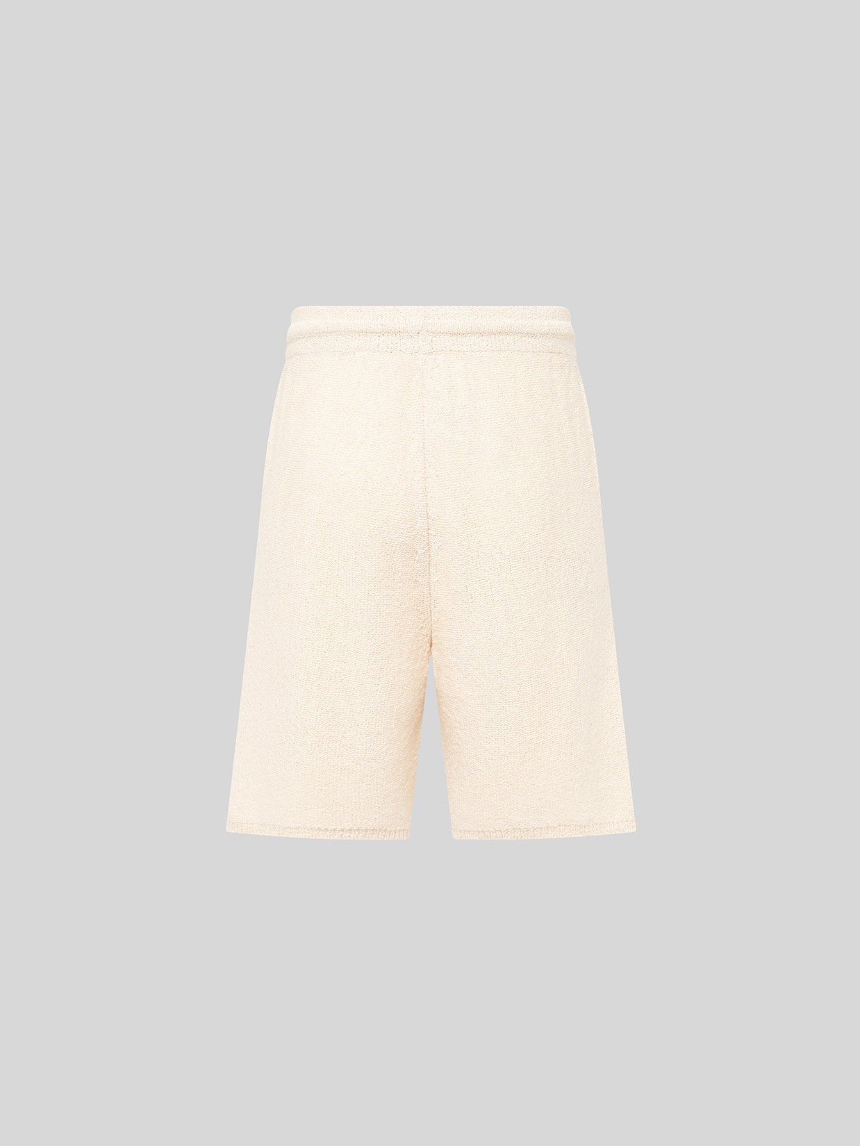 Regular-fit bouclé knit Bermuda shorts with a drawstring waist and two welt pockets on the sides.
