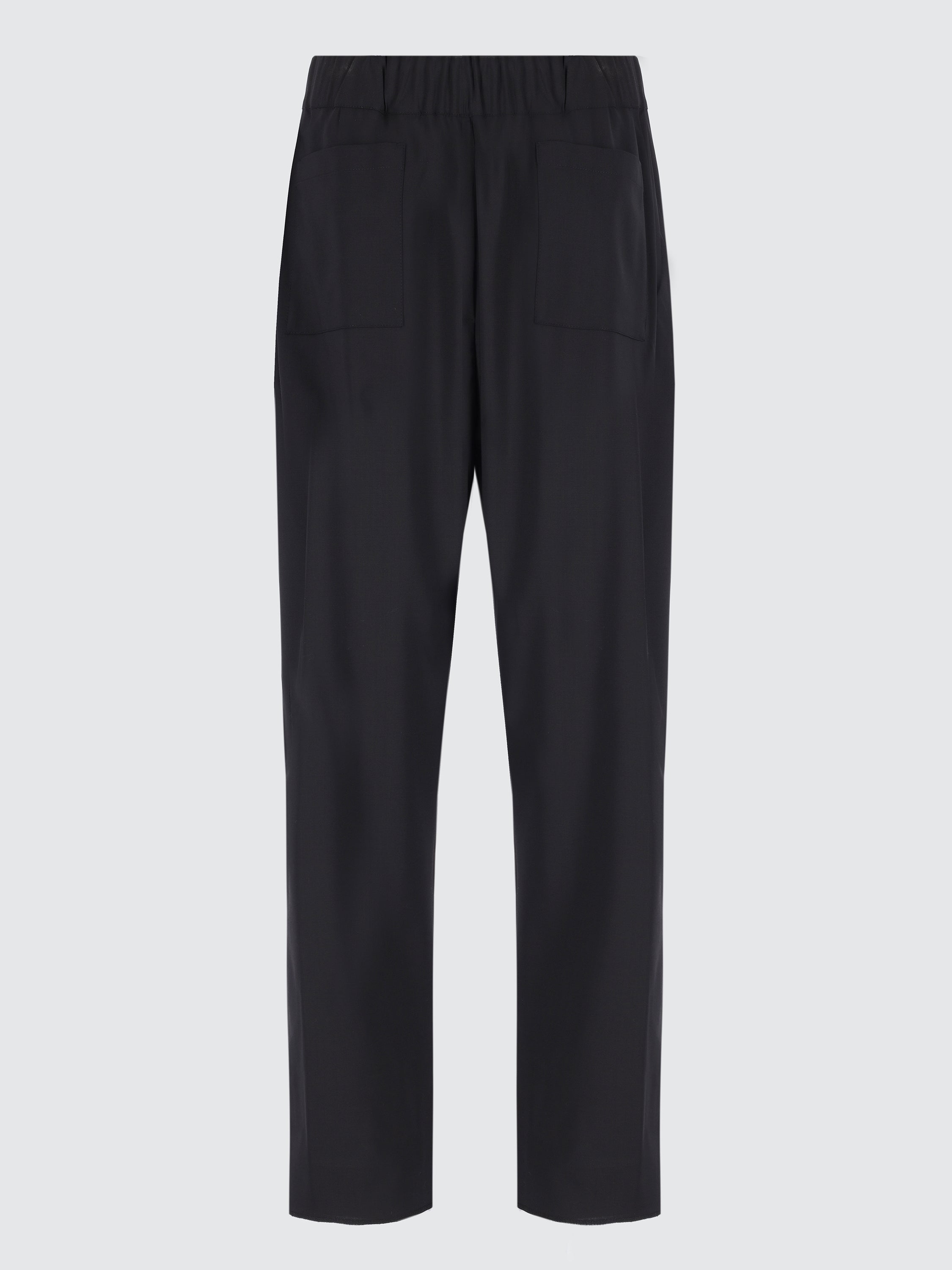 Laneus single-pence wide-leg trousers are made from lightweight wool canvas and feature a gathered elastic waistband and American pocket.