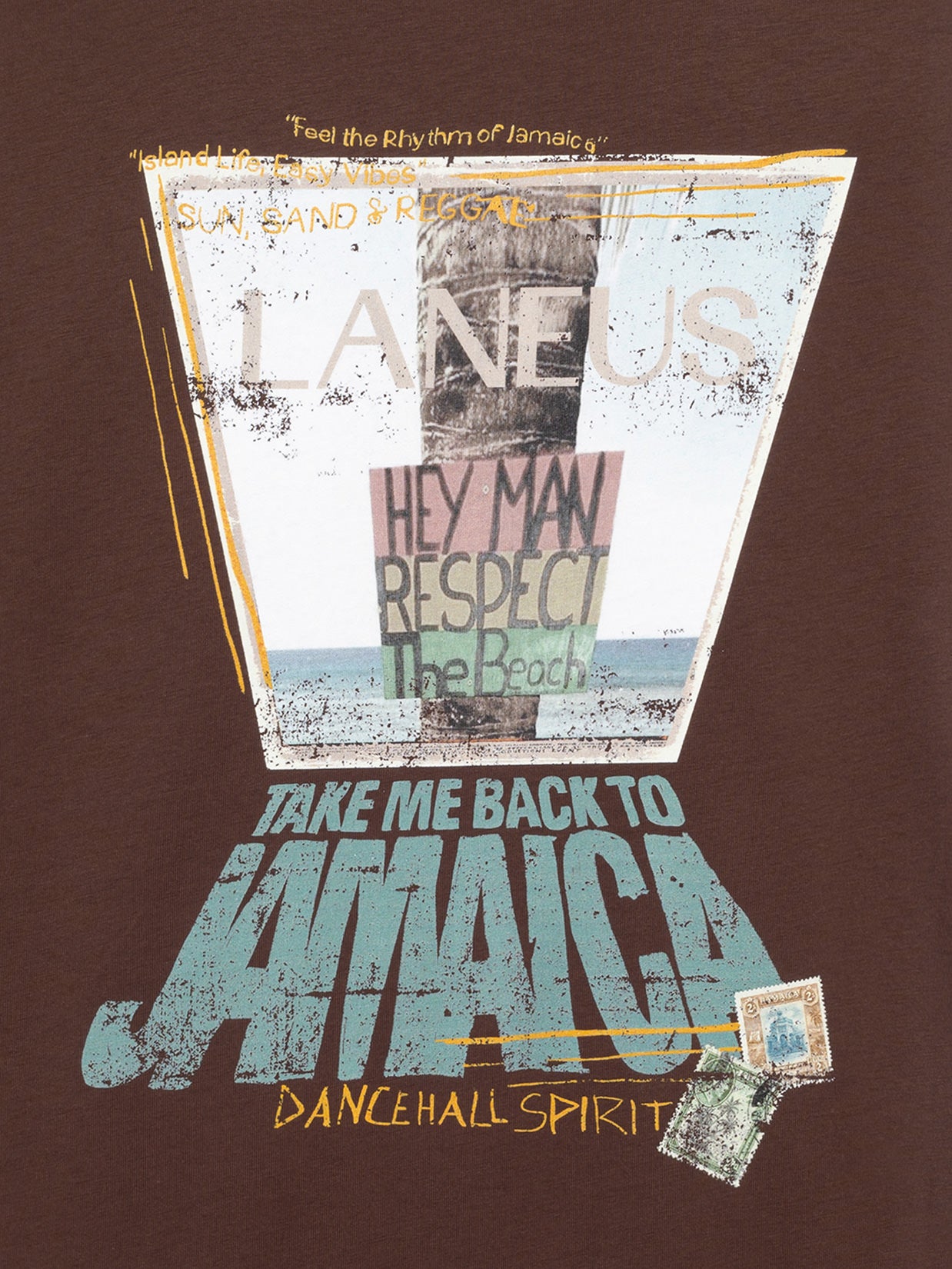 This 100% cotton T-shirt by Laneus features oversized lines and a large print on the back. The style has a relaxed fit. An essential piece with a distinctive, pop style. Made in Italy.