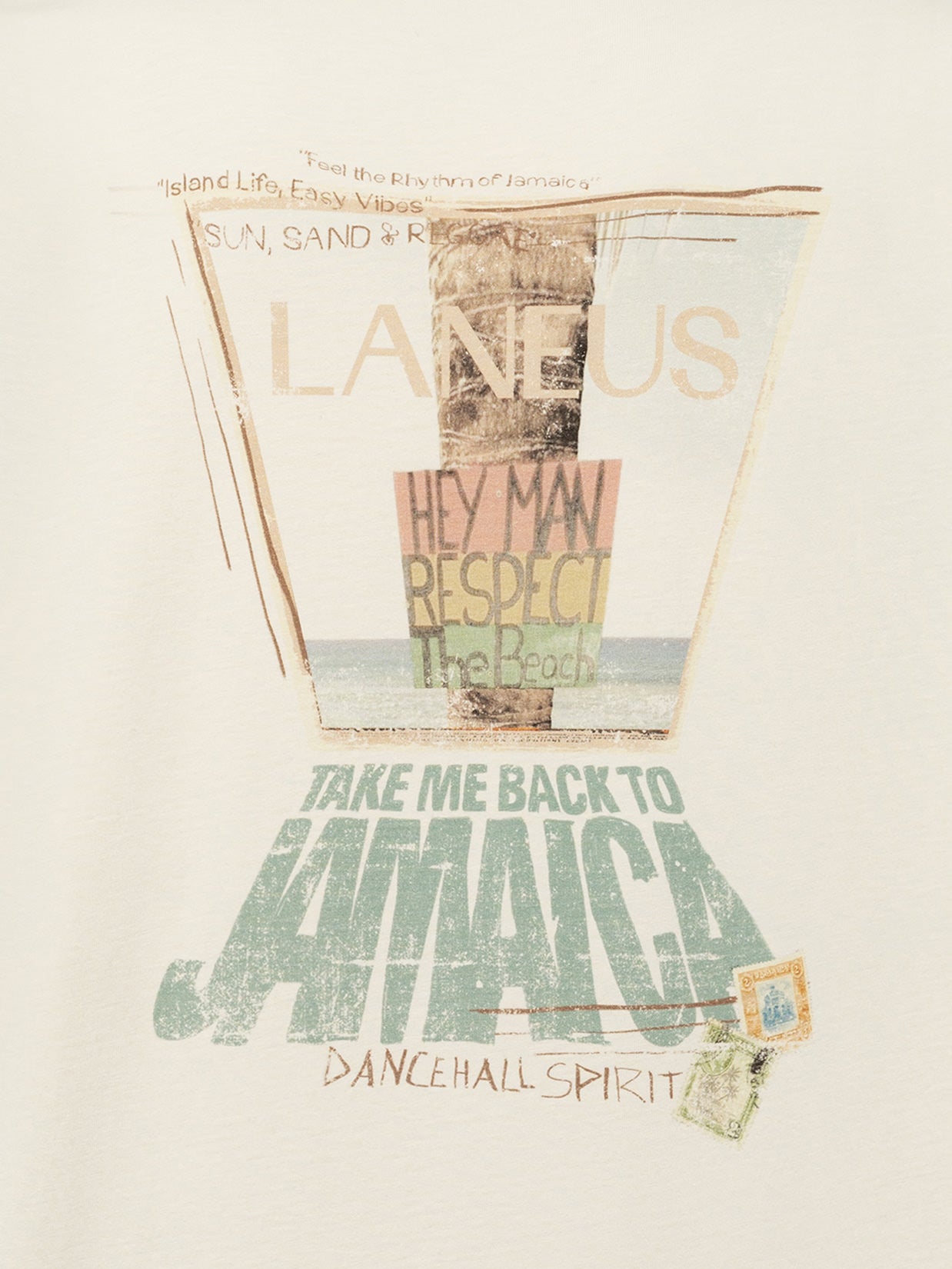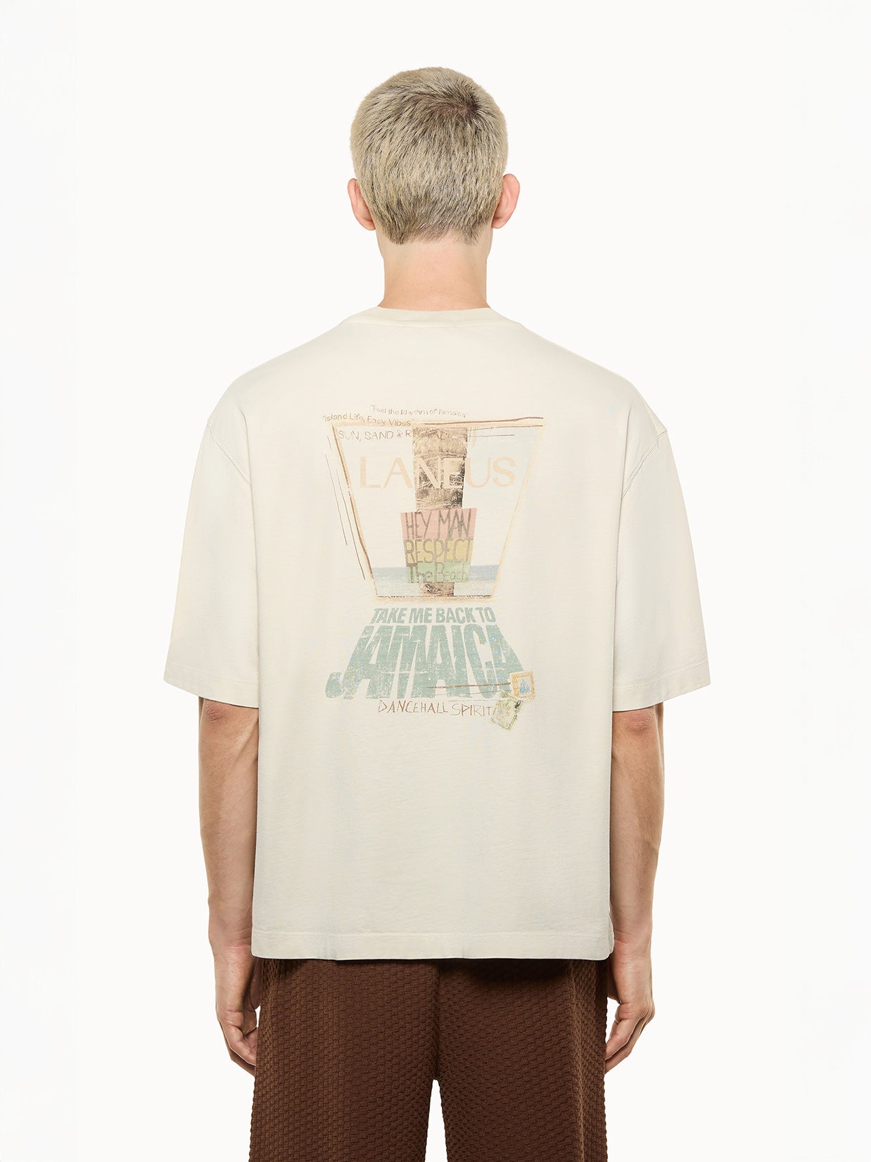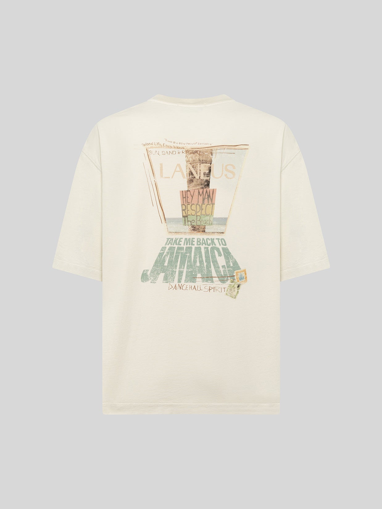 This 100% cotton T-shirt by Laneus features oversized lines and a large print on the back. The style has a relaxed fit. An essential piece with a distinctive, pop style. Made in Italy.
