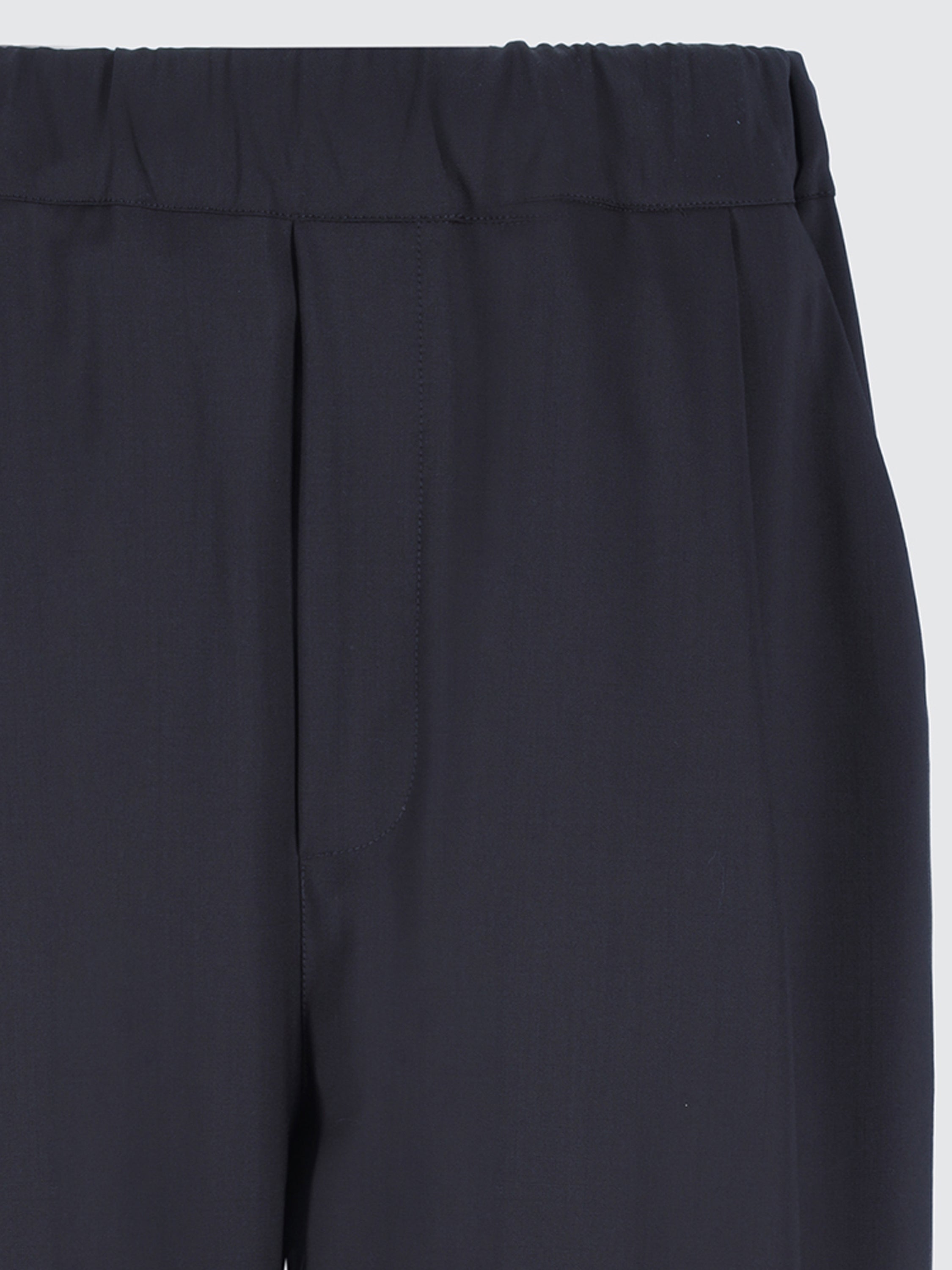 Laneus pants made from 100% lightweight virgin wool, featuring a clean and refined design. They come with an elasticated waistband and a faux fly, front pleats that add structure, slanted side pockets, and two patch pockets on the back. The breathable, lightweight fabric makes them ideal for warmer seasons, offering an elegant and versatile look suitable for both formal and casual settings. Made in Italy.