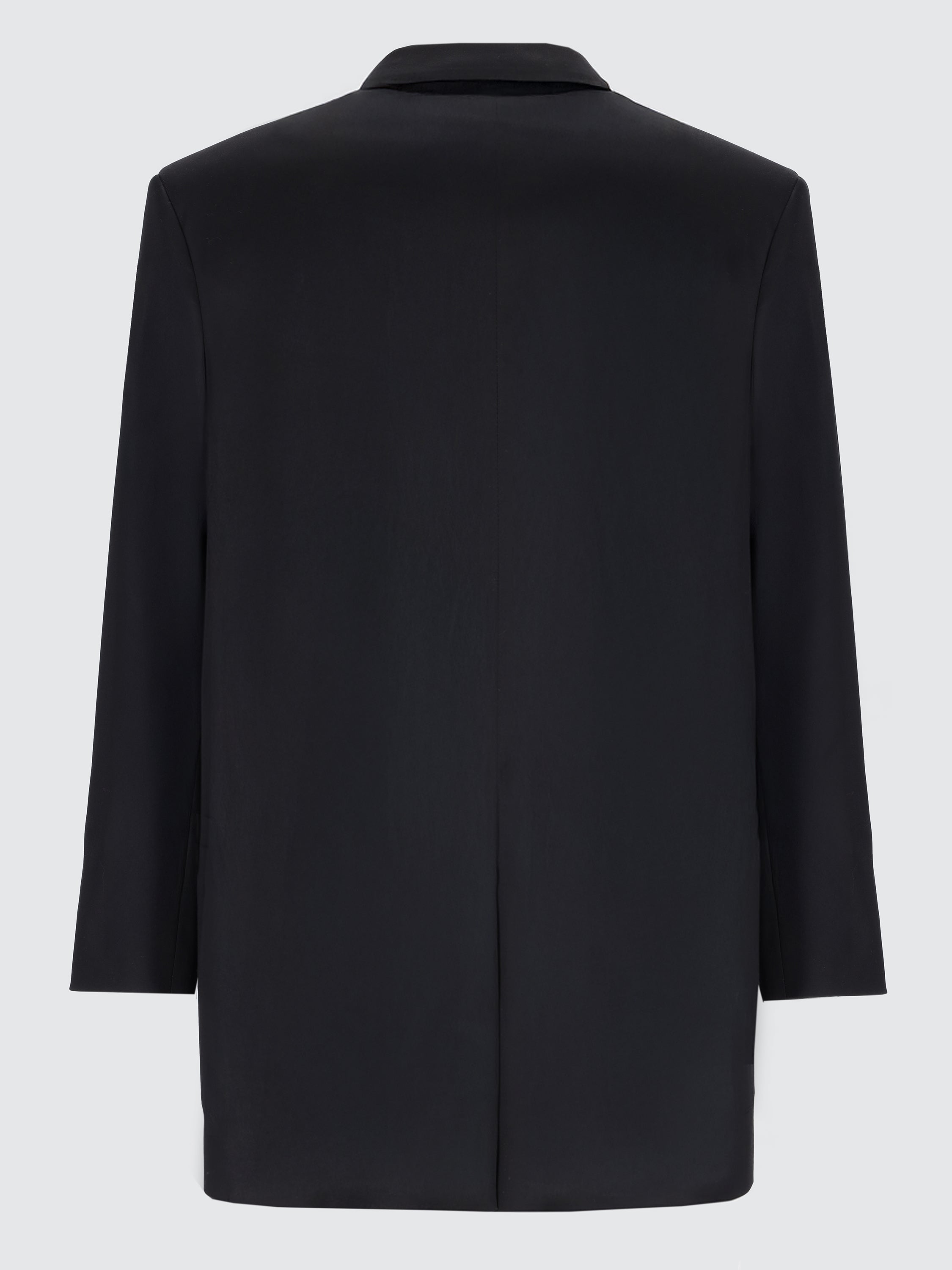 The Laneus blazer is crafted from cotton satin and features an oversized double-breasted silhouette, peak lapels and patch pockets.