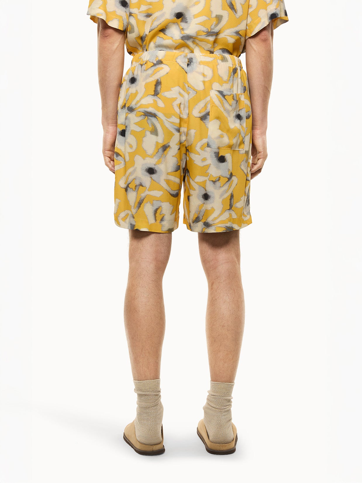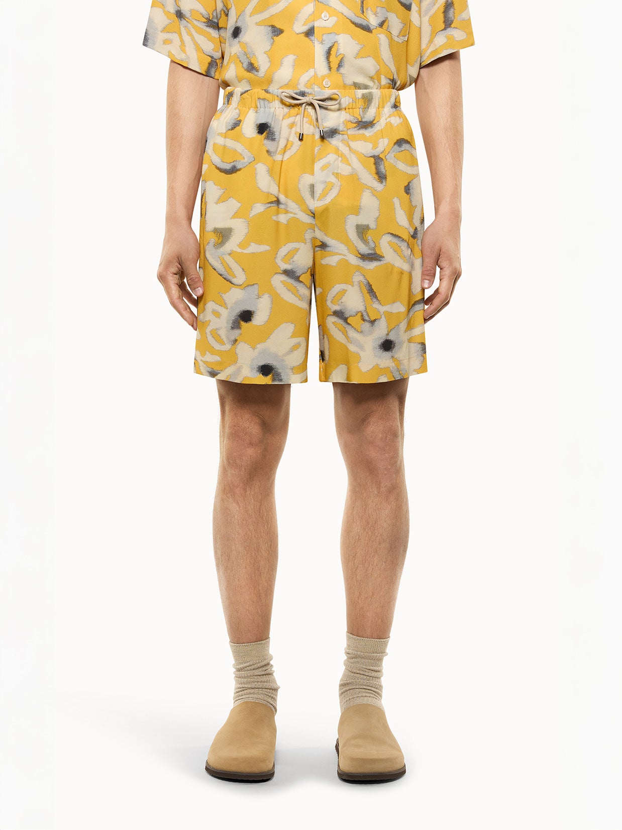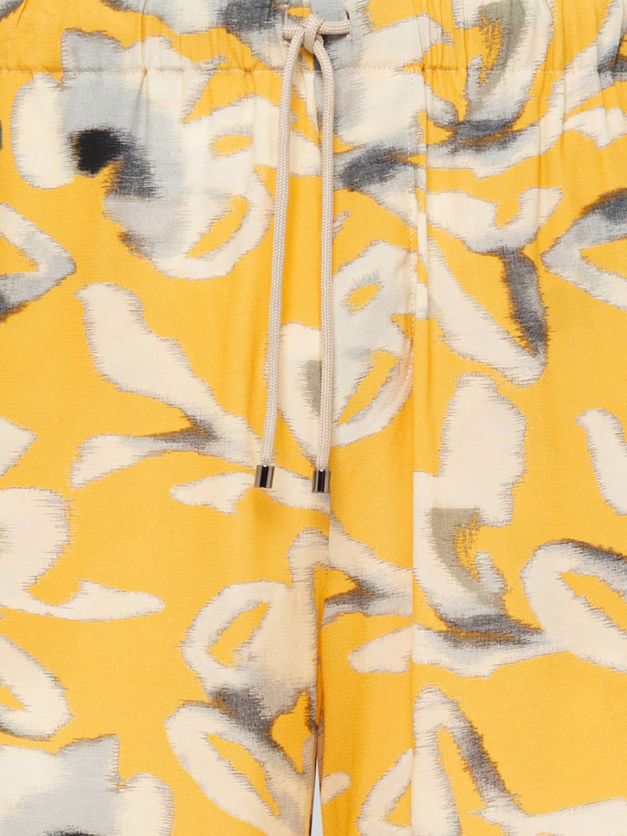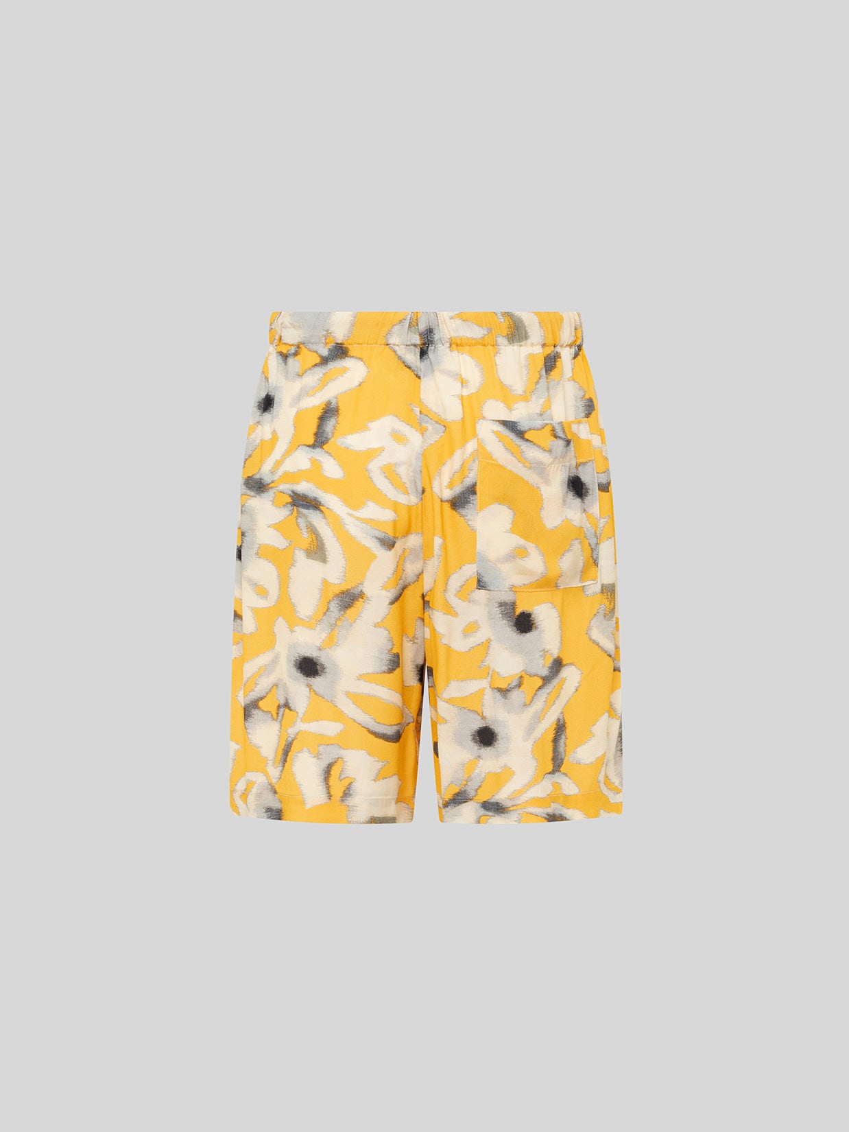 Lightweight viscose shorts with a multicolored pattern. The design is simple and understated. The adjustable drawstring waist makes it a comfortable and versatile piece. Two front slant pockets and a flat back pocket complete the look. Made in Italy.