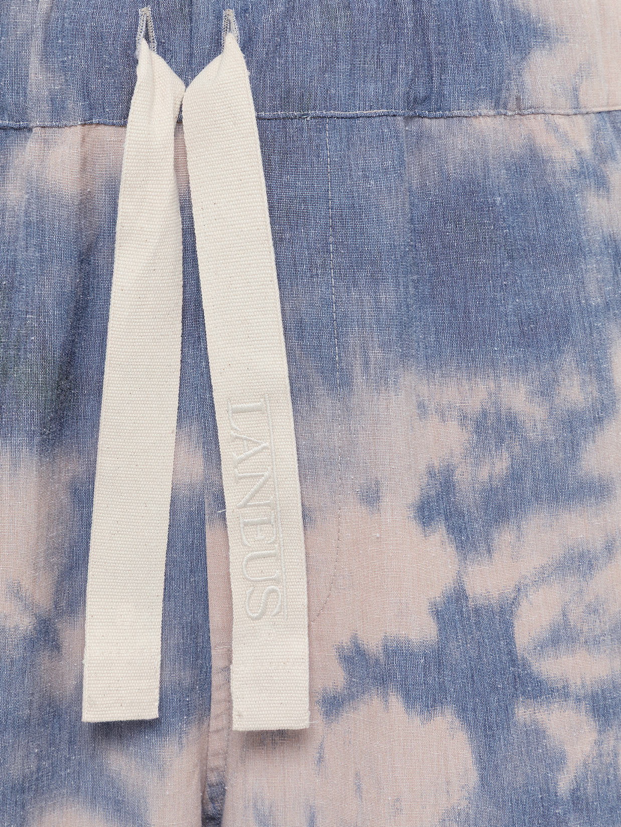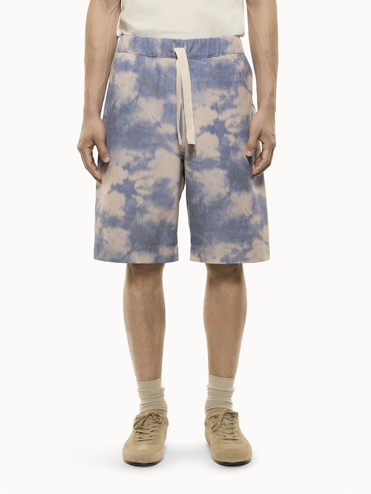 Lightweight fabric shorts with a tie-dye motif. The design is simple and essential. The adjustable elastic waistband and drawstring with an embroidered LA logo make this a comfortable and versatile piece. Two slanted pockets on the front and a flat pocket on the back complete the look. Made in Italy.