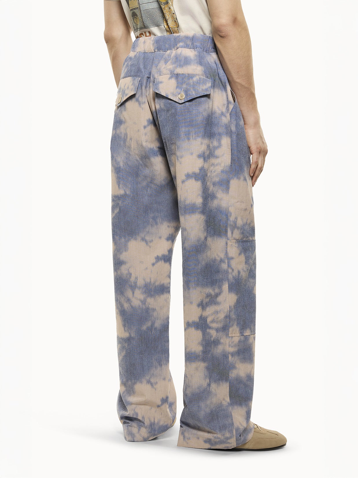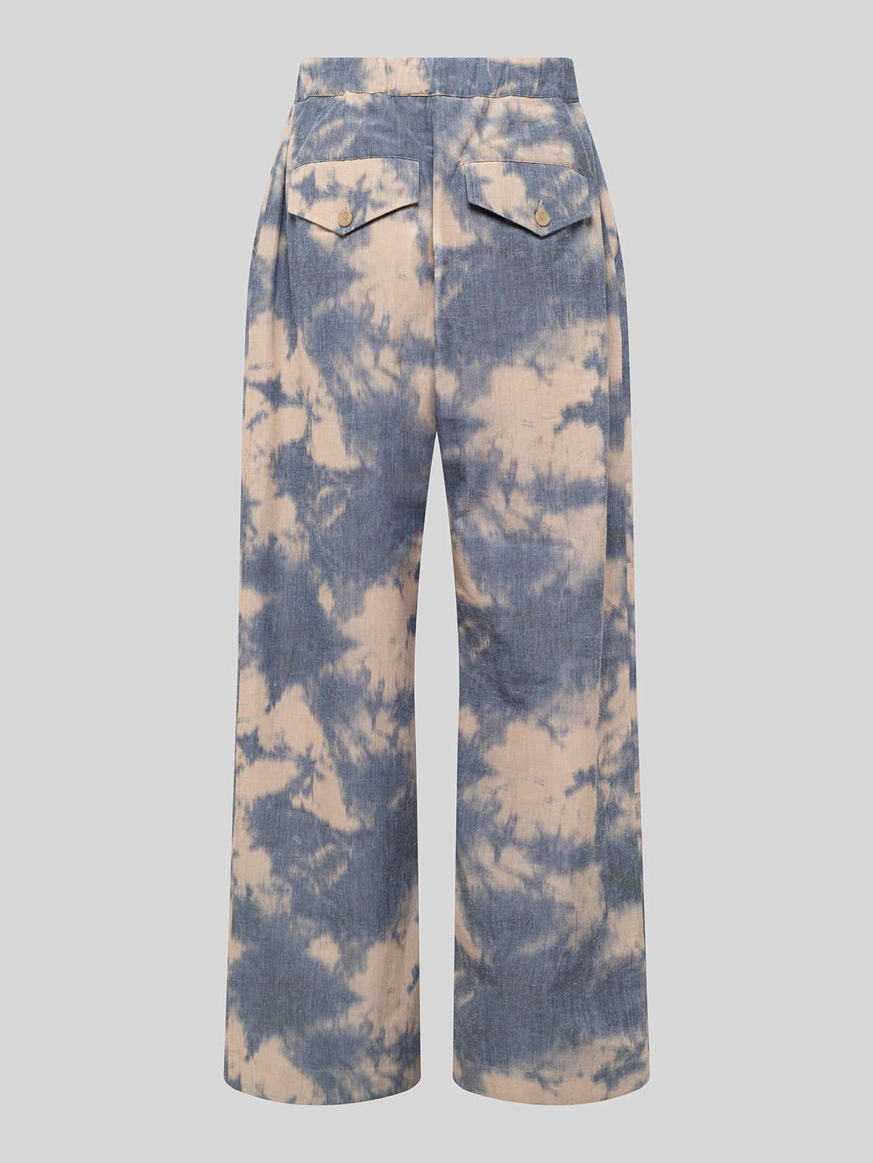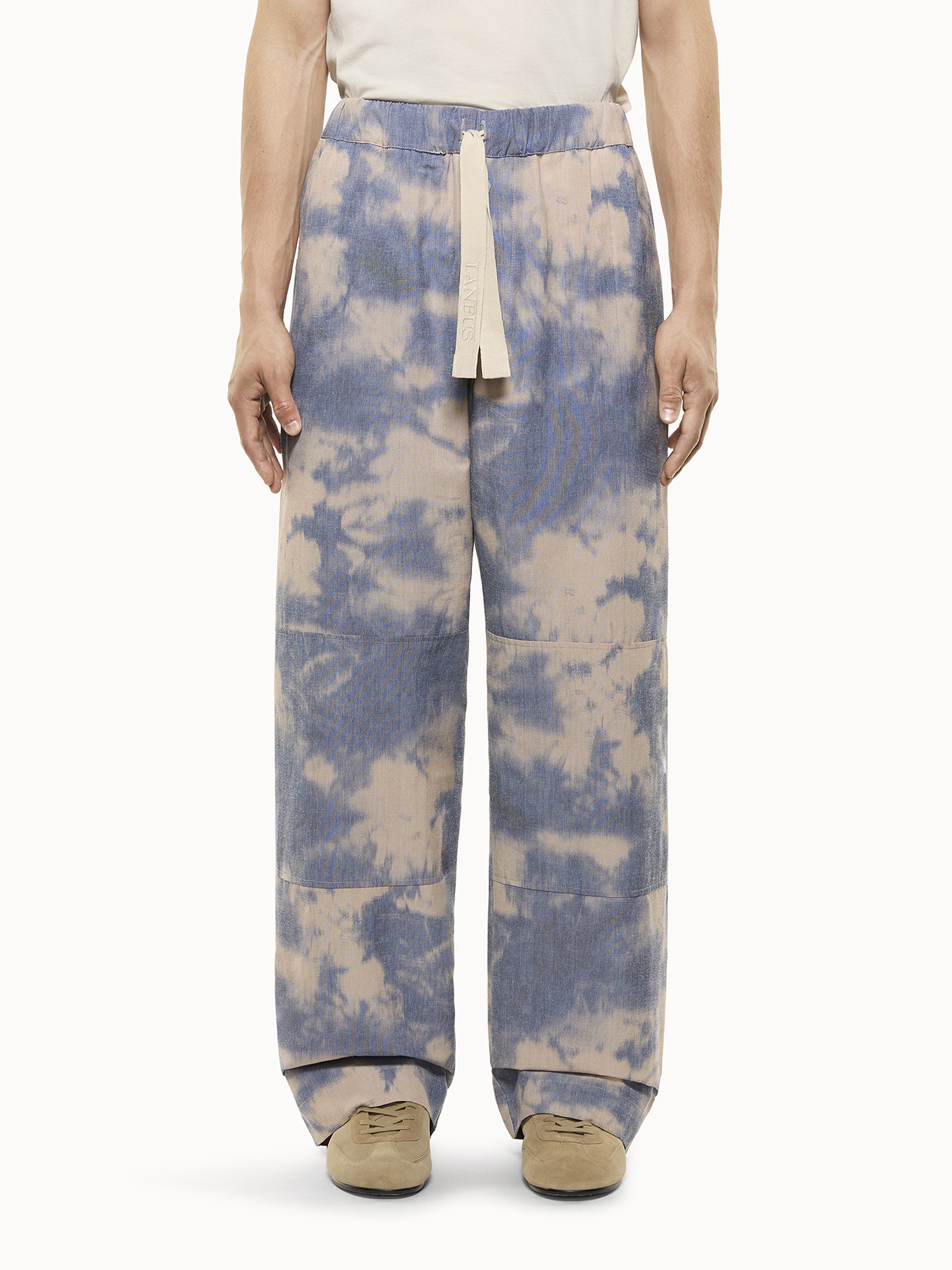 Wide-leg trousers made of a cotton blend featuring a tie-dye effect. Regular waist with drawstring. Made in Italy.