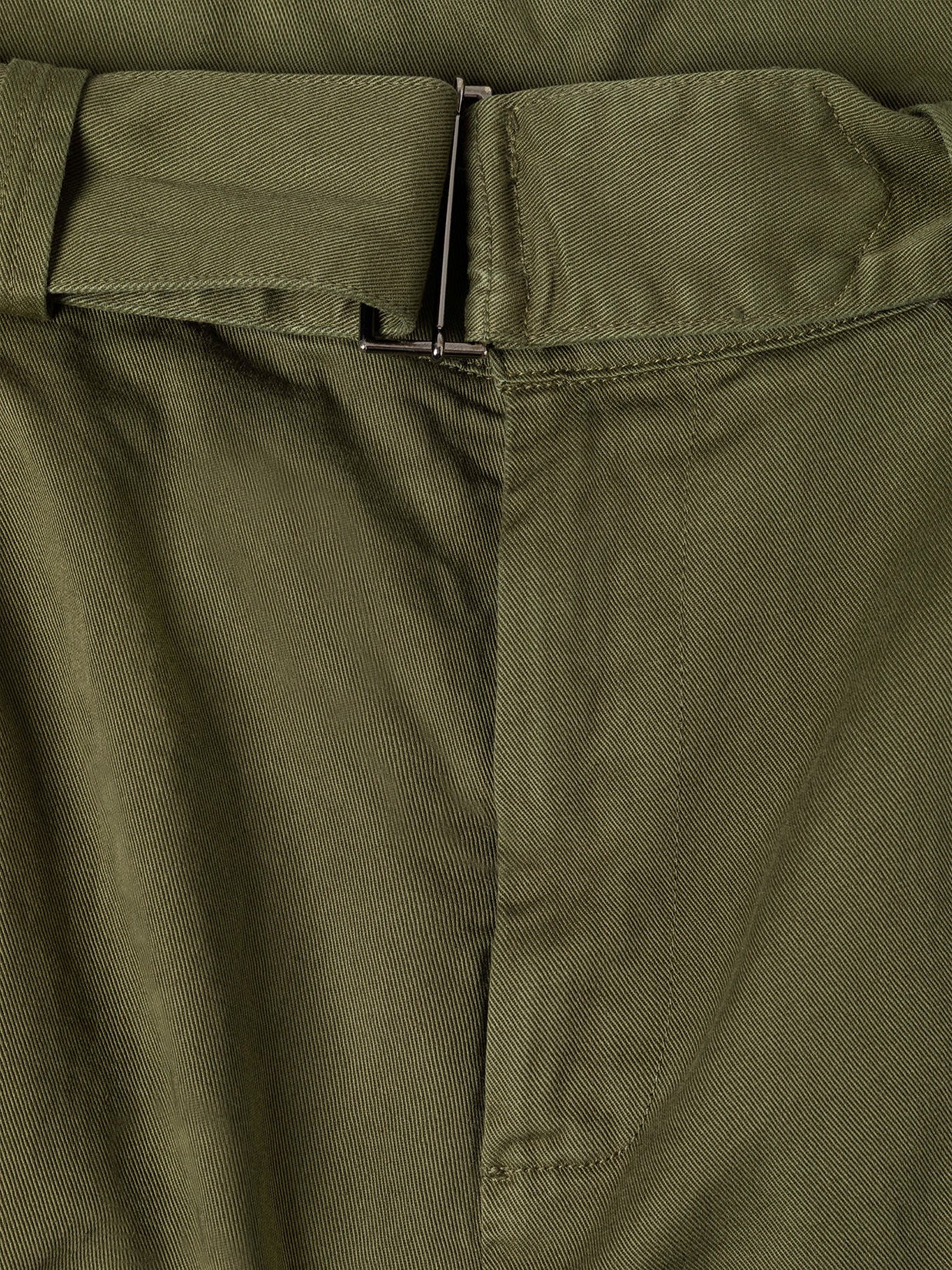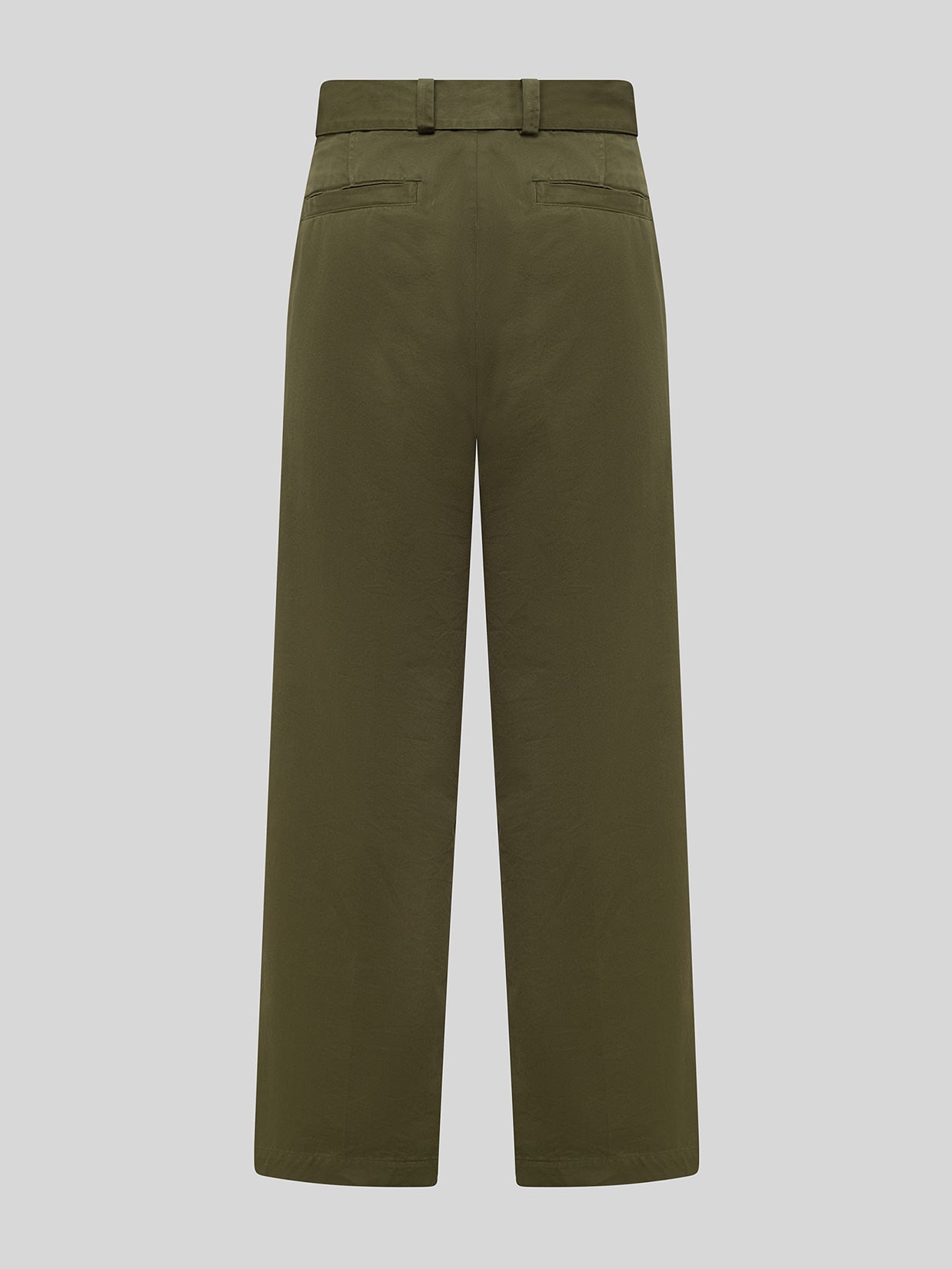 These Laneus cotton gabardine trousers feature a relaxed yet detailed design. They feature a comfortable belted waist, a button and zip closure, darts on the front that add structure to the line, slanted side pockets, and two welt pockets on the back. The soft fabric makes them suitable for everyday wear. Made in Italy.