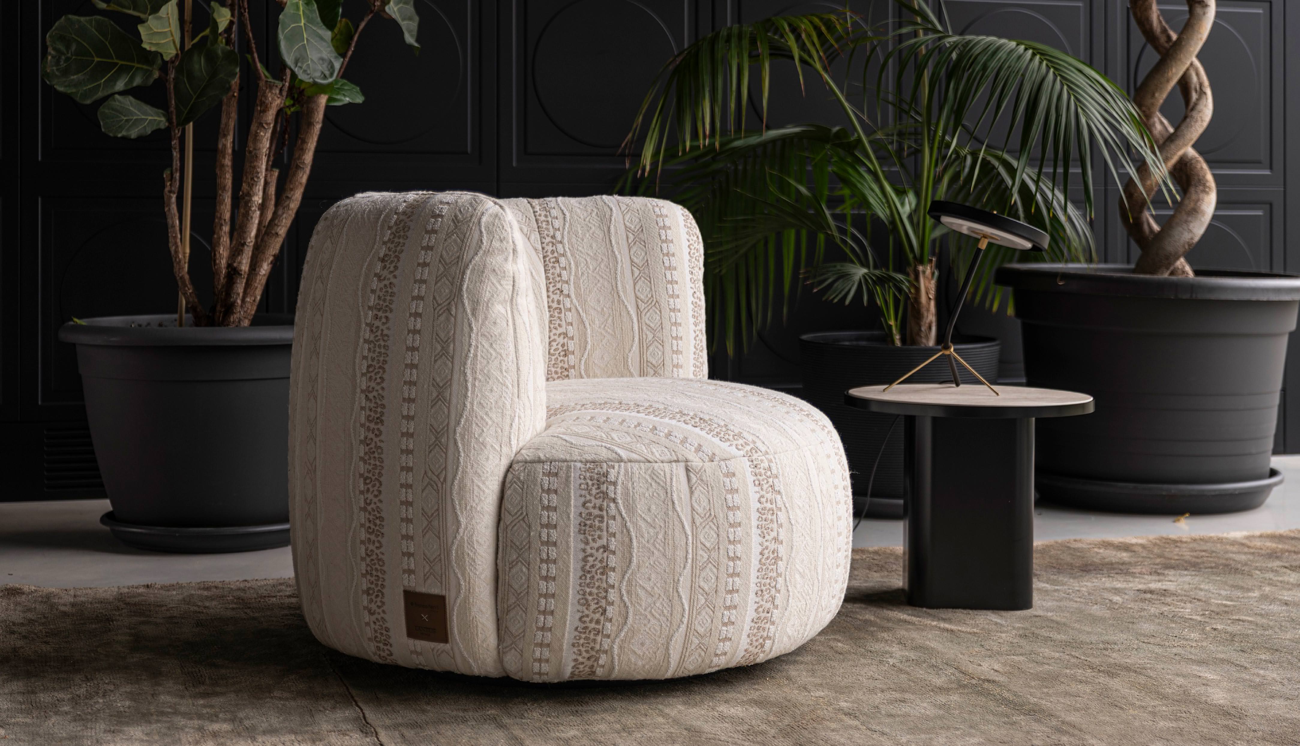 Una collaborazione che celebra l’armonia tra forma e materia, dove i tessuti iconici Laneus abbandonano la dimensione del ready-to-wear per vestire gli spazi del vivere quotidiano.