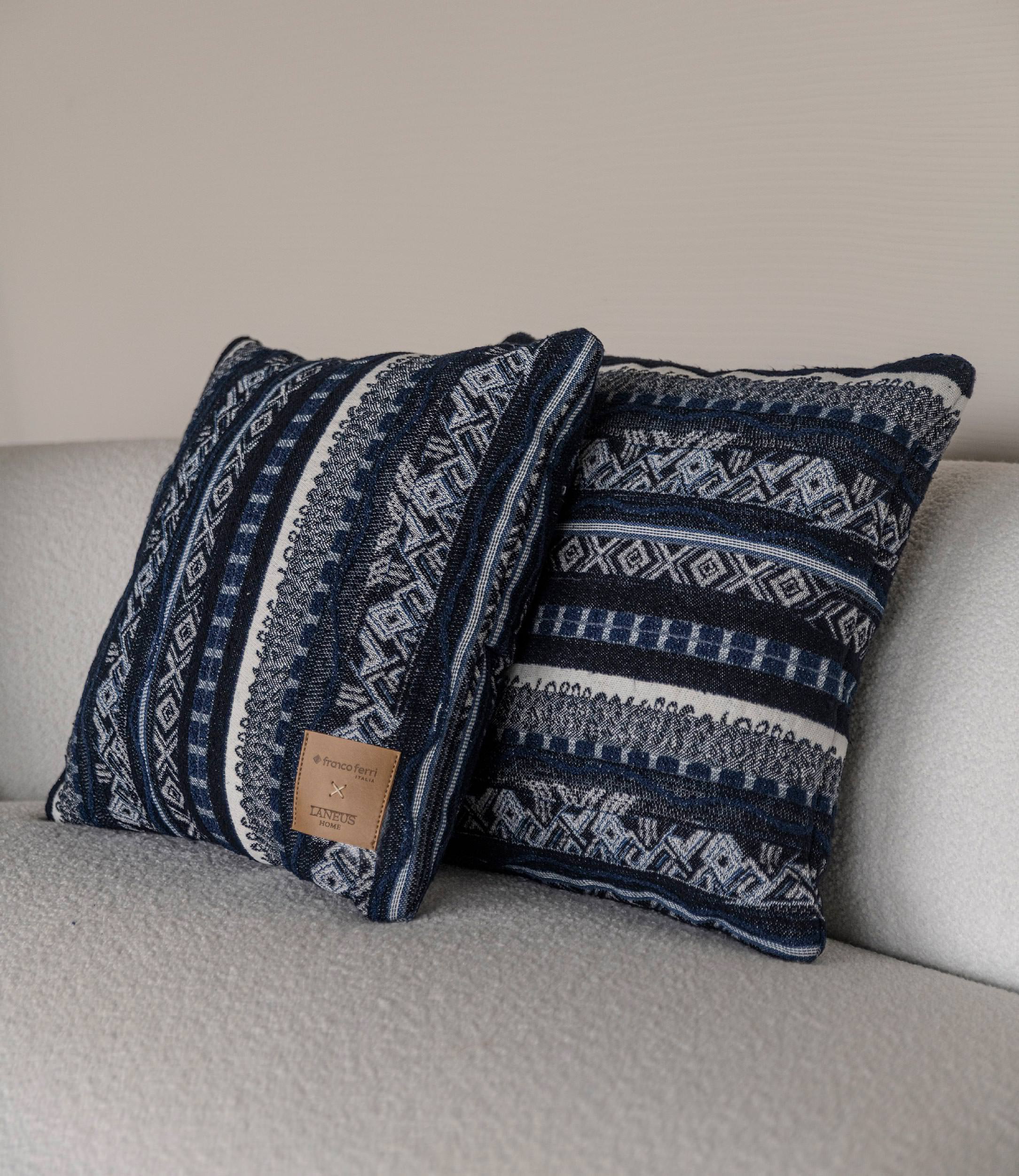 Esplora i pezzi della collaborazione: scopri come le trame iconiche e i filati preziosi di Laneus danno nuova vita agli imbottiti e agli accessori,