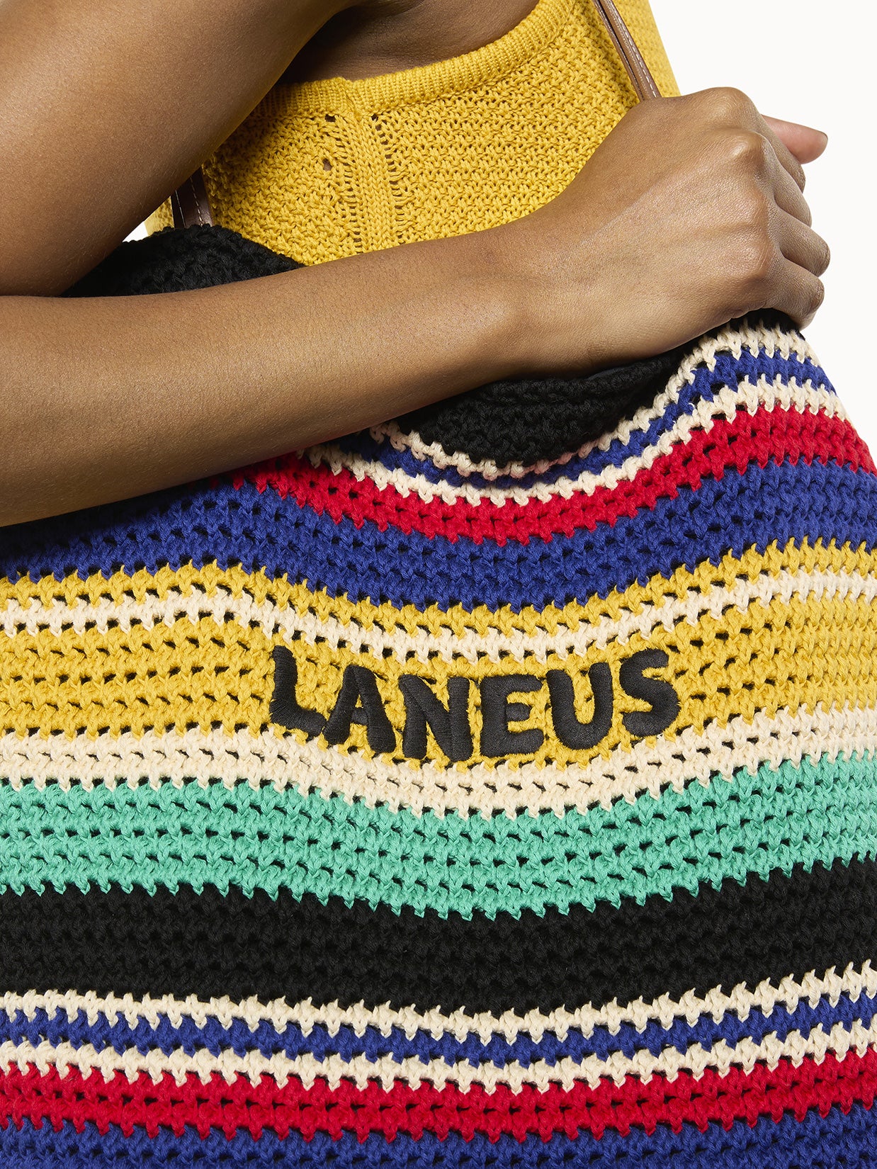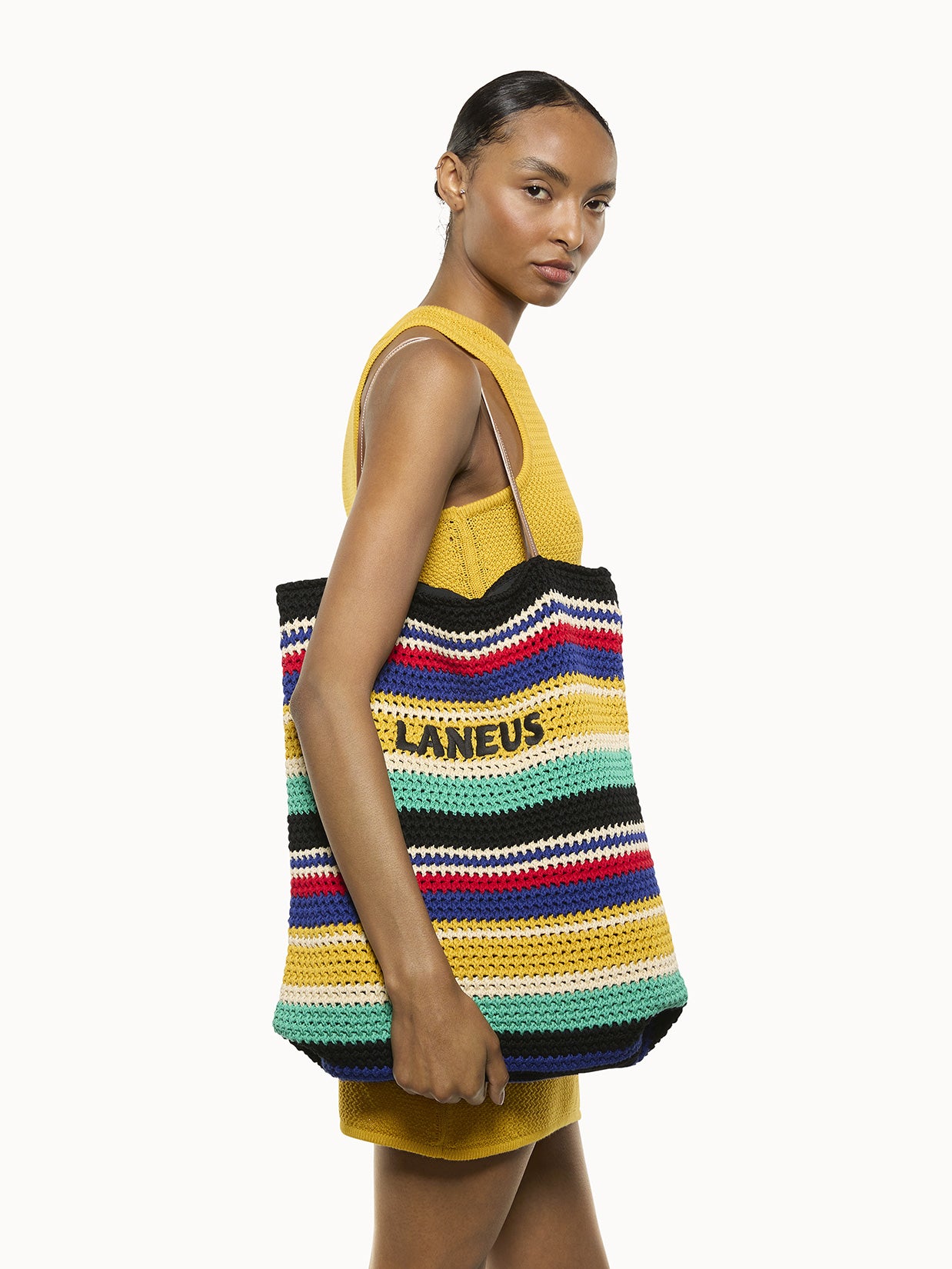 Shopping bag con iconico intreccio Laneus. Manici in pelle. Dettaglio logato ricamato al centro. Fodera interna in cotone. Made in Italy.