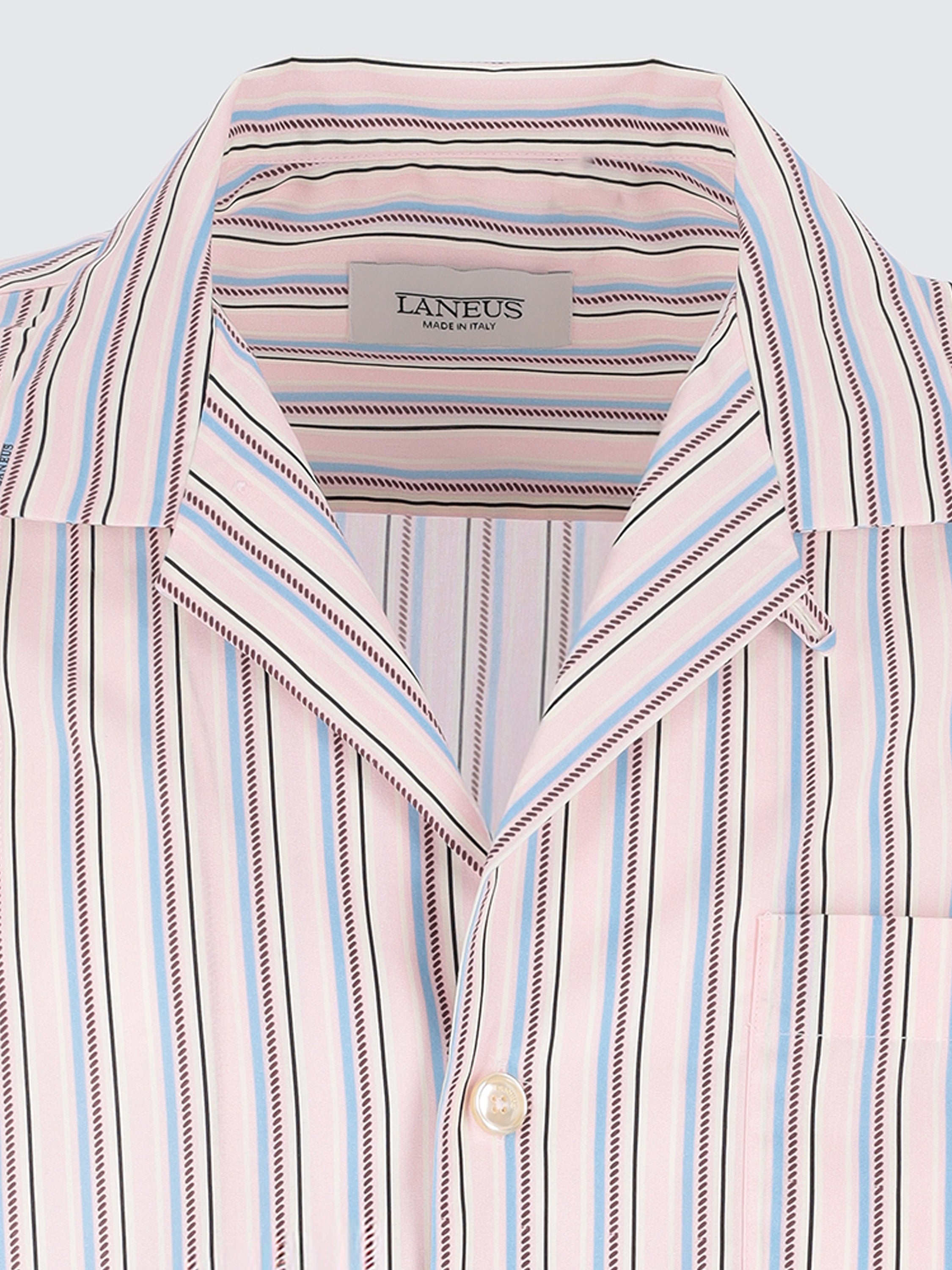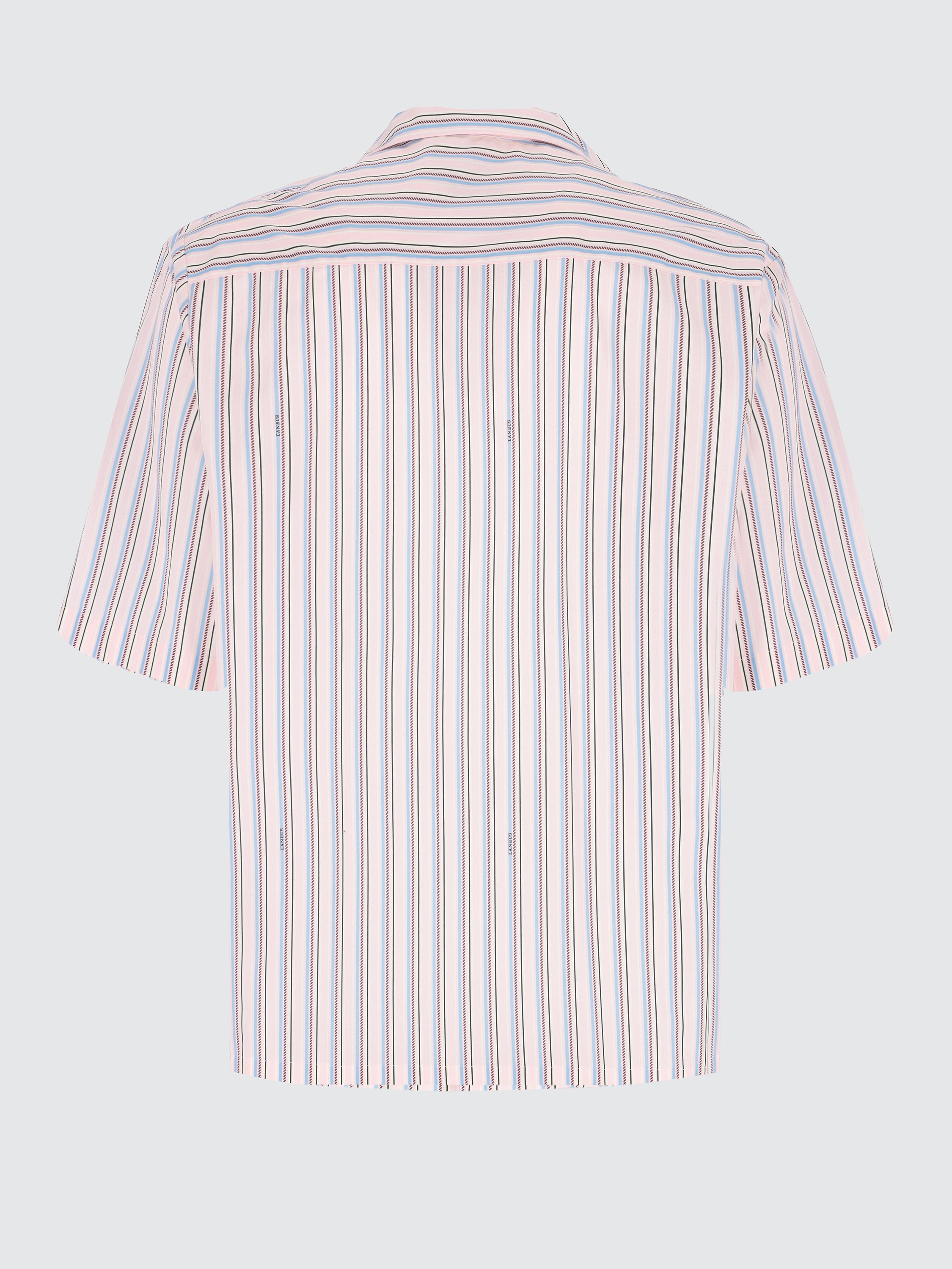 La camicia bowling di Laneus è realizzata in cotone con una stampa a righe multicolore e presenta una silhouette boxy con taschino a toppa sul davanti.