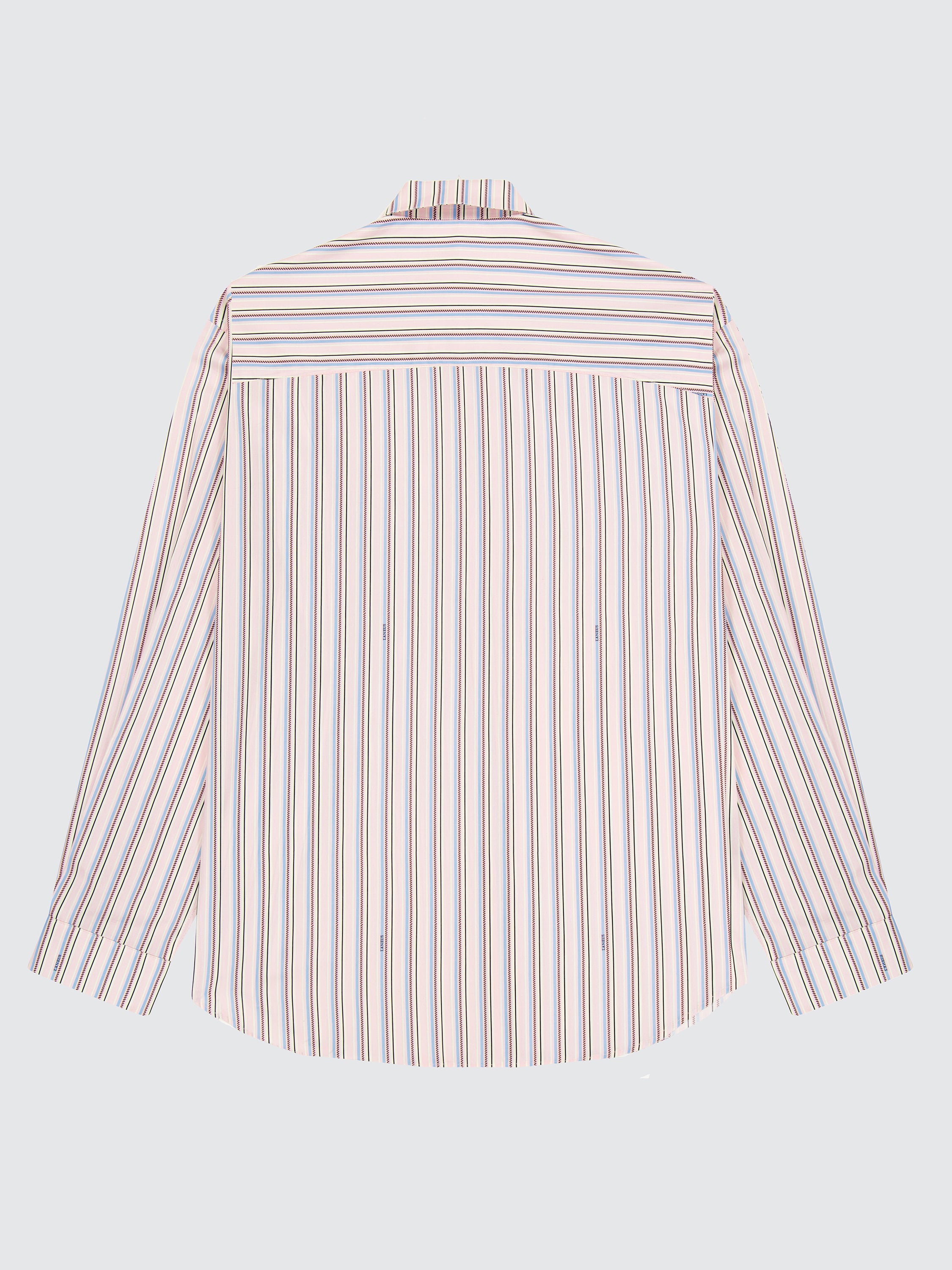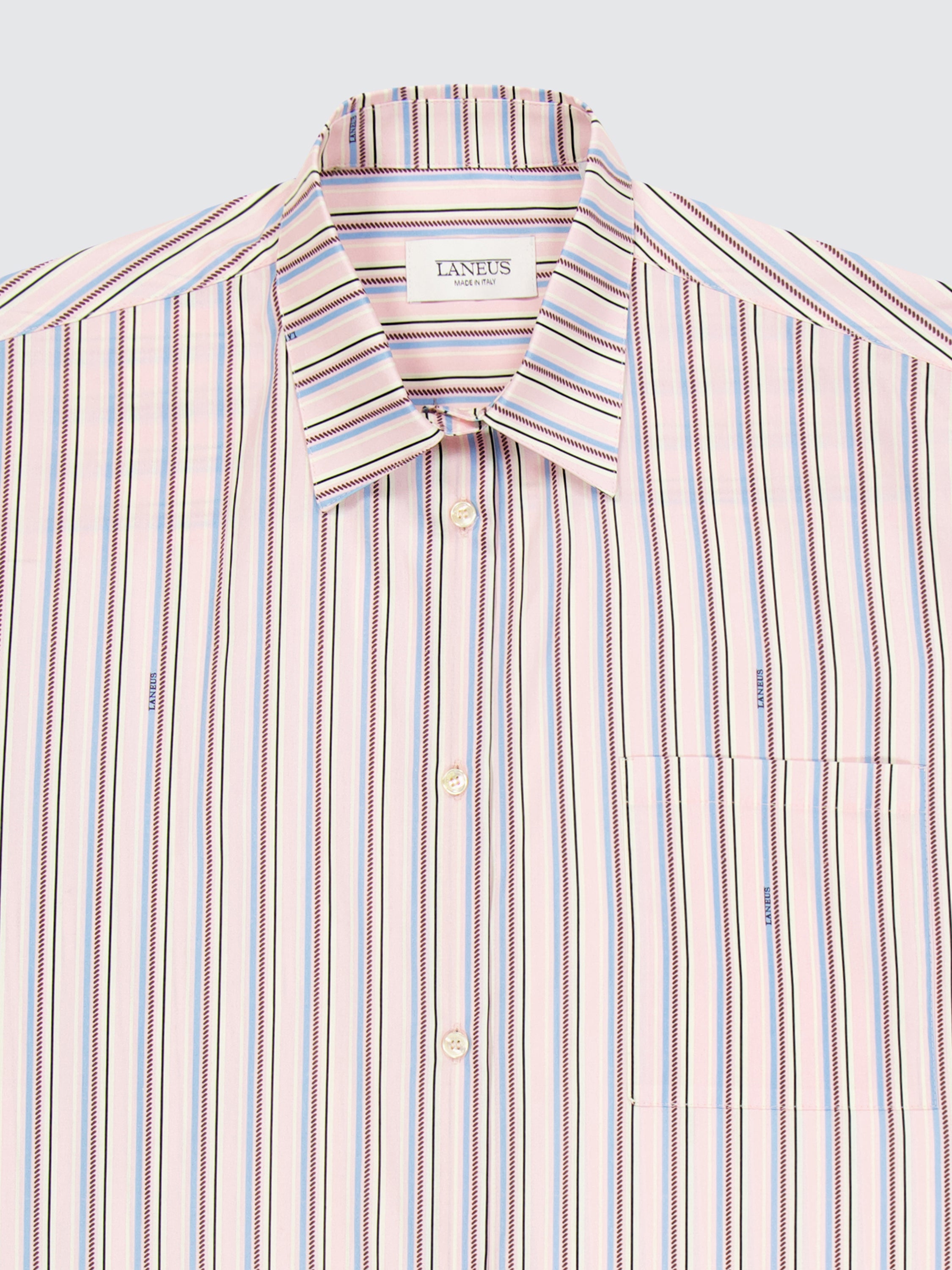 La camicia di Laneus è realizzata in cotone con la stampa a righe multicolor e presenta una silhouette oversize, un colletto all'italiana con chiusura button-down e un taschino a toppa sul lato.