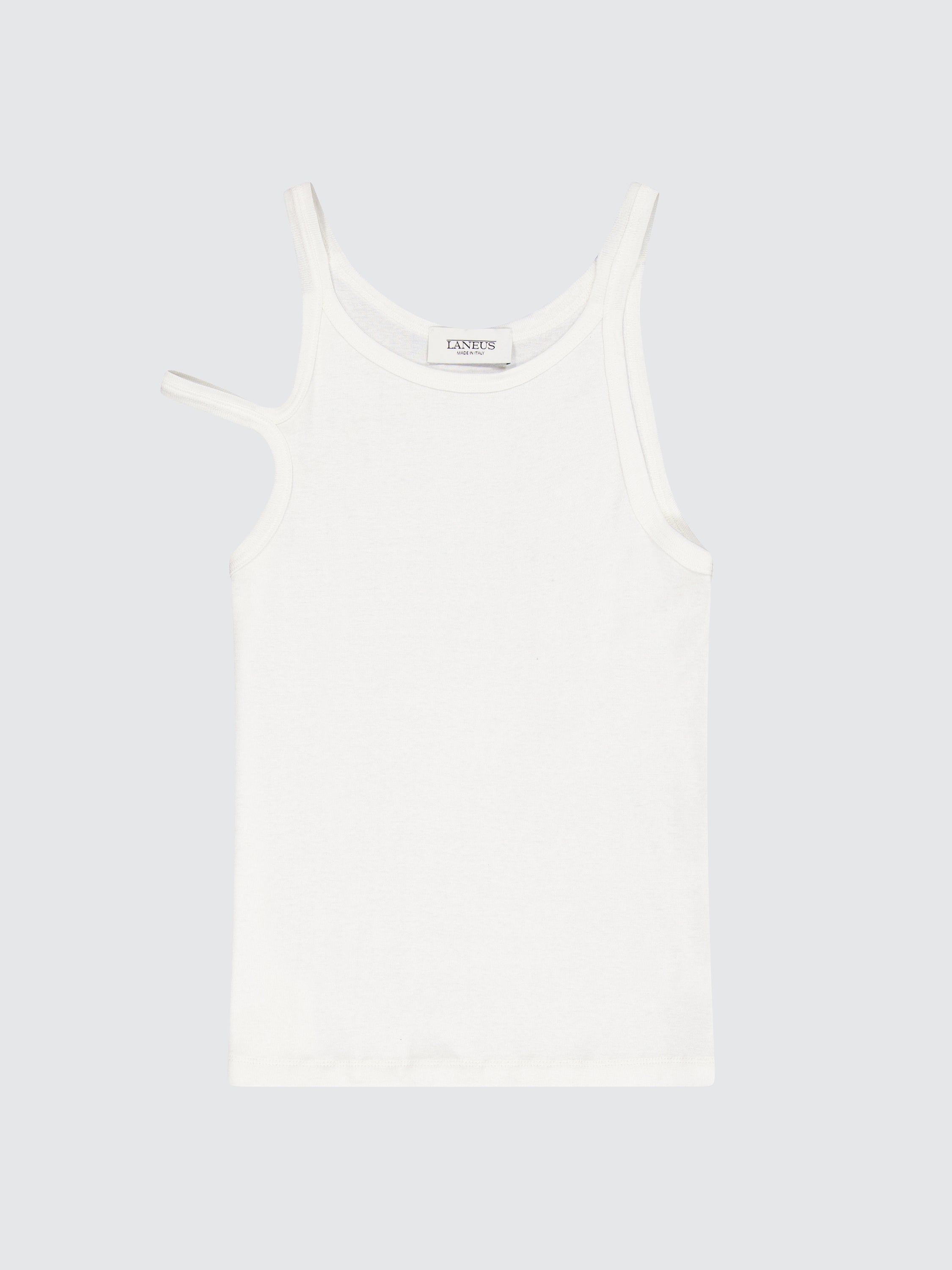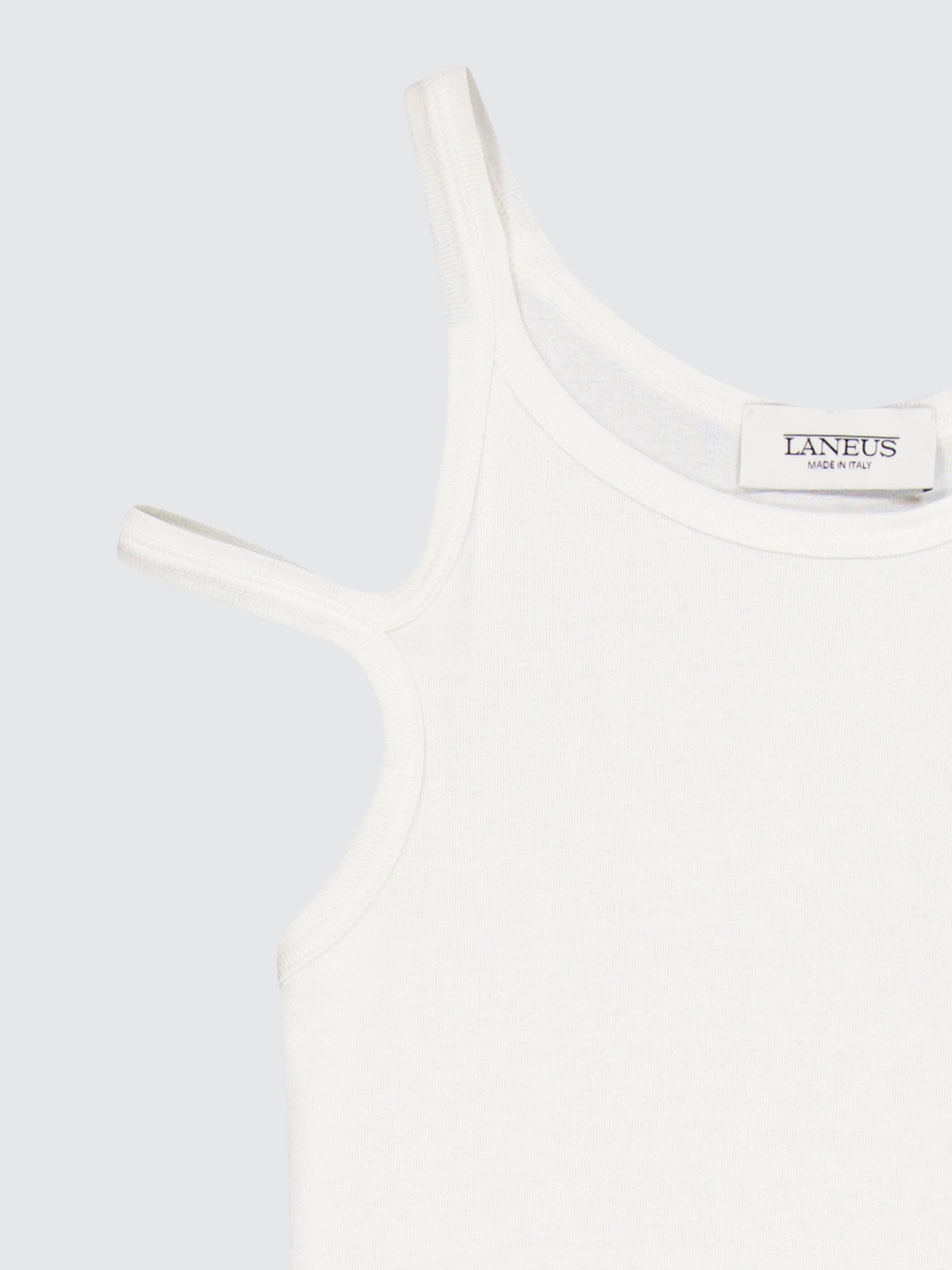 Questo top di Laneus ha una silhouette regular con scollo asimmetrico a tre spalline. Il modello in maglia a coste è realizzato in jersey di cotone e seta.