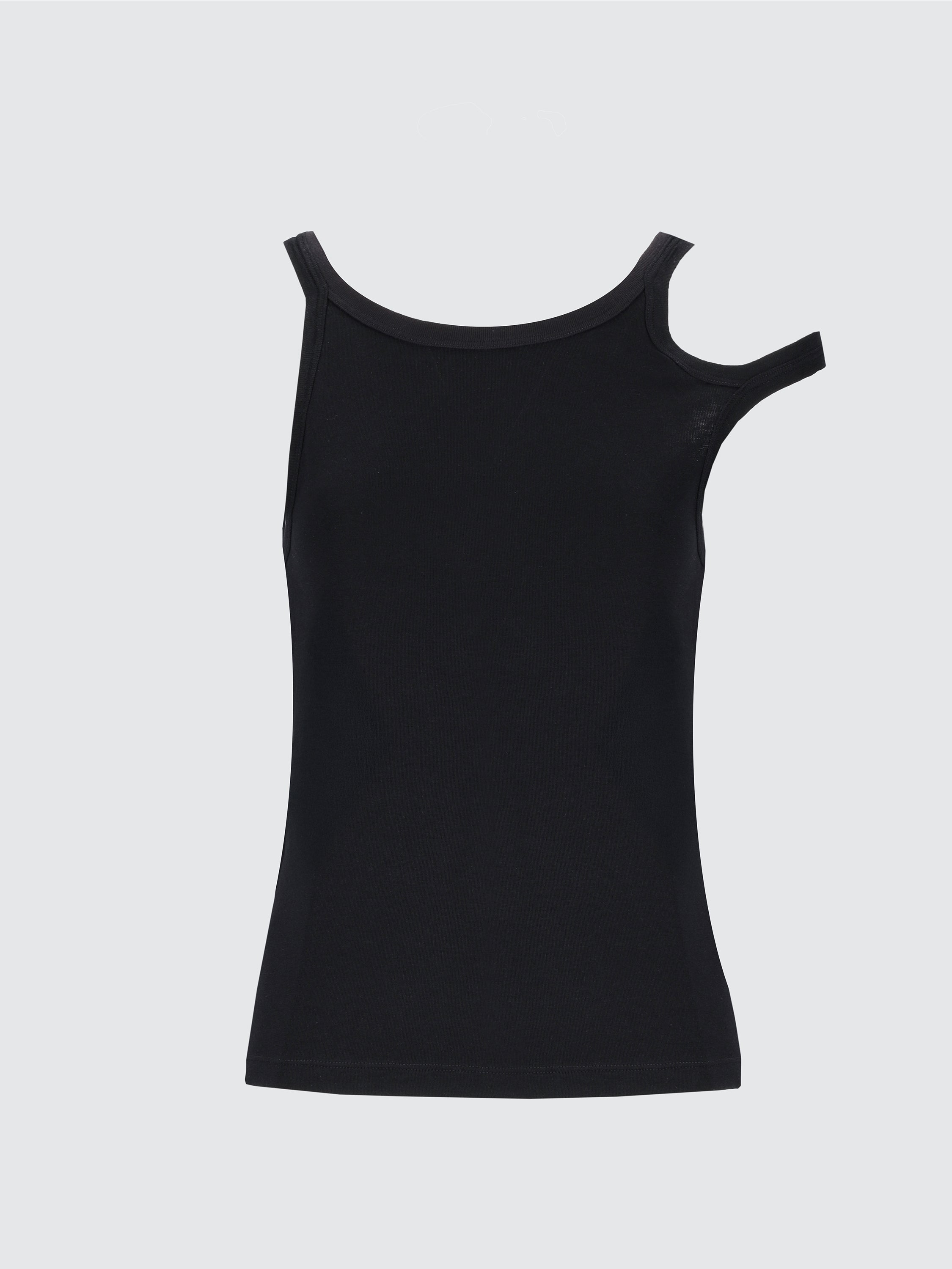 Questo top di Laneus ha una silhouette regular con scollo asimmetrico a tre spalline. Il modello in maglia a coste è realizzato in jersey di cotone e seta.