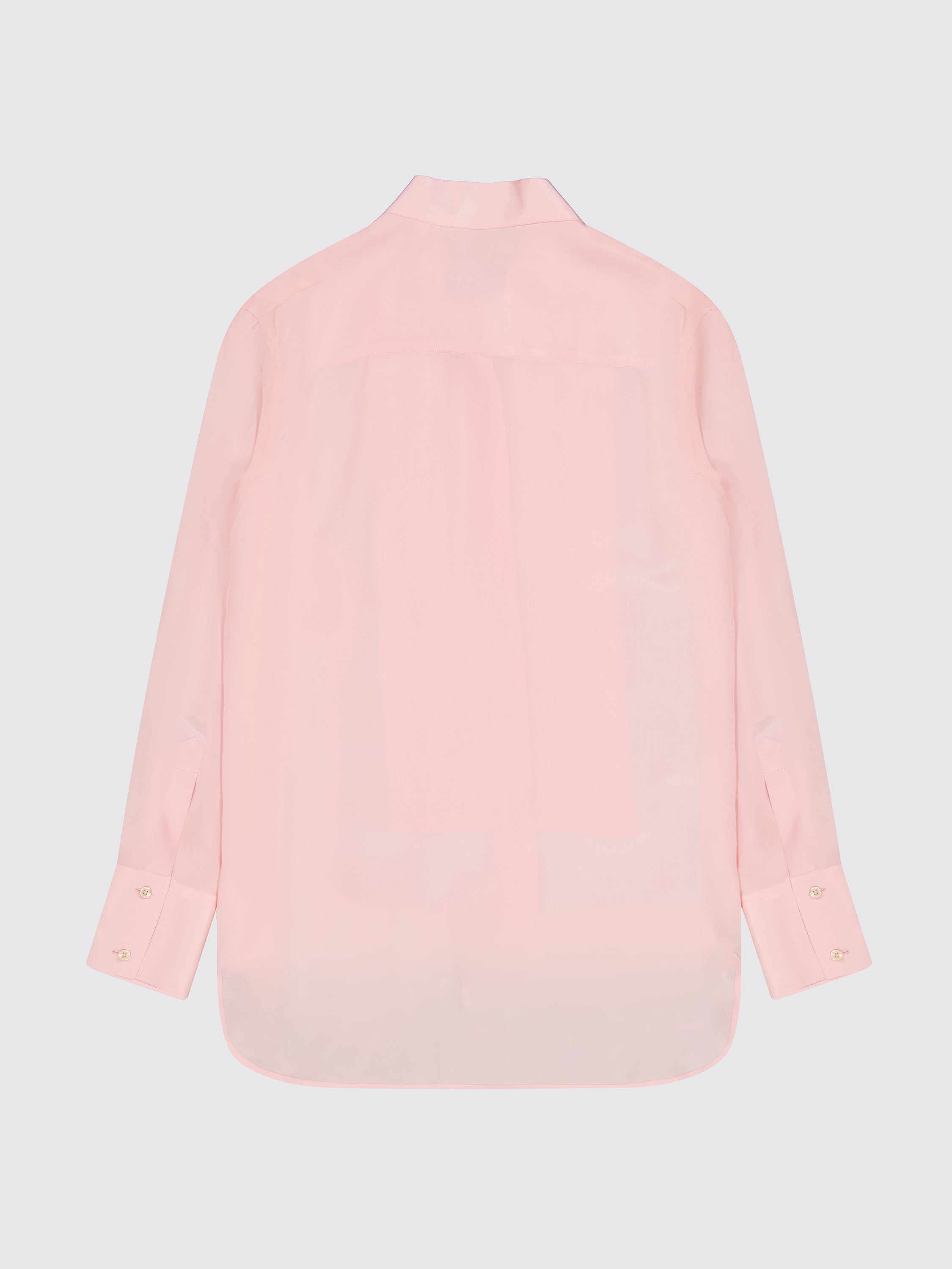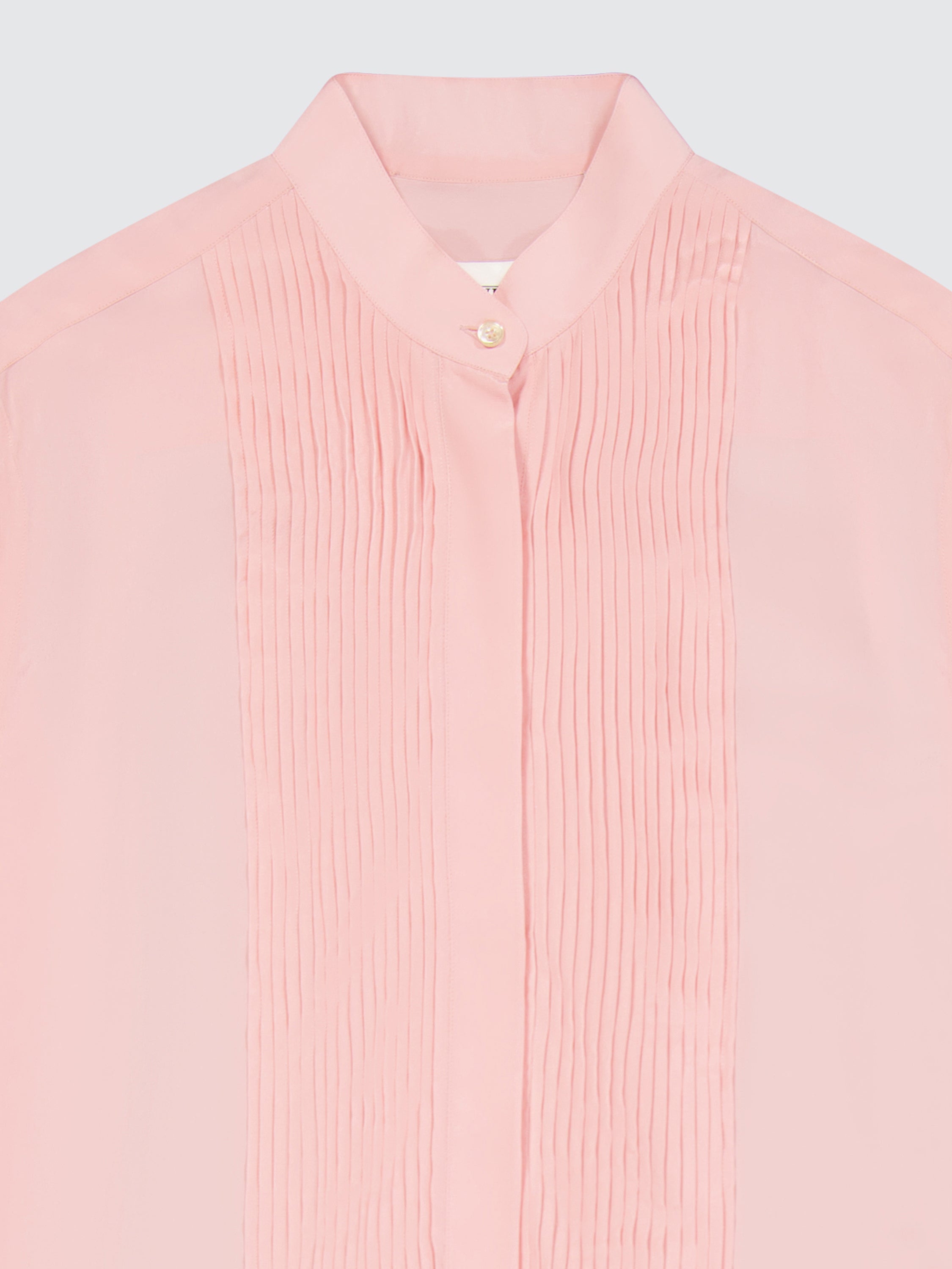 Laneus rivisita la camicia bianca dando vita a questo modello dal fit oversize made in Italy realizzata in crepe de chine, che strizza l’occhio ai design classici grazie a un affascinate collo coreano con abbottonatura centrale nascosta impeziosita da un plastron plissettato stile smoking.