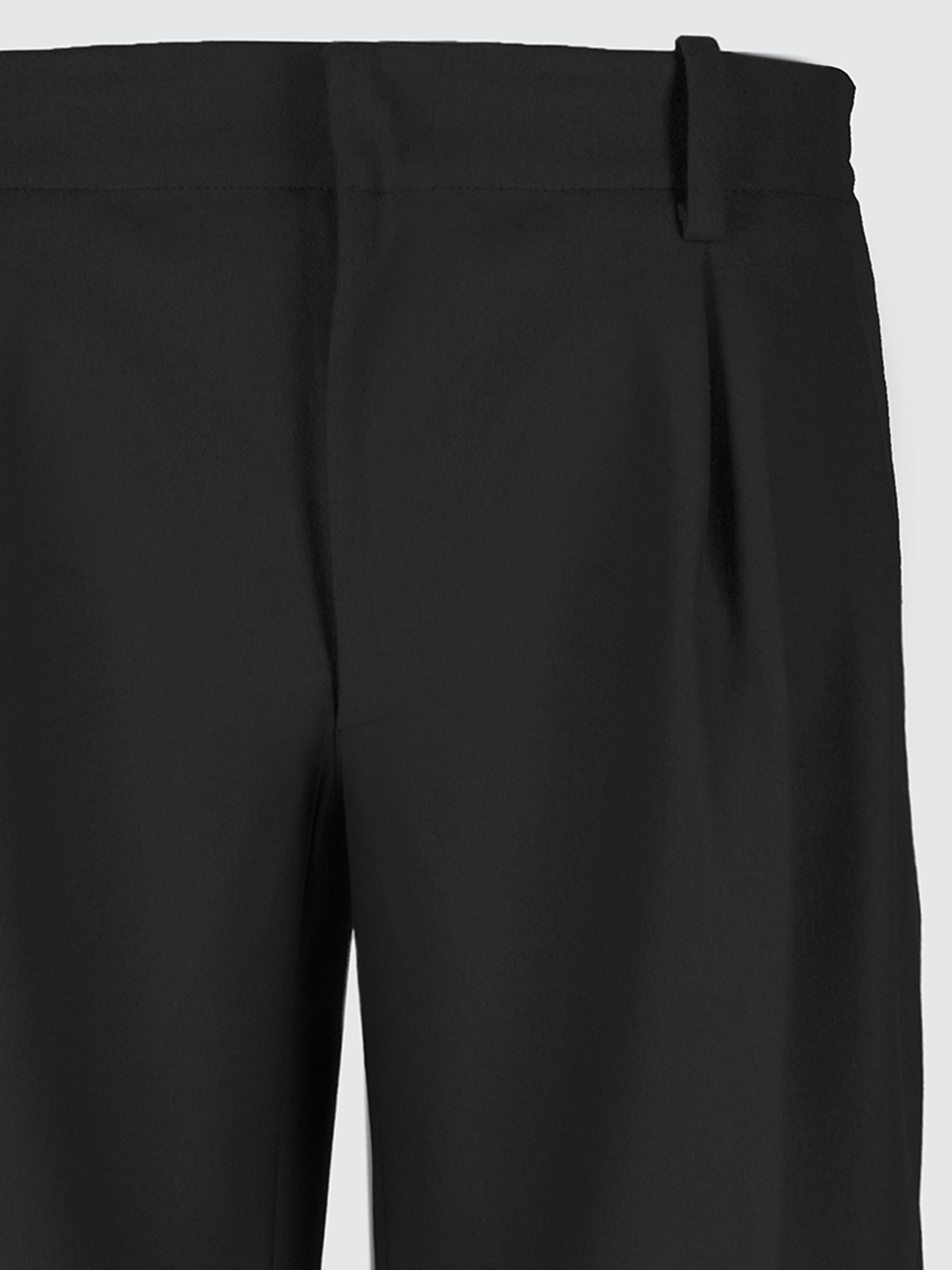 Pantalone ampio firmato Laneus in flanella di lana e cashmere, caratterizzato da una doppia ripresa sul davanti che dona volume e struttura. Il modello presenta tasche in cucitura sui lati, due tasche a filetto sul retro, fondo ampio e una chiusura frontale con zip e gancetto. Realizzato in un pregiato mix di lana vergine, nylon e cashmere, unisce calore, morbidezza e resistenza, ideale per un look elegante e contemporaneo. Made in Italy.