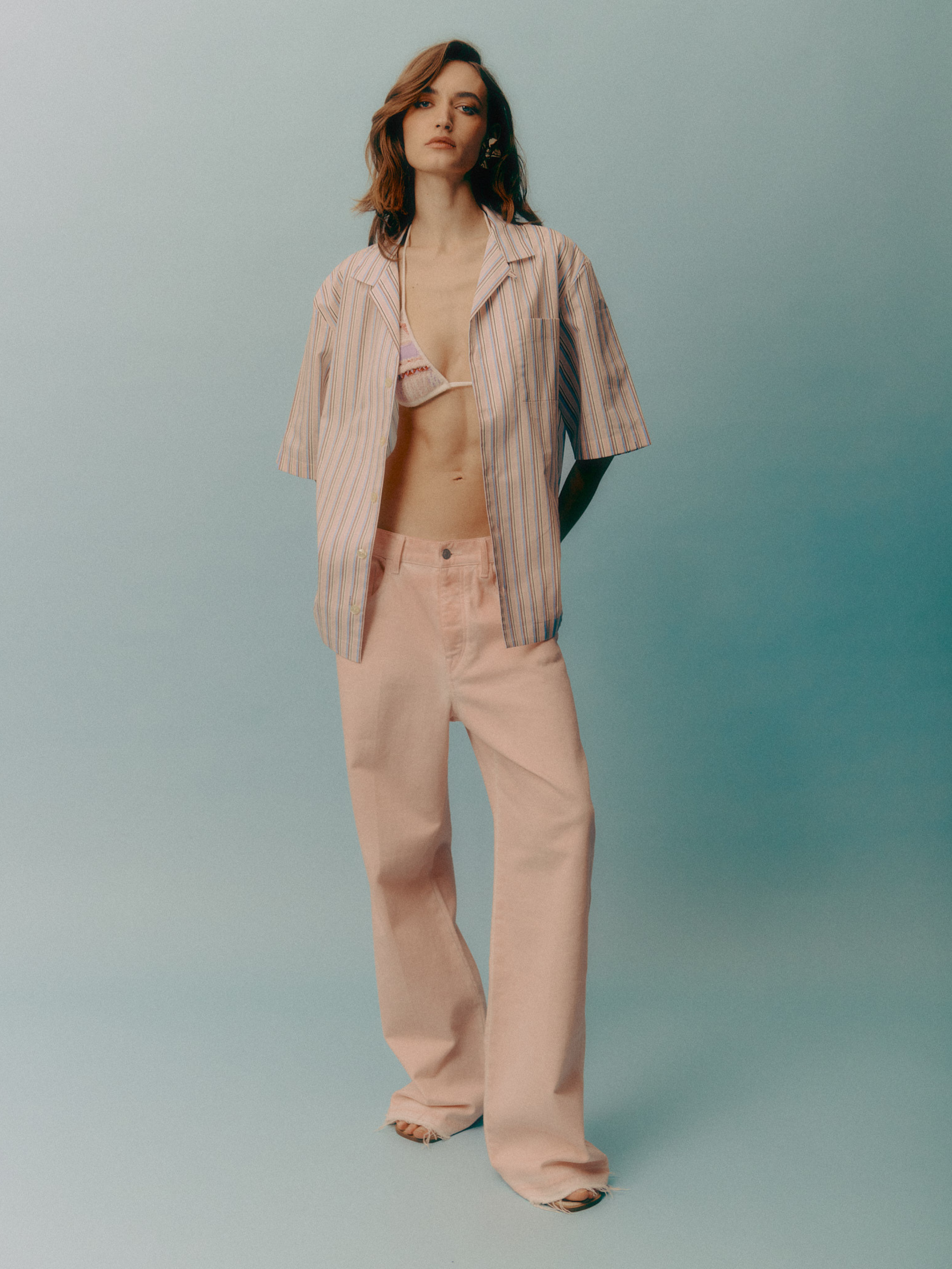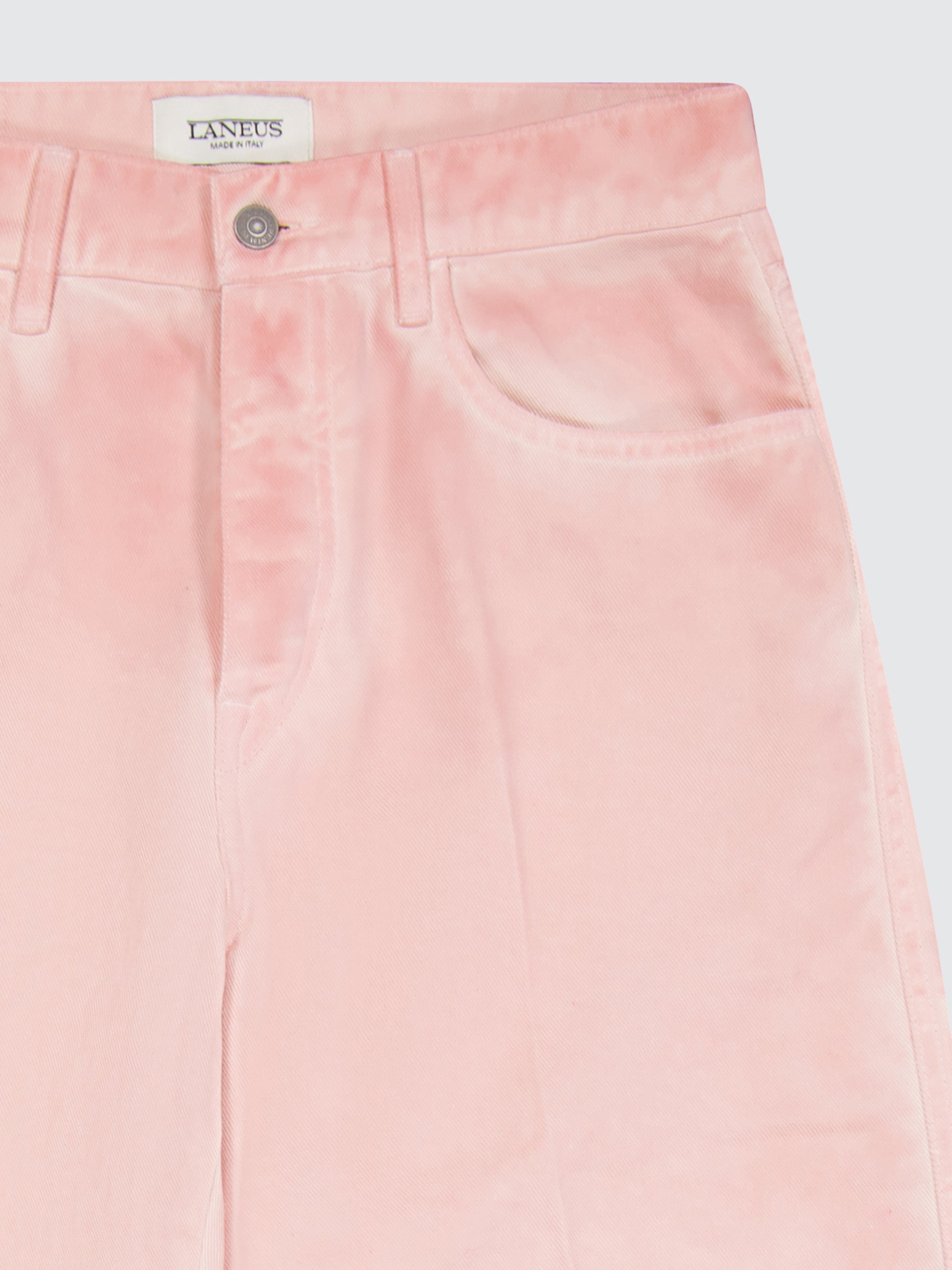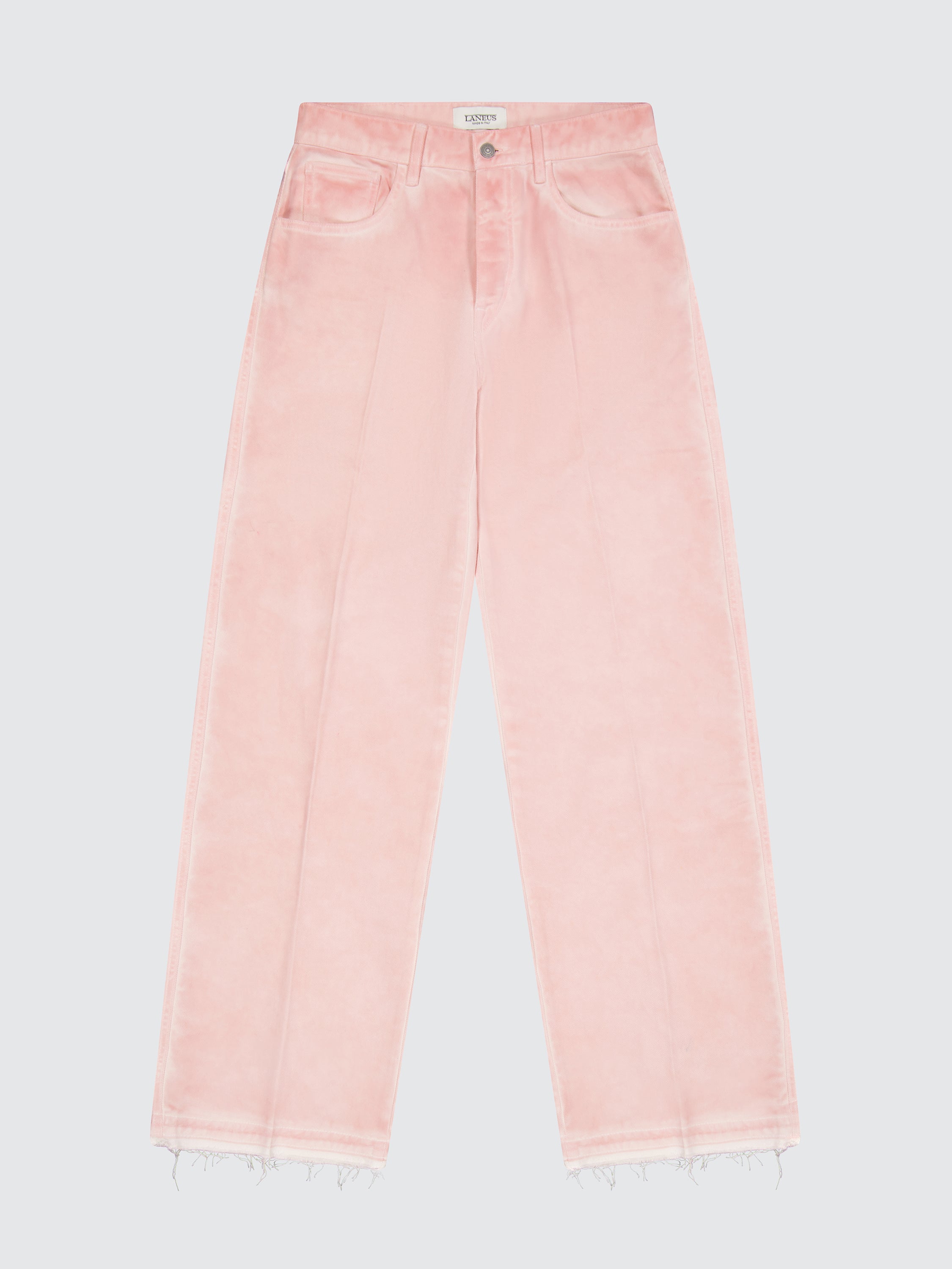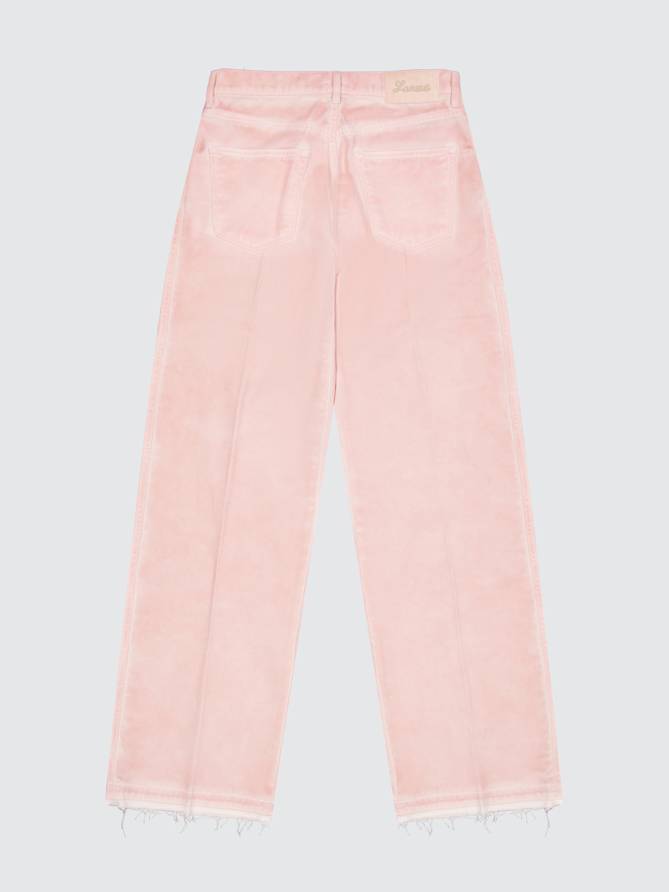 Realizzati in tela denim di puro cotone, questi jeans di Laneus presentano una silhouette baggy-fit cascante con gamba larga e una finitura rosa leggermente sbiadita. La modella è alta 180 cm ed indossa una 26.