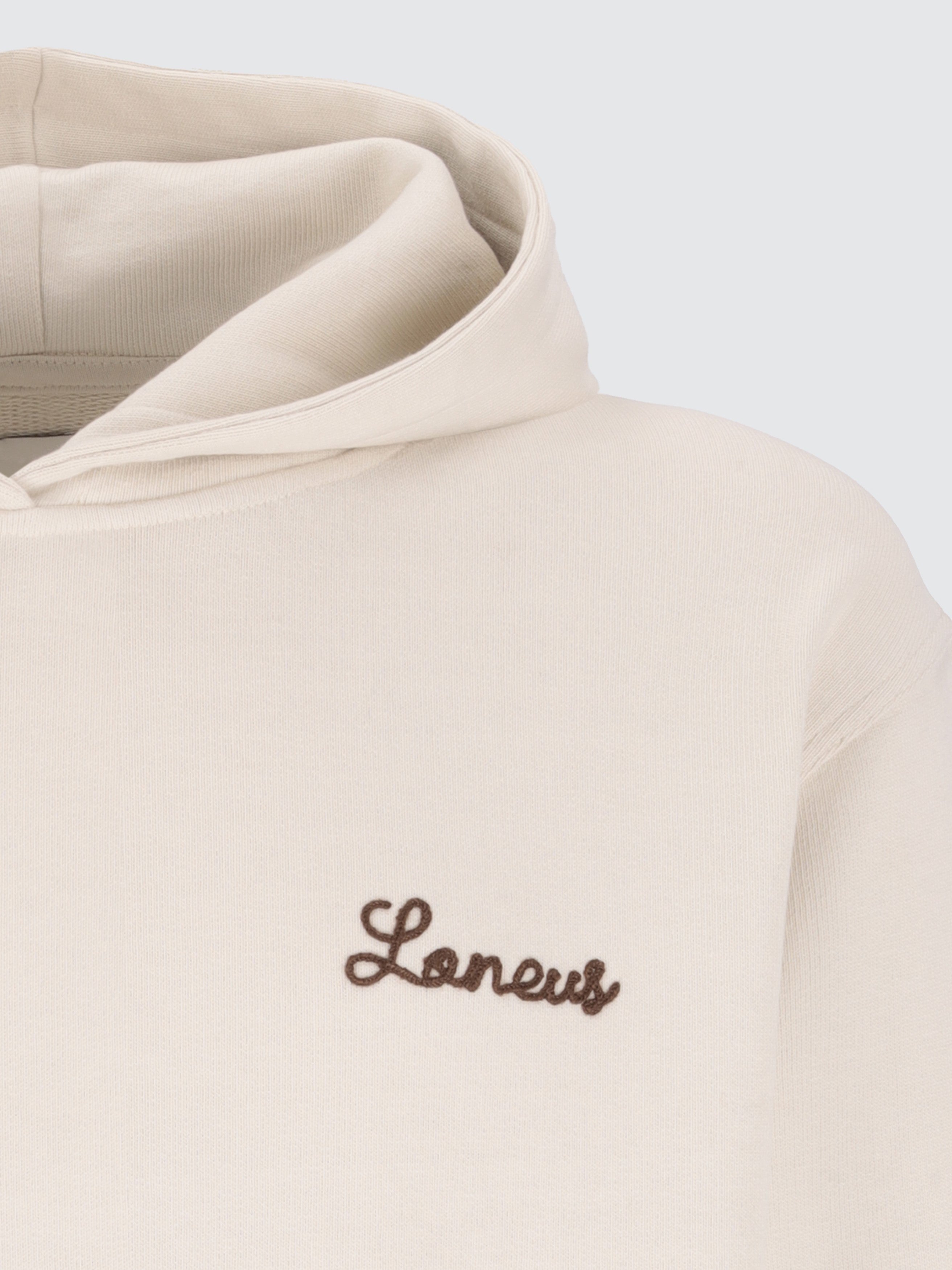 Essenziale nelle linee ma curata nei dettagli, questa hoodie firmata Laneus è realizzata in felpa di cotone e rifinita con il logo ricamato in corsivo con punto Cornely, discreto emblema dell’identità del brand. La vestibilità regular e la tasca marsupio frontale ne definiscono la funzionalità quotidiana, mantenendo un profilo pulito e sofisticato. I bordi a costine completano il design, assicurando tenuta e struttura. Made in Italy.