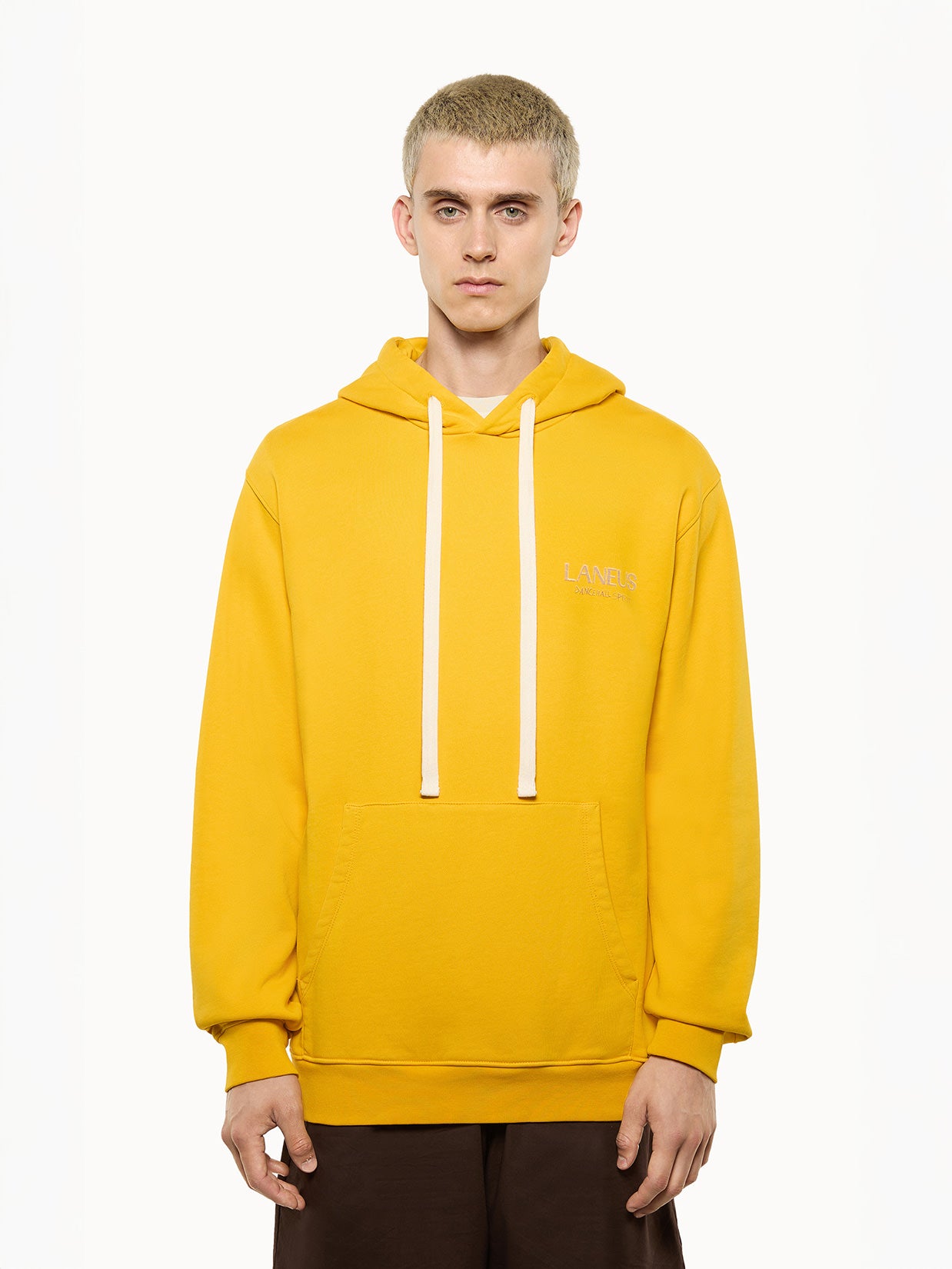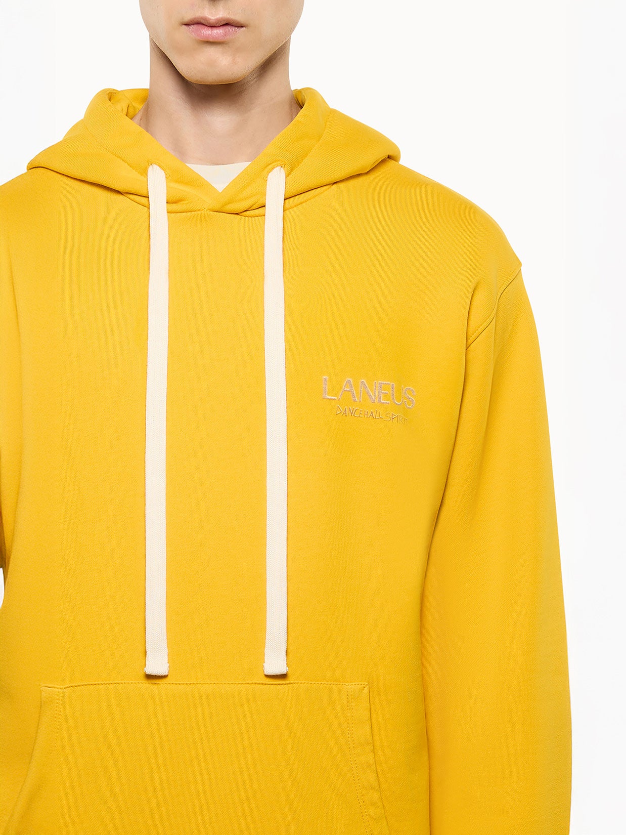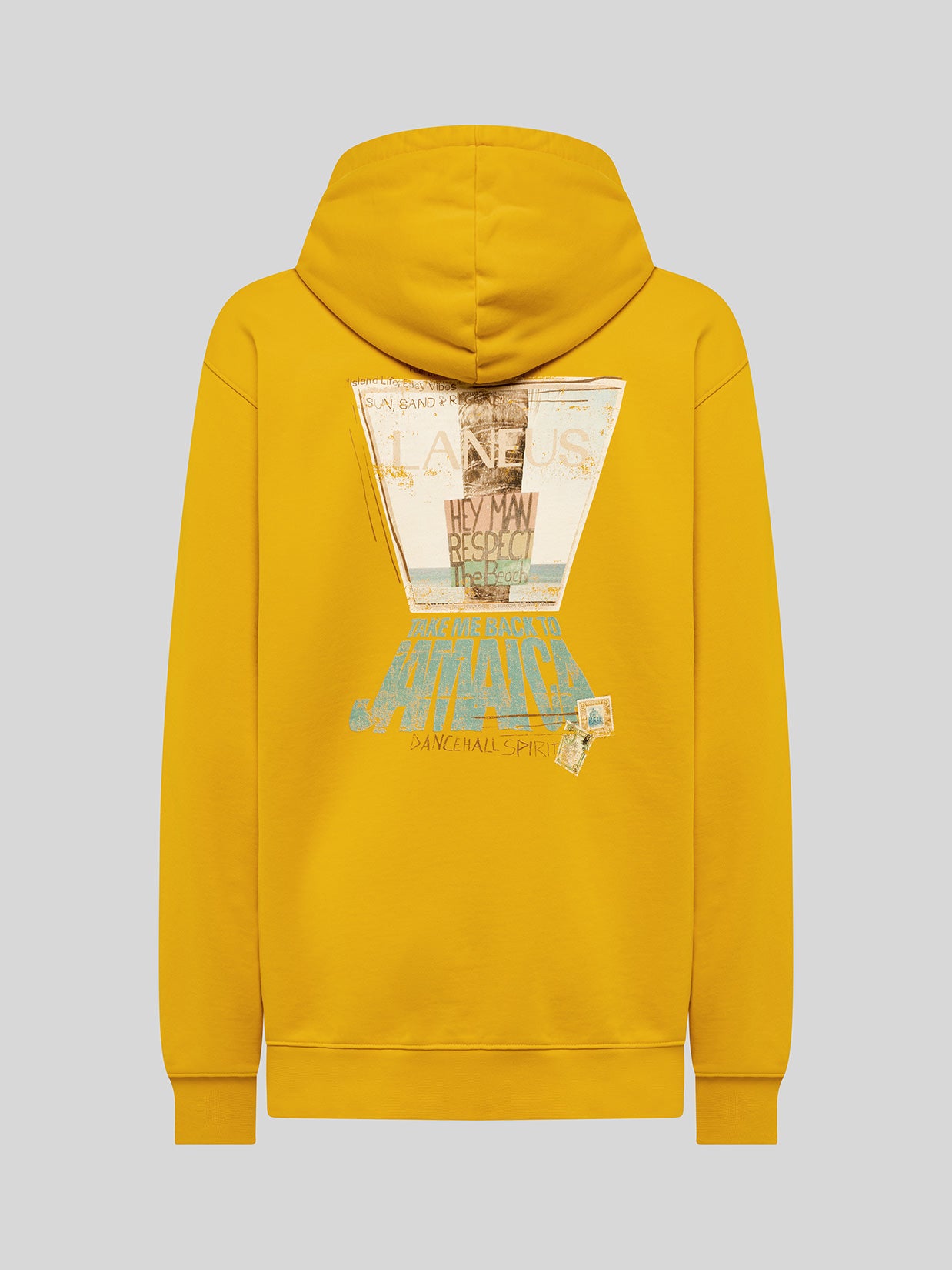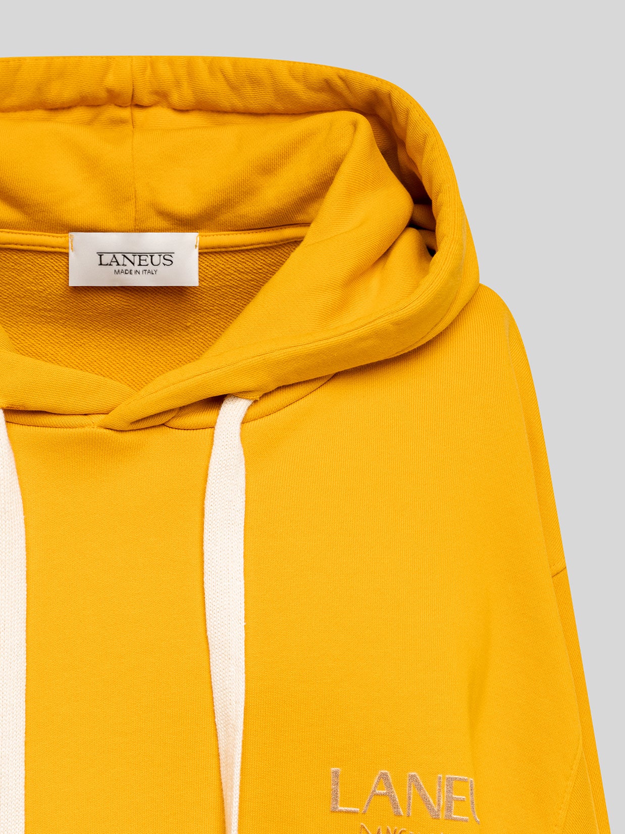La felpa di Laneus offre una vestibilità over con manica scesa. Il modello è realizzato in puro cotone ed è dotato di cappuccio con coulisse regolabili. Arricchita da una maxi stampa sul retro. Made in Italy.