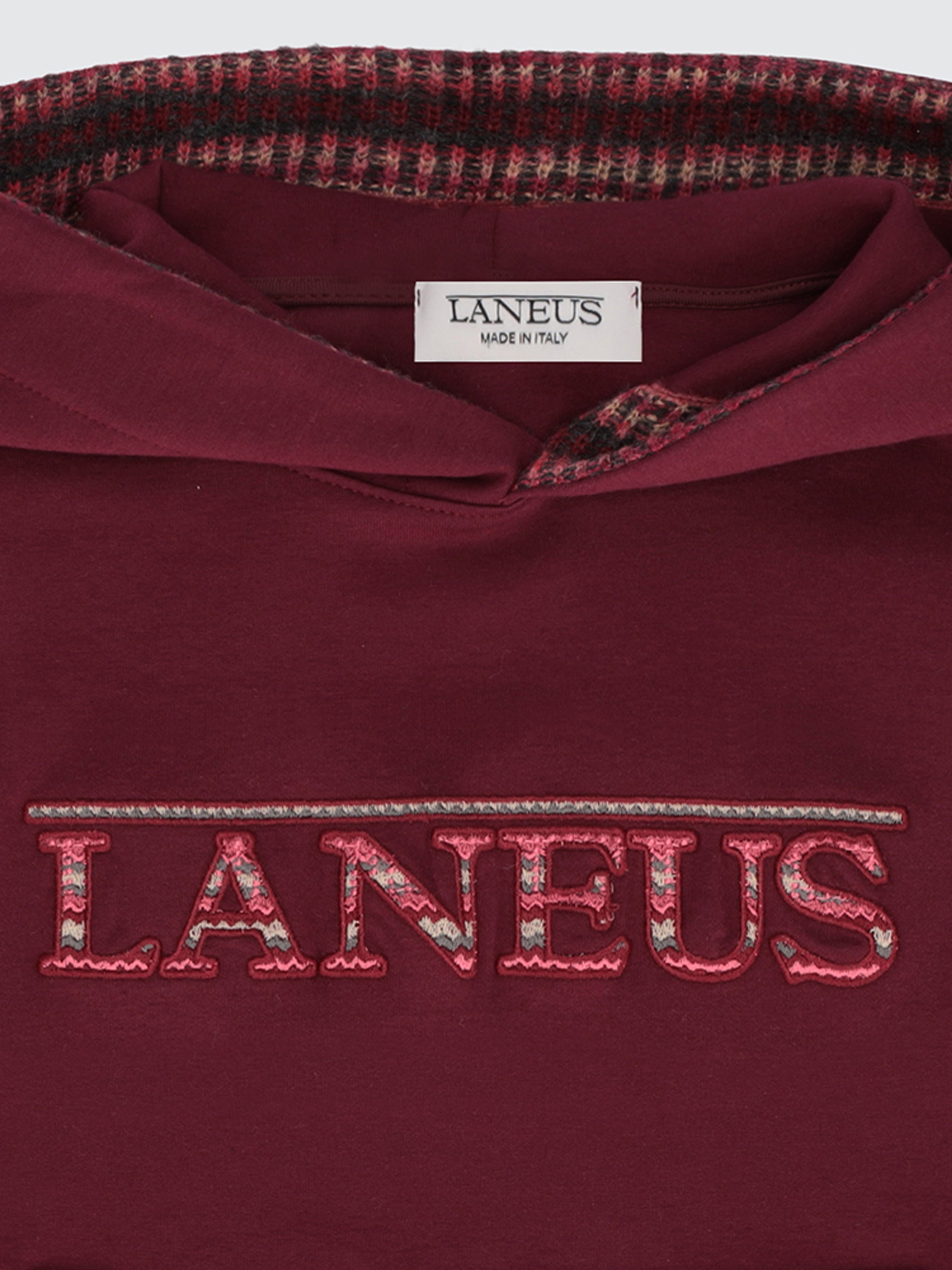 Comfort e identità grafica si uniscono in questa felpa con cappuccio firmata Laneus Kids. Realizzata in tessuto interlock con una composizione mista di cotone, presenta una mano compatta e morbida al tempo stesso. Il logo Laneus in rilievo decora il petto, mentre cappuccio foderato e tasca a marsupio completano il design dal sapore urbano. Perfetta per l’uso quotidiano, con un tocco distintivo.