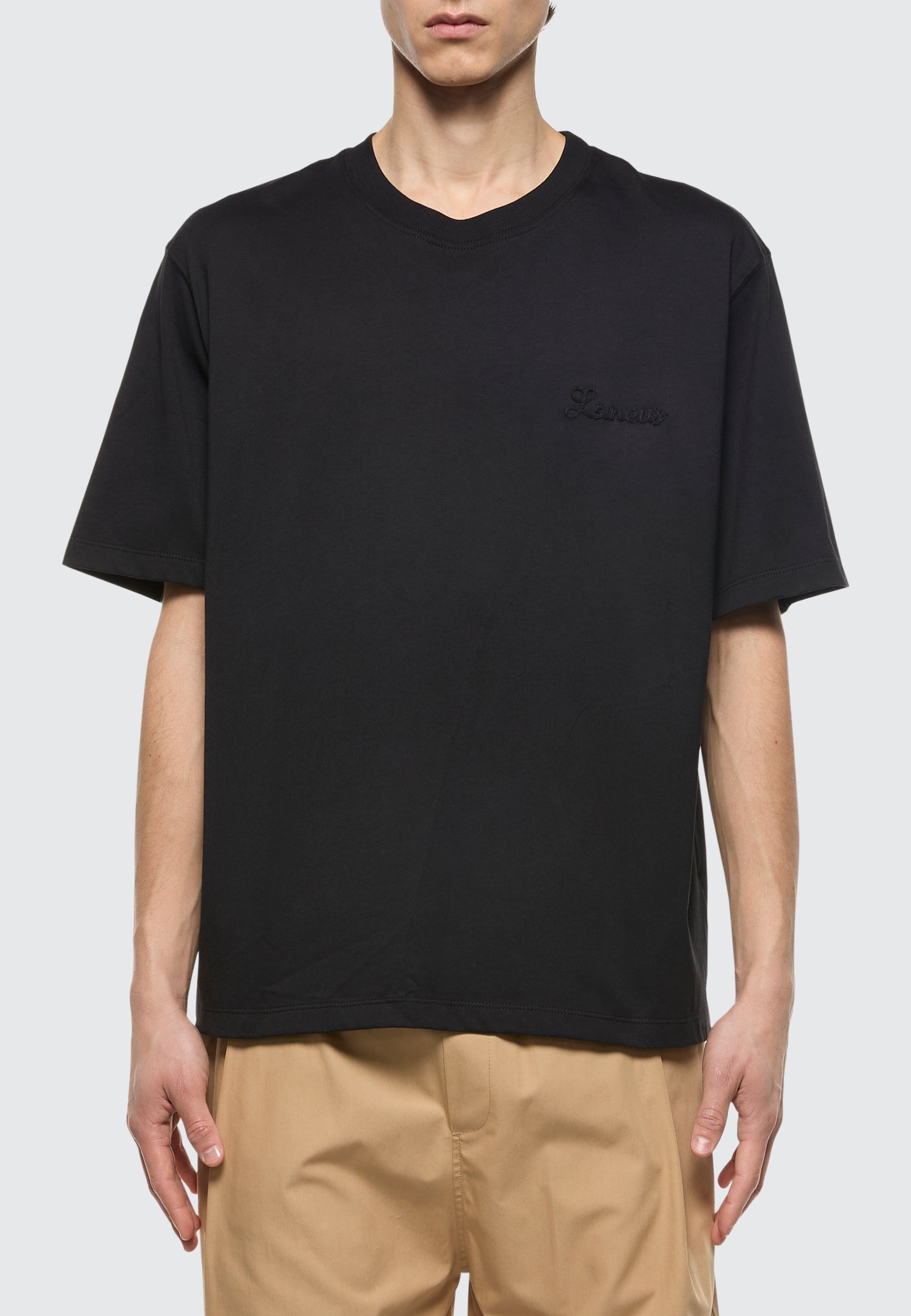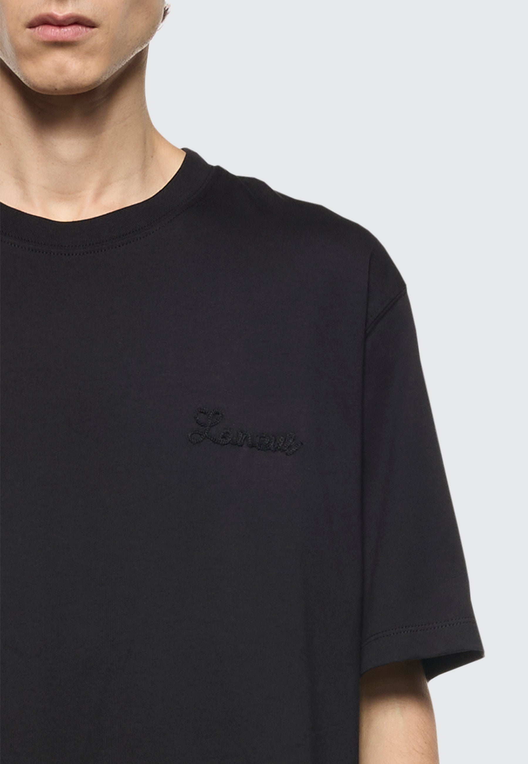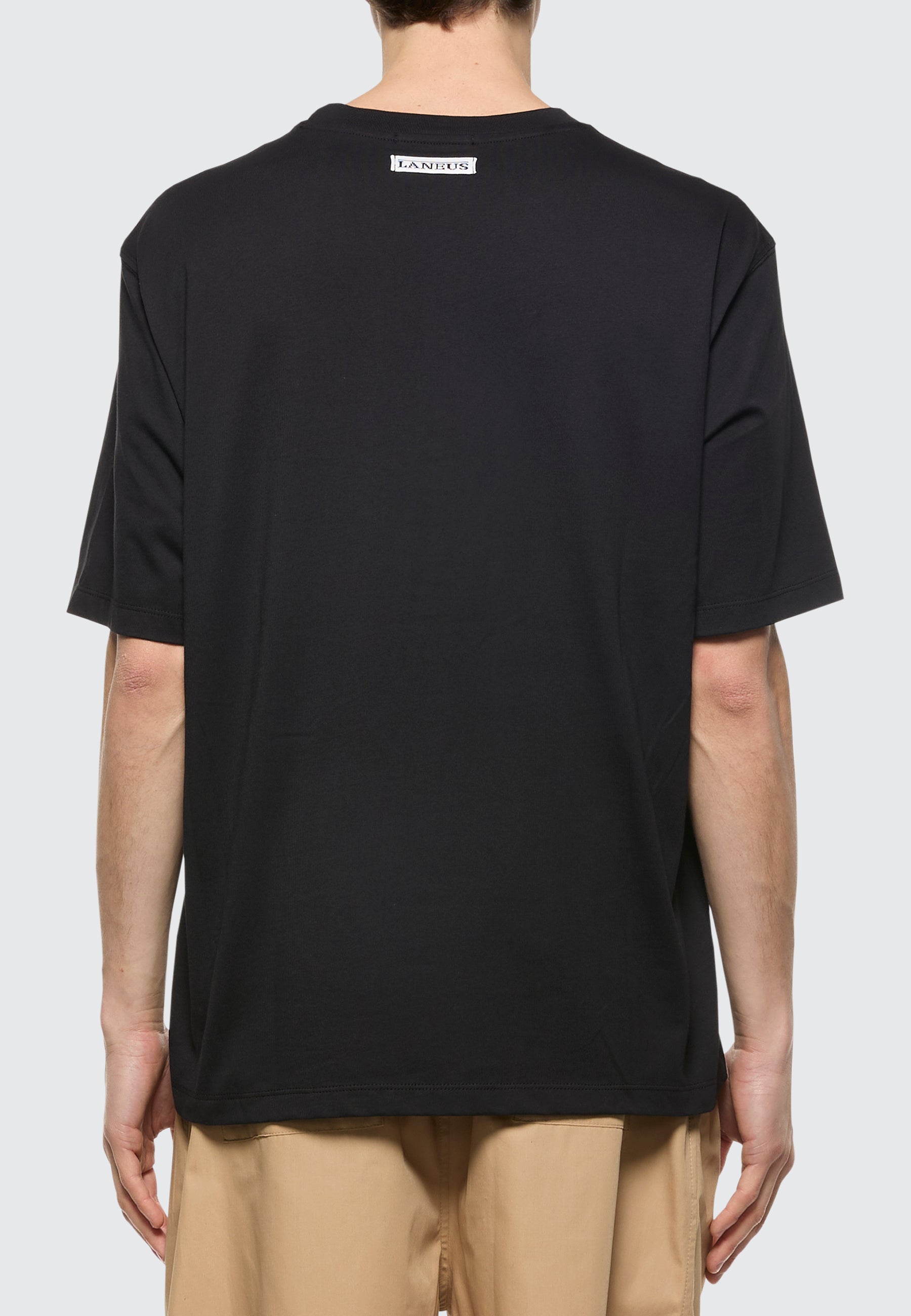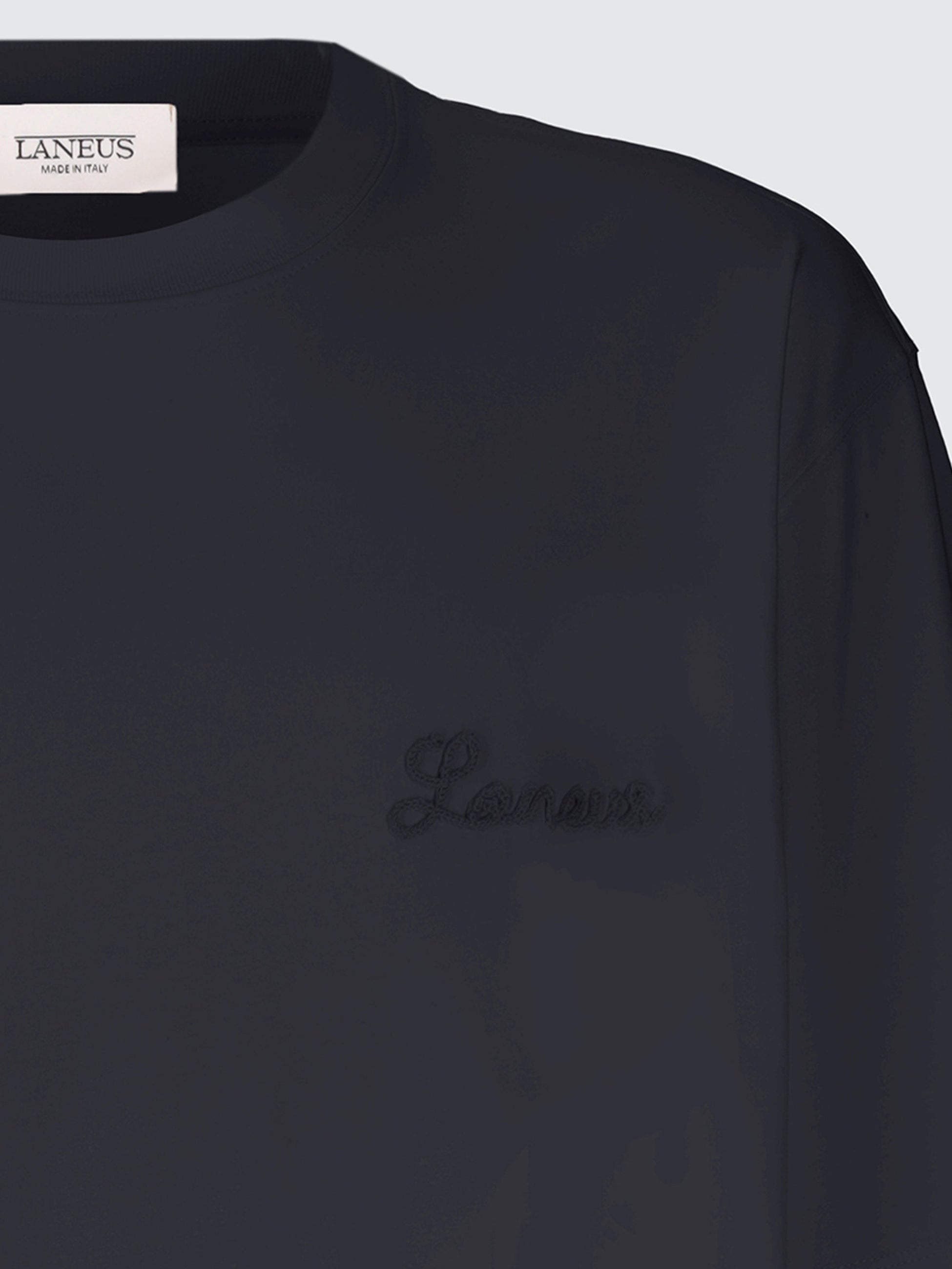Questa T-shirt a maniche corte di Laneus è realizzata in Italia in puro jersey di cotone. Il modello girocollo dal fit comodo presenta il logo del brand a contrasto. Made in Italy. Il modello è alto 190 cm ed indossa una 48/M