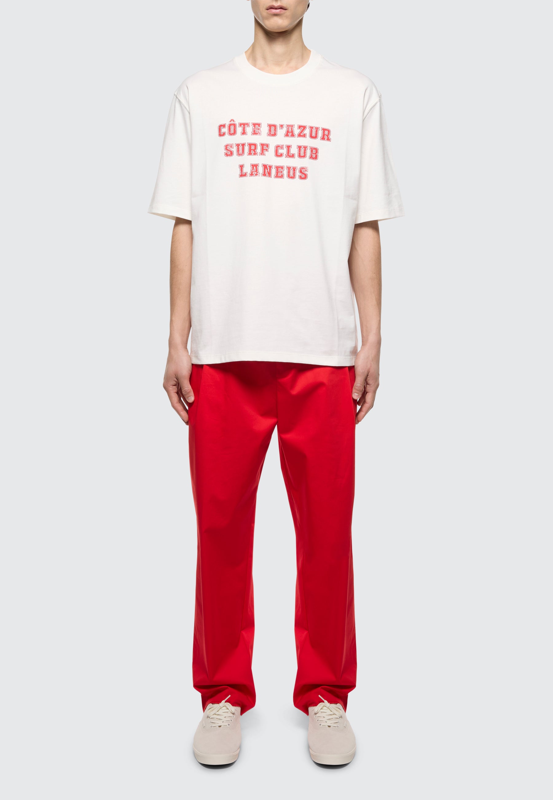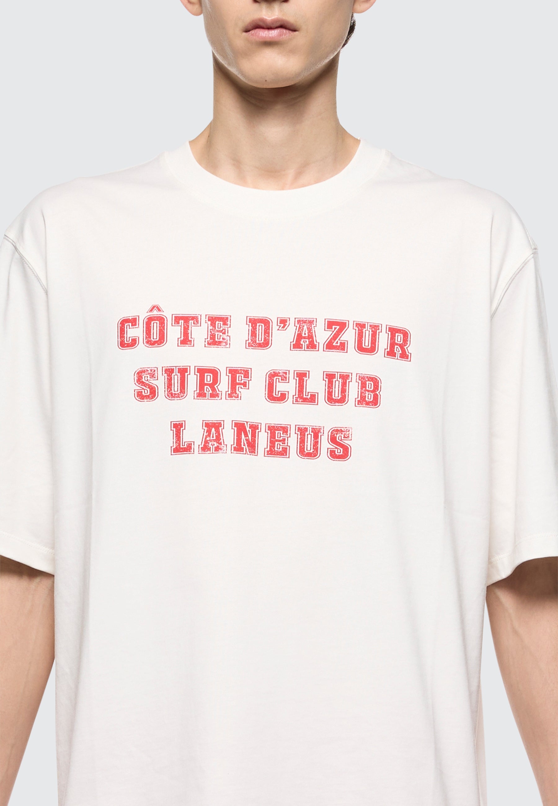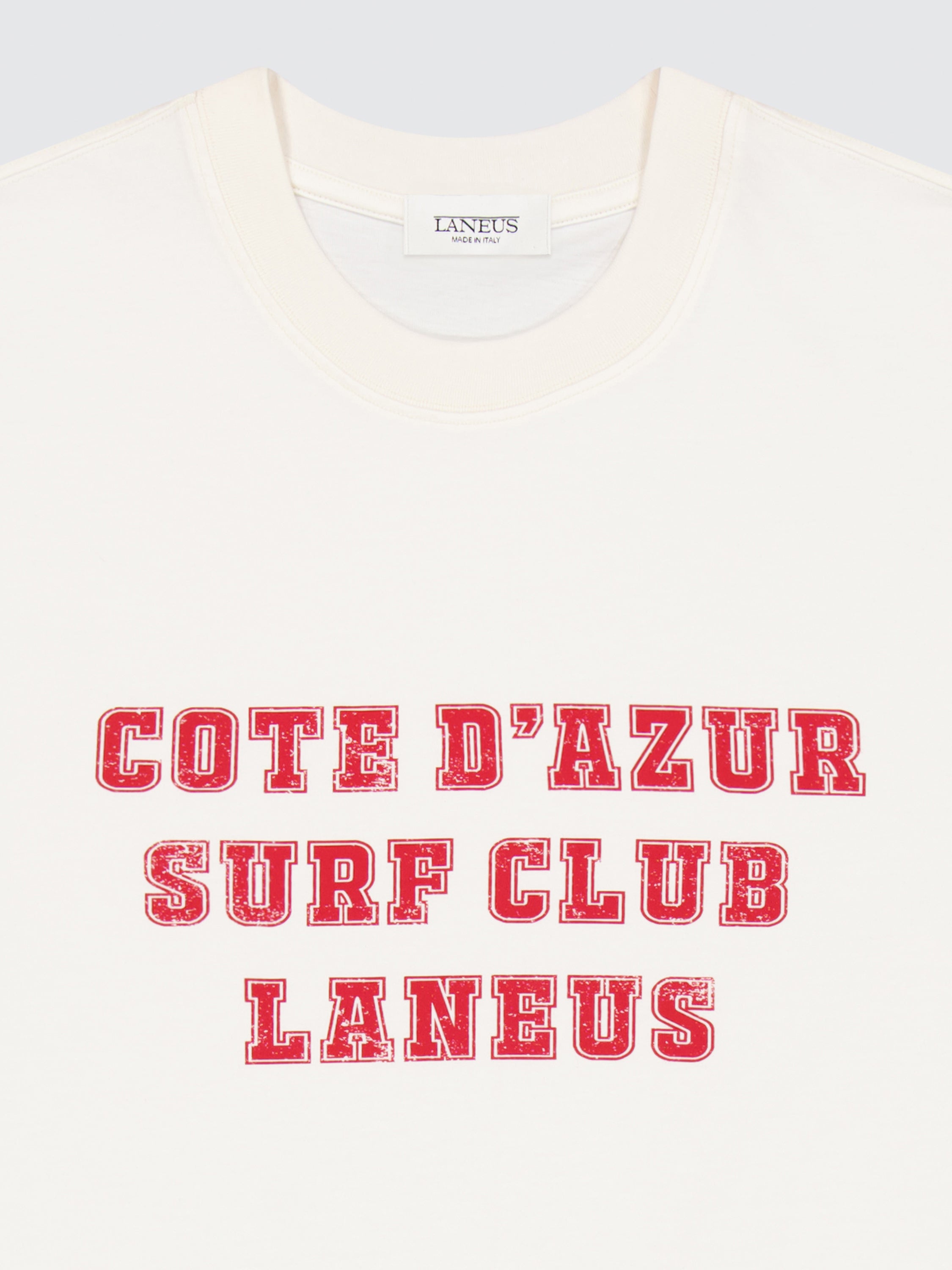 Questa T-shirt a maniche corte di Laneus è realizzata in Italia in puro cotone. Il modello girocollo dal fit comodo presenta la scritta logo lettering a contrasto sul davanti. Il modello è alto 190 cm ed indossa una 48/M