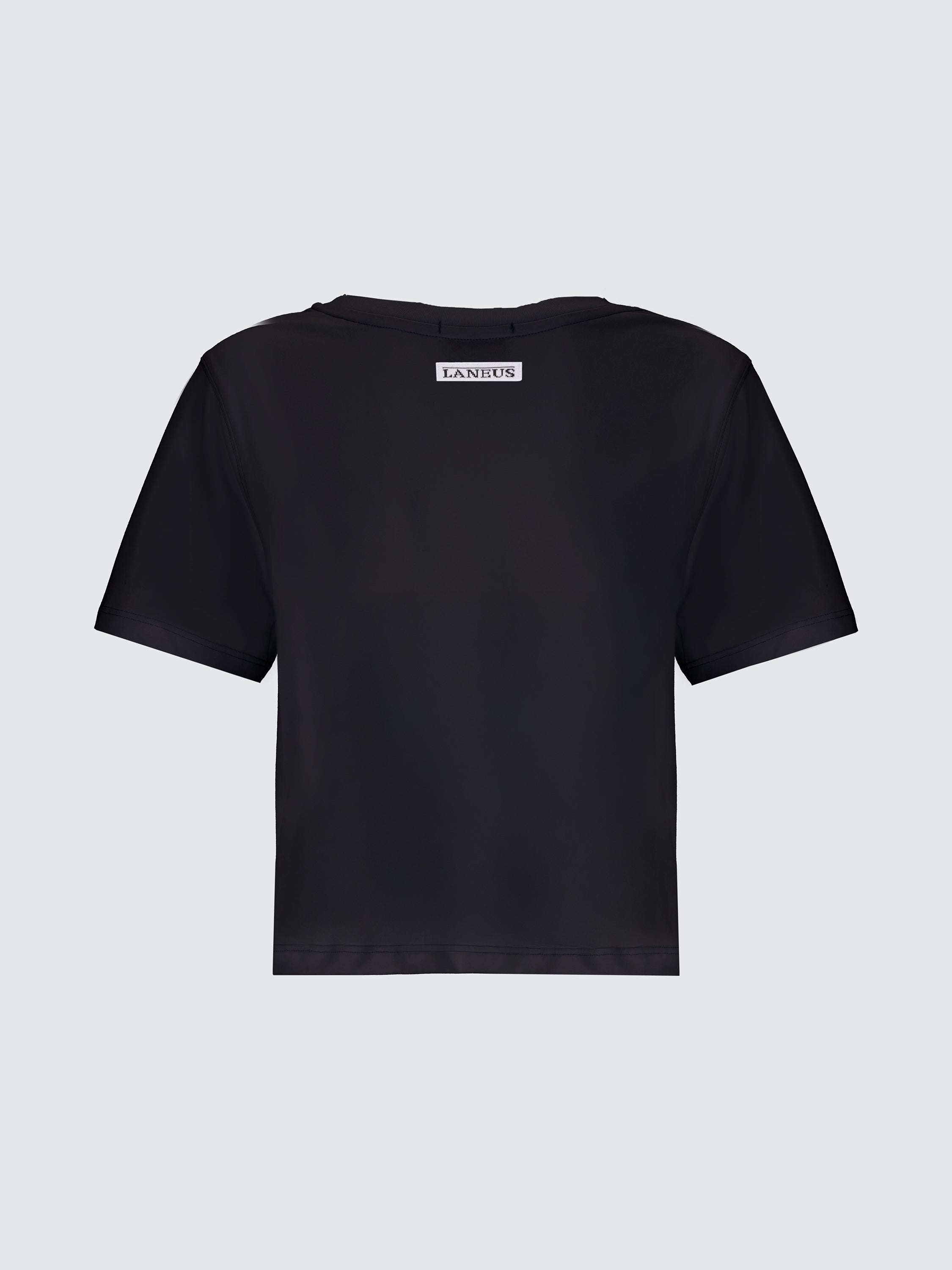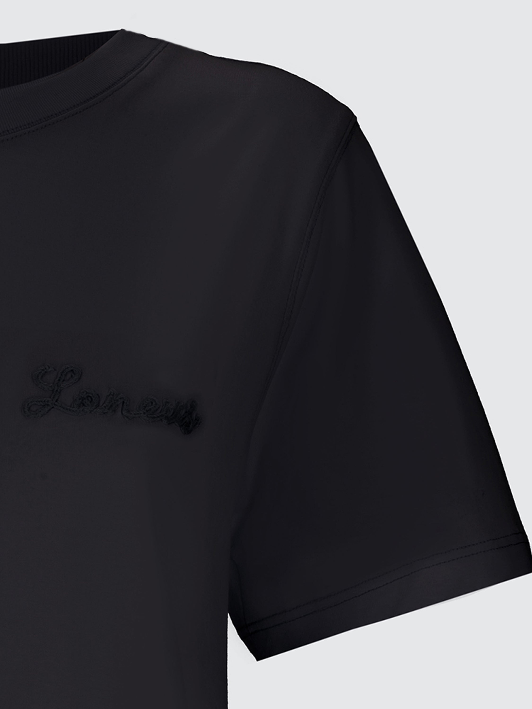 Questa T-shirt a maniche corte di Laneus è realizzata in Italia in puro jersey di cotone. Il modello boxy con girocollo ampio è caratterizzato da una manica corta larga ed è impreziosito dal logo del brand ricamato sul lato.