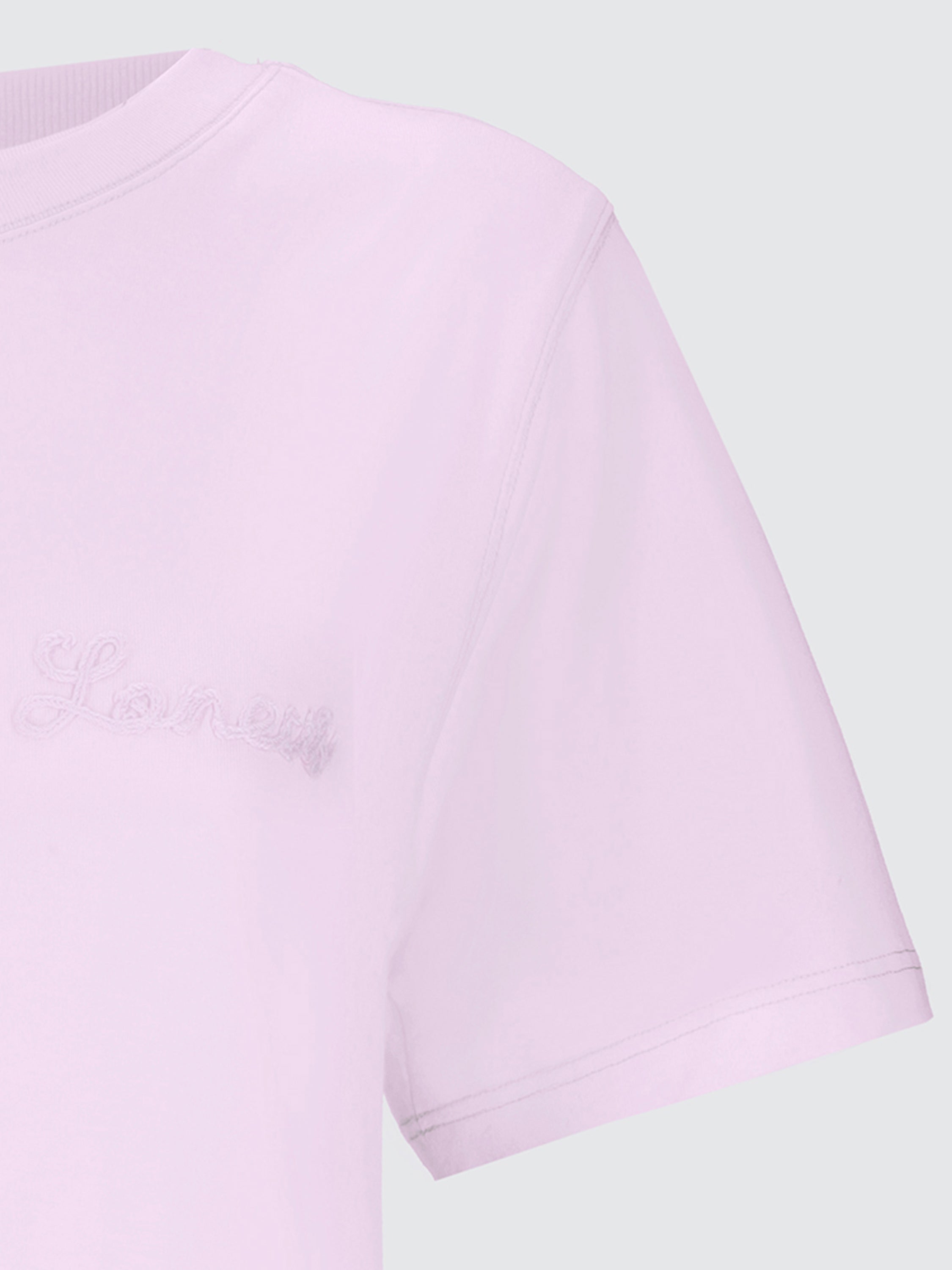 Questa T-shirt a maniche corte di Laneus è realizzata in Italia in puro jersey di cotone. Il modello boxy con girocollo ampio è caratterizzato da una manica corta larga ed è impreziosito dal logo del brand ricamato sul lato.