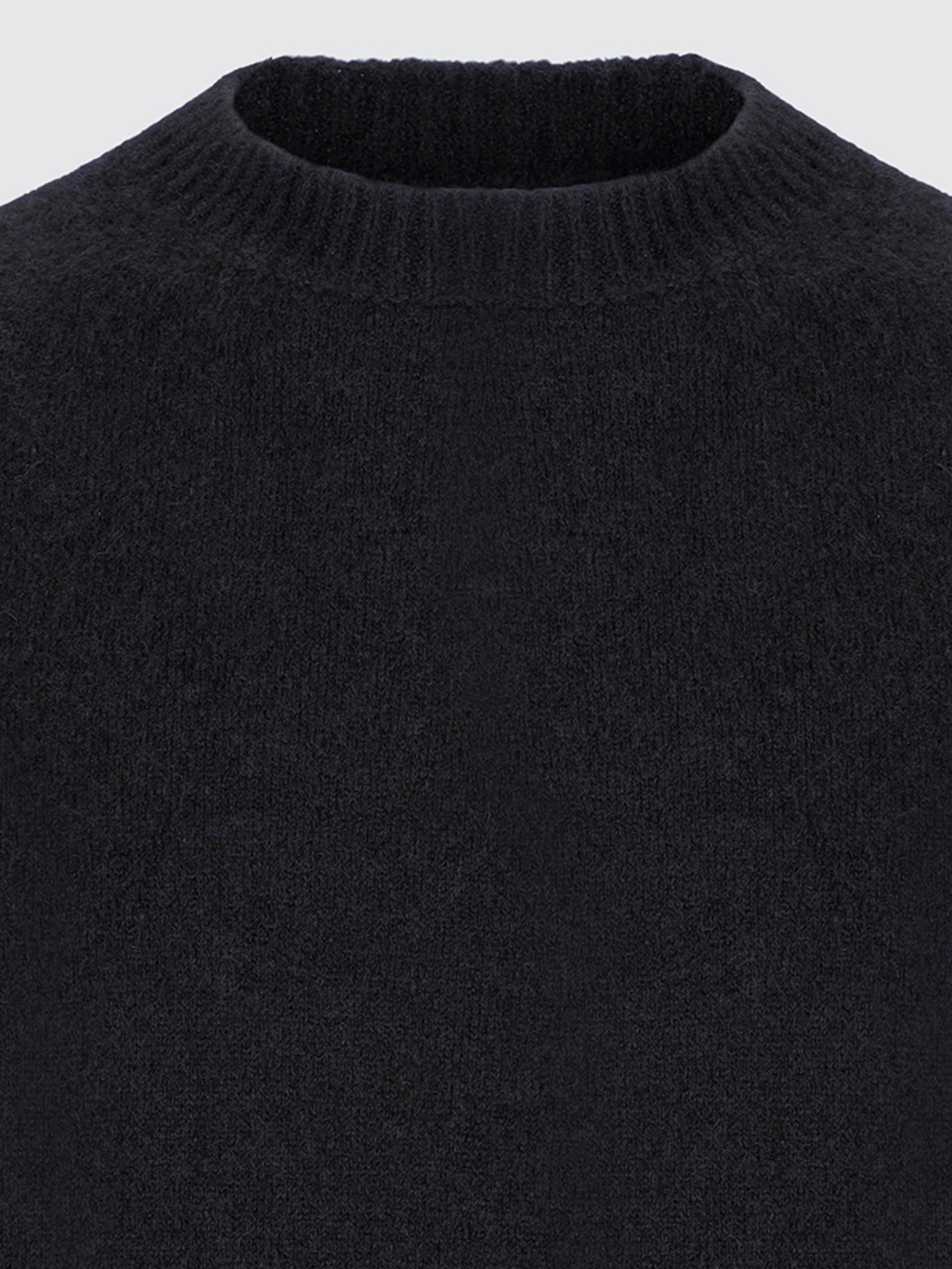 Maglia girocollo firmata Laneus, realizzata in pregiato filato composto da cashmere e seta, con lavorazione a punto rasato. Caratterizzata da una vestibilità regular e spalle leggermente scese, presenta finiture a costine su collo, fondo e polsi. Made in Italy.