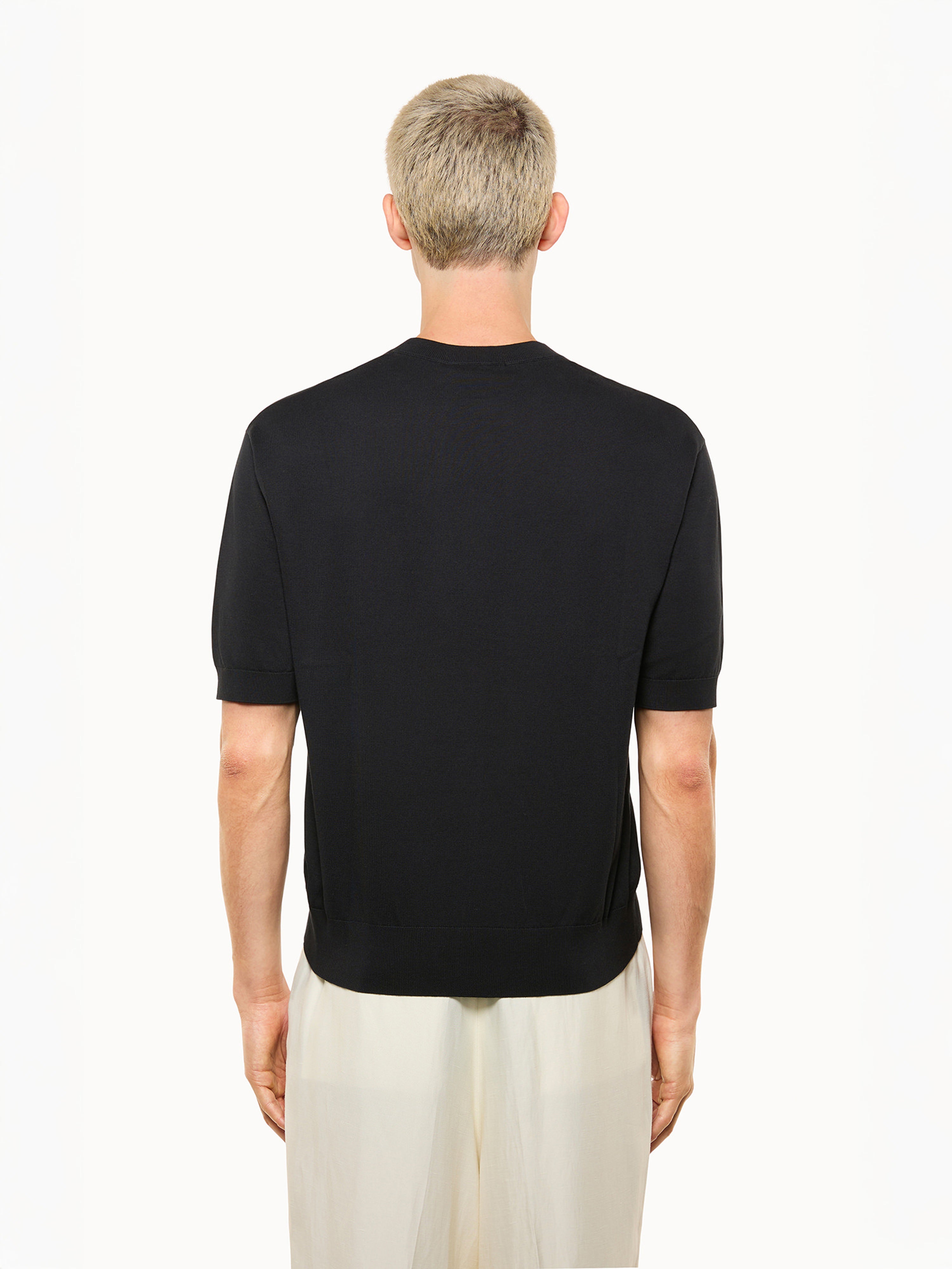 T-shirt girocollo in cotone a maniche corte con polsini e finiture a costine. Dettaglio con ricamo logato sul fondo. Regular fit.