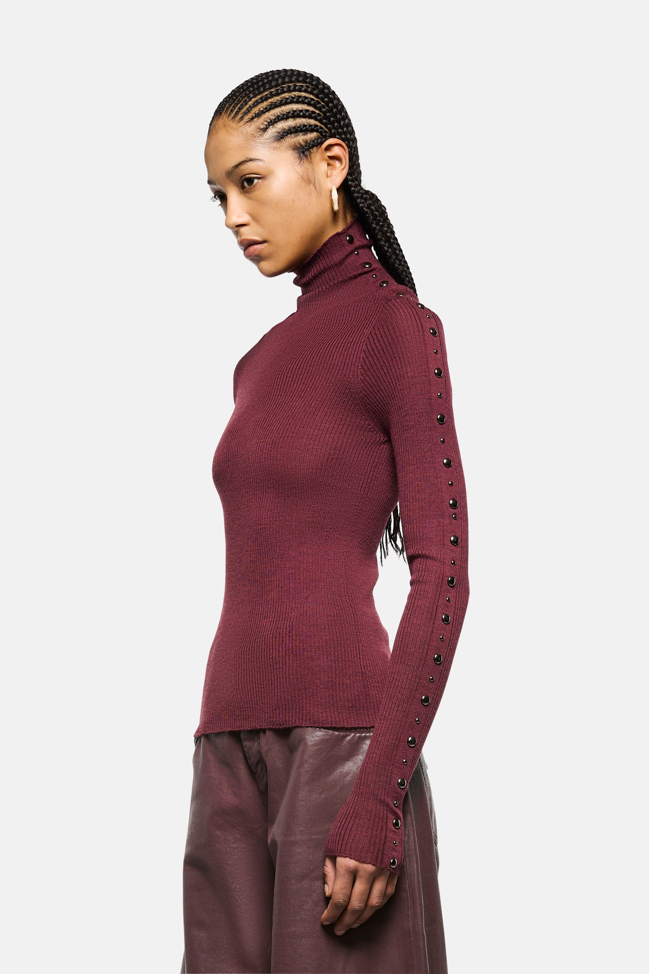 Una seconda pelle dall’anima grintosa. Questo dolcevita firmato Laneus è realizzato in costina extra sottile di pura lana merinos extrafine e presenta una vestibilità attillata. Le leggere rotture lungo i bordi aggiungono un twist vissuto a un capo essenziale e femminile, perfetto sia come base layering che da solo. Made in Italy.