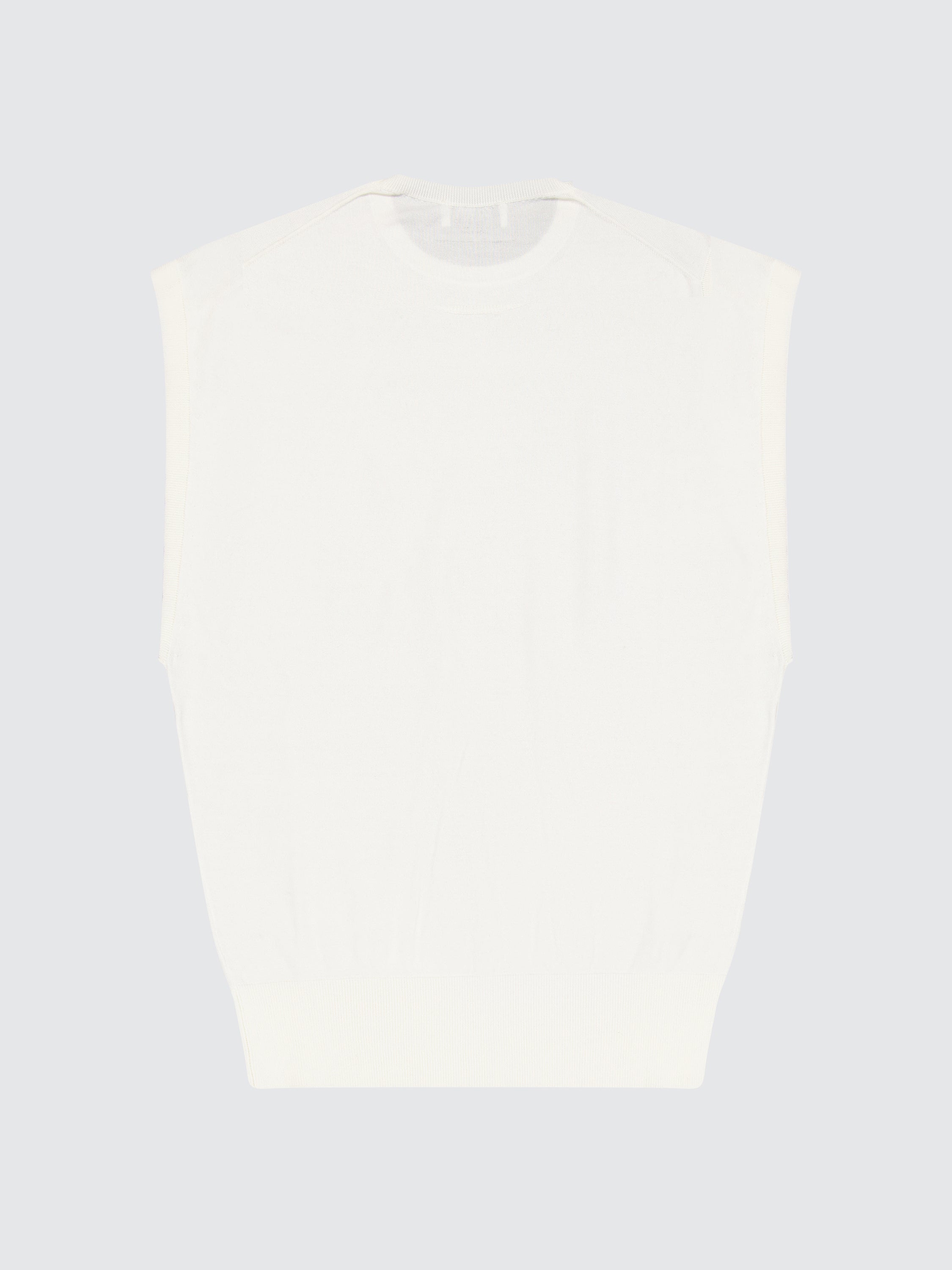 Realizzata in un filato di cotone leggero, questa maglia girocollo smanicata dalla vestibilità rilassata e spalla scesa è rifinita con dei bordi a coste.