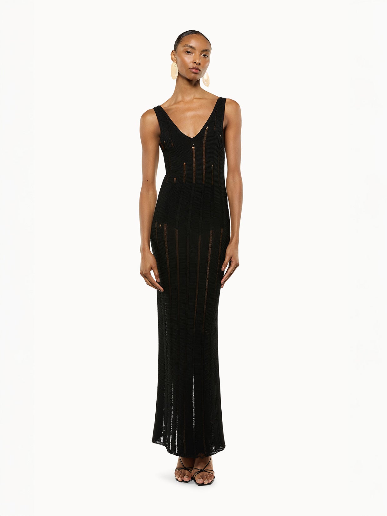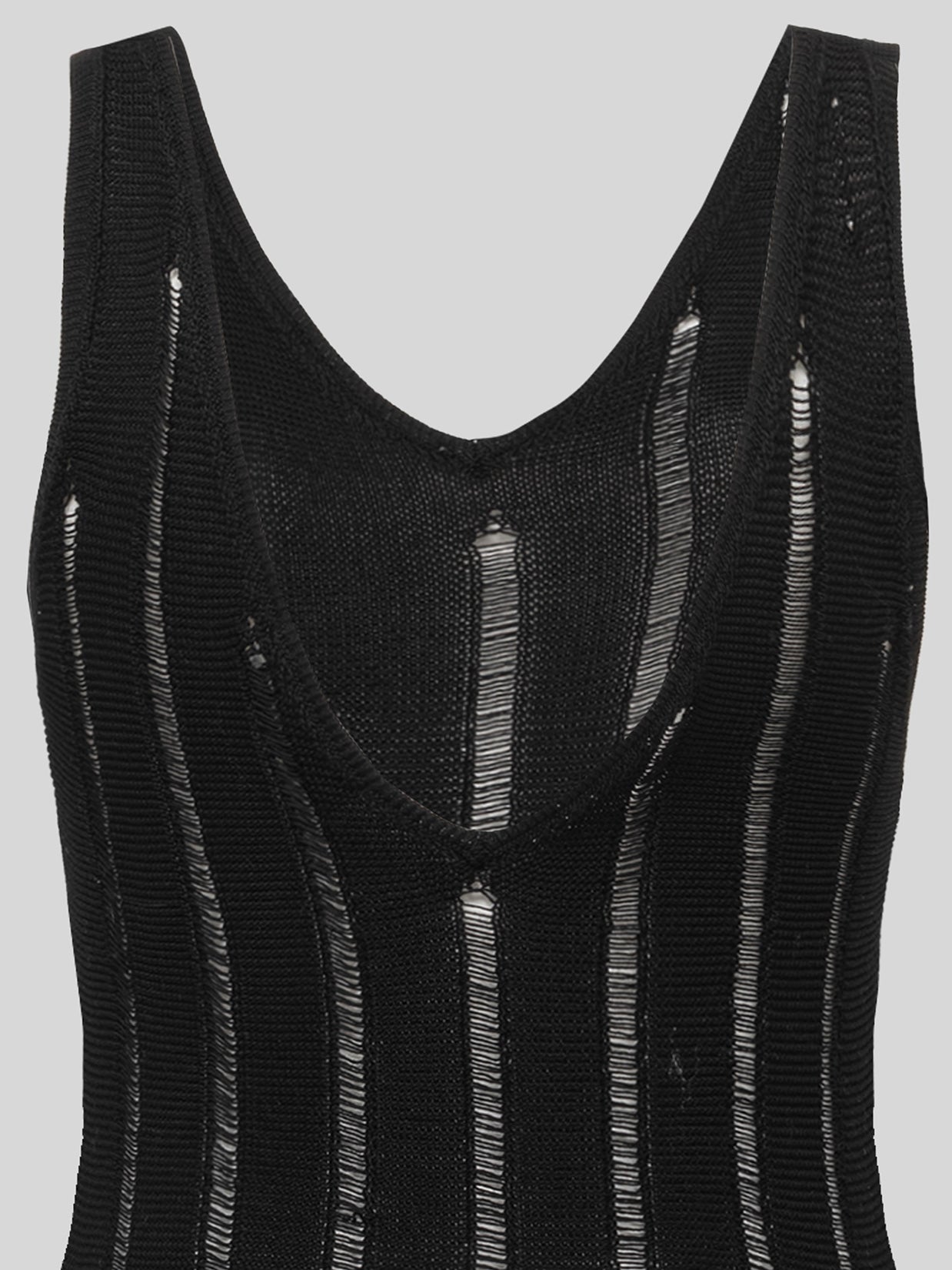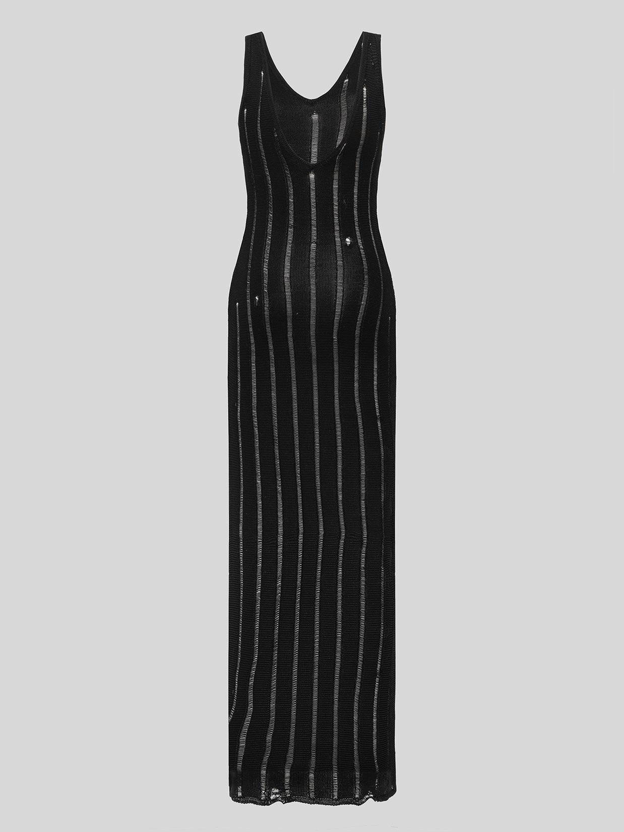 Questo abito smanicato, presenta una vestibilità regular e una maxi lunghezza, per un perfetto equilibrio tra tradizione e proporzioni contemporanee. Realizzato in un morbido filato di cotone, fonde comfort visivo, morbidezza e leggerezza. Made in Italy.